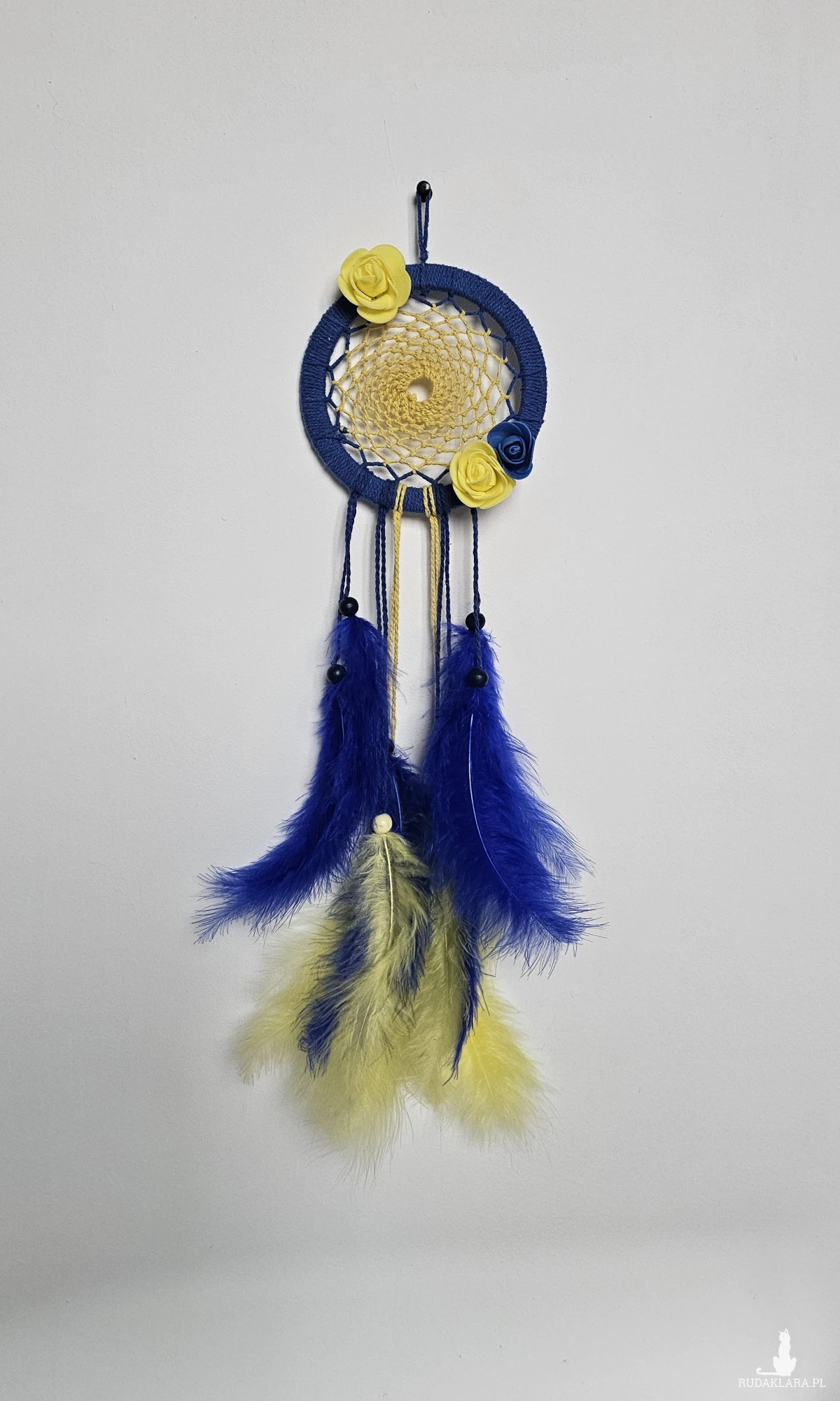 Granatowo-żółty łapacz snów o średnicy 12 cm