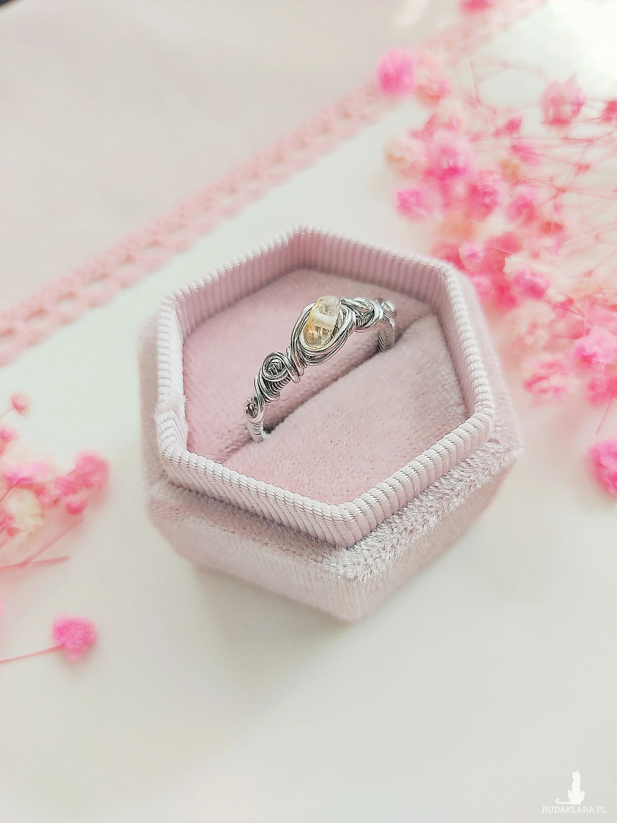 Pierścionek z cytrynem wykonany ze stali chirurgicznej metodą wire wrapping to wyjątkowa biżuteria handmade, która łączy elegancję z naturalnym pięknem kamieni szlachetnych. Kamień cytryn, od wieków kojarzony z energią słońca, obfitością i pozytywną energią. Jego złocisto-żółta barwa sprawia, że biżuteria z cytrynem przyciąga spojrzenia i dodaje blasku każdej stylizacji.