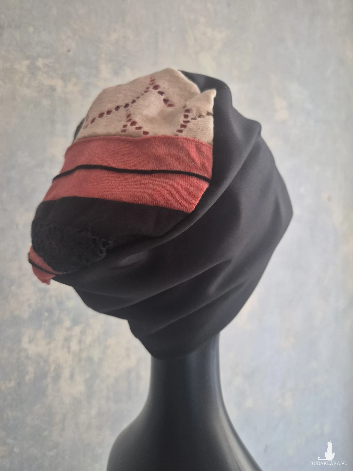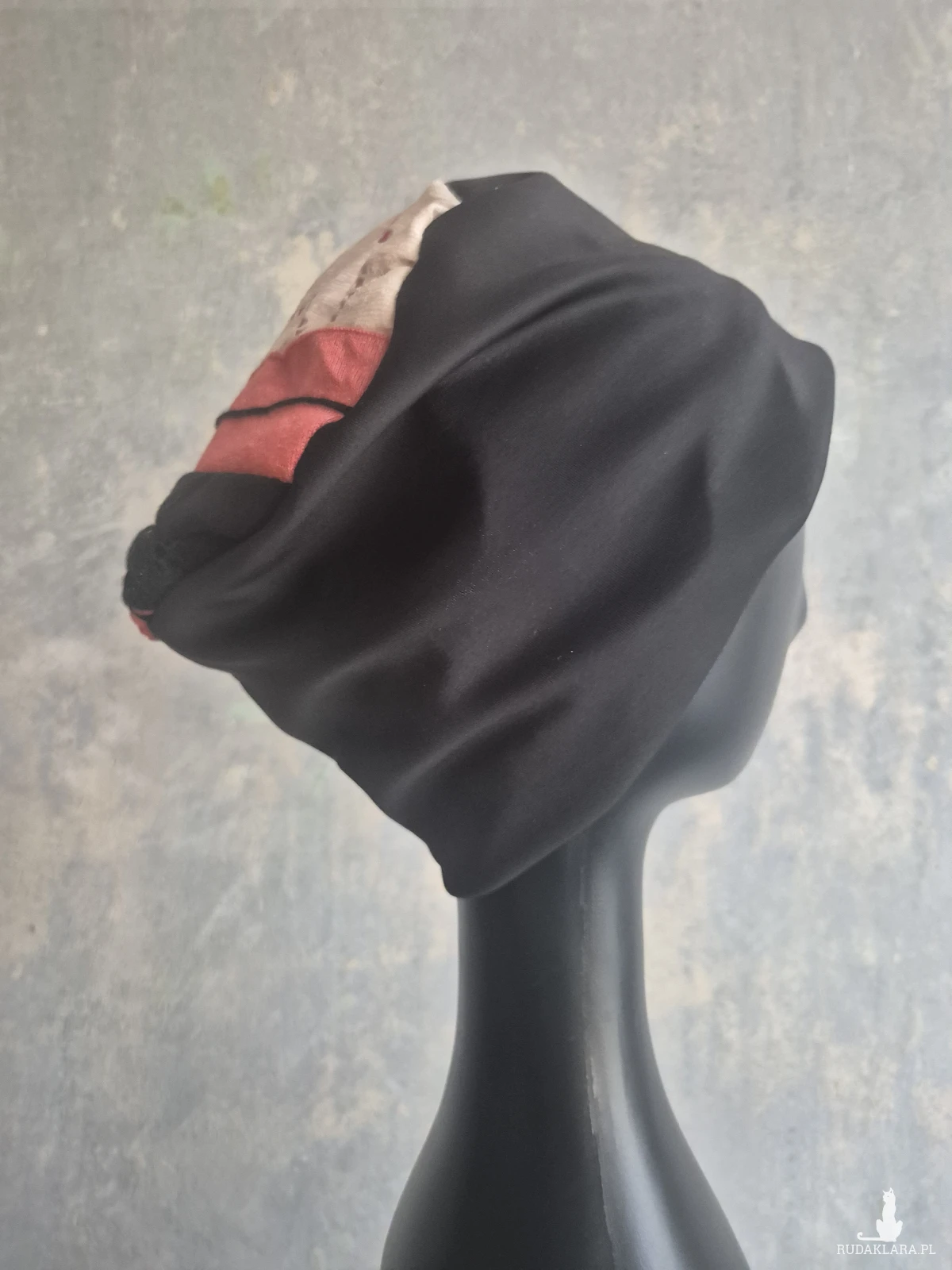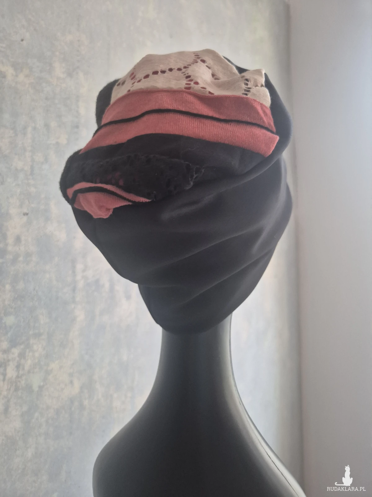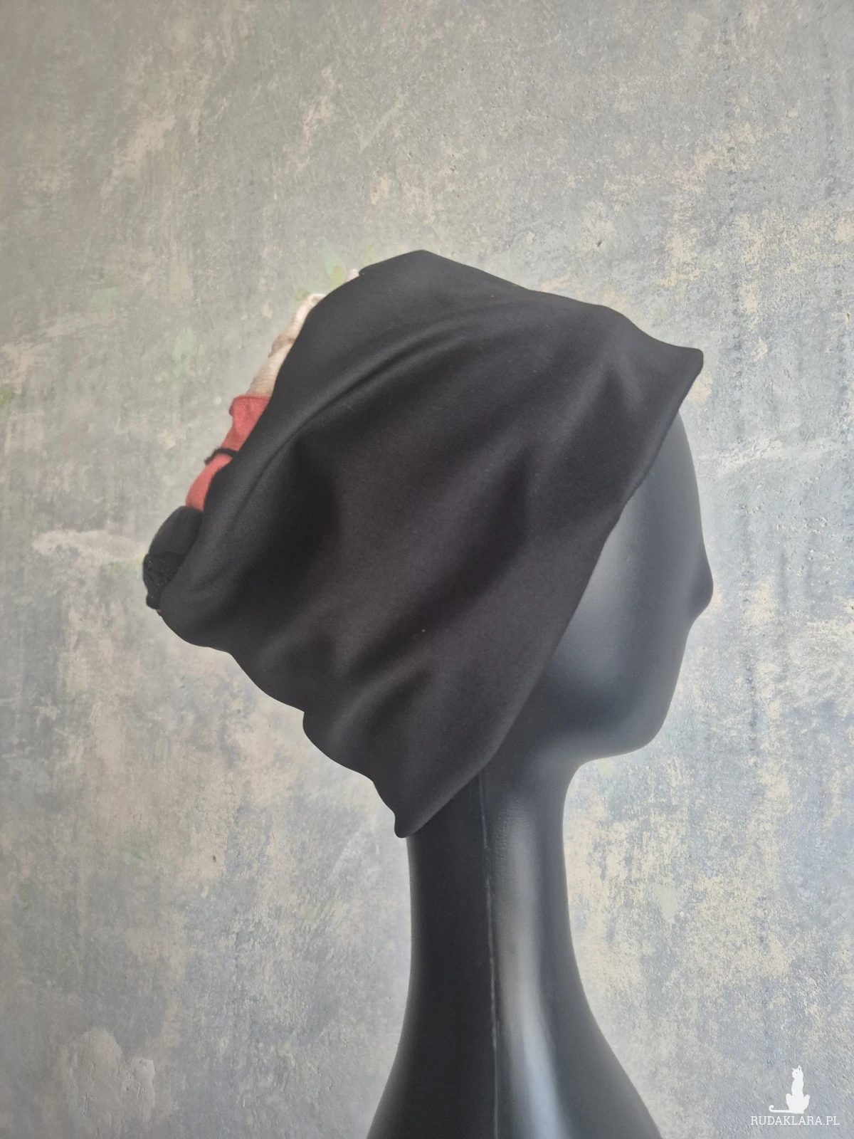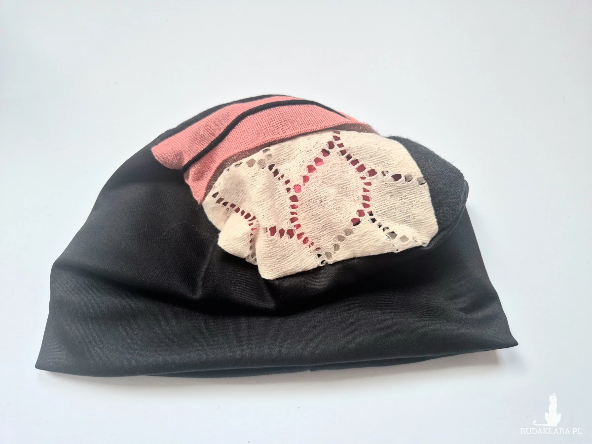 czapka czarna codzienna na podszewce rozmiar uniwersalny na niepogodę na złą fryzurę na poprawę energii góra patchworkowa box a1