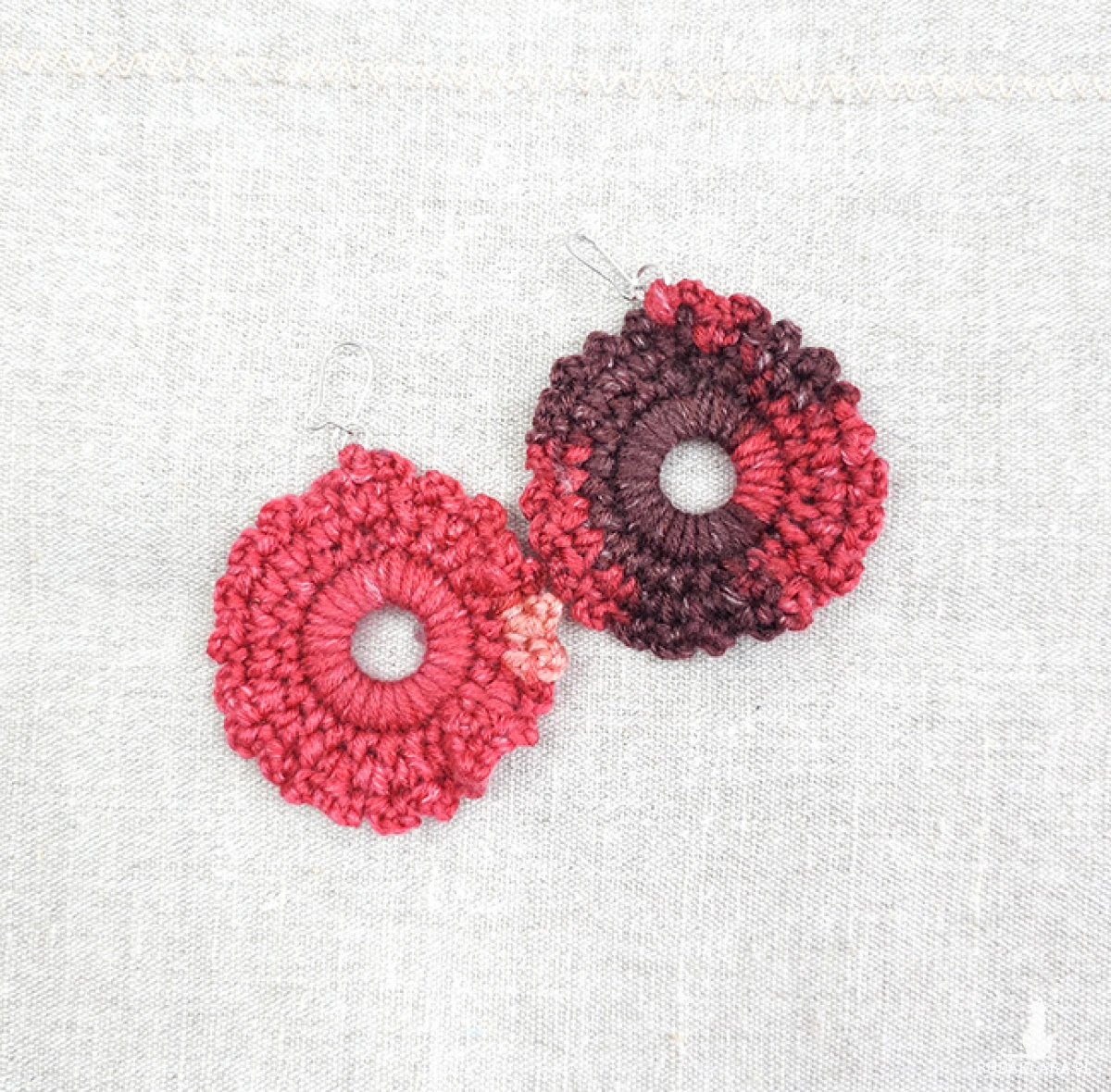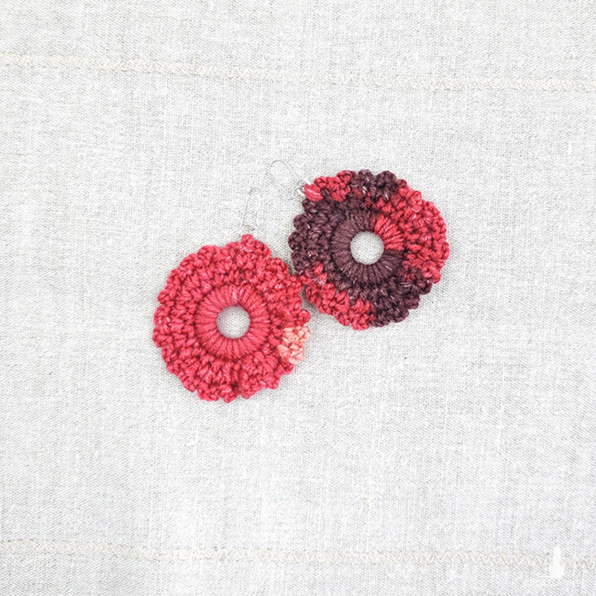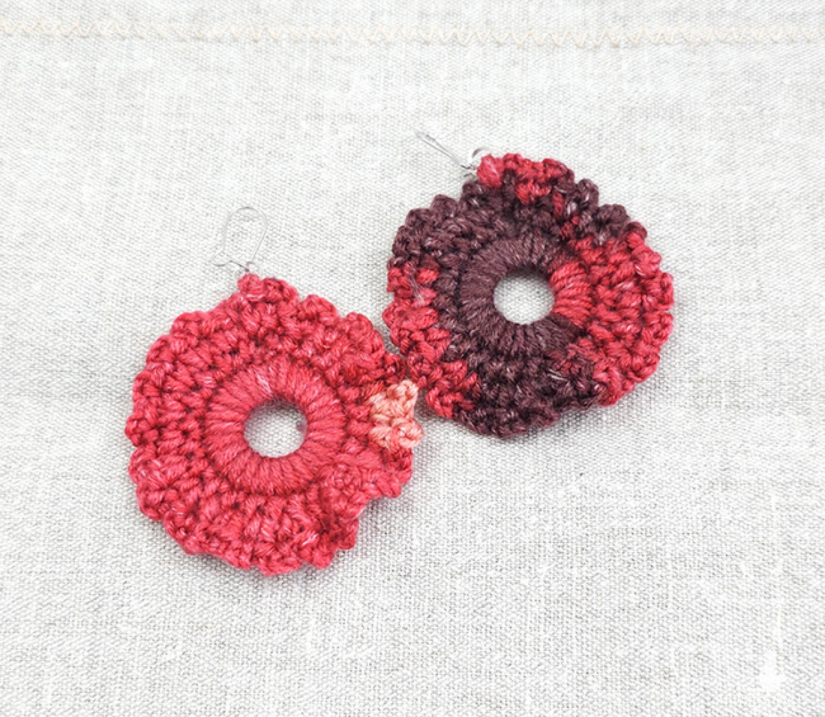 Kolczyki wykonane z włóczki akrylowej.