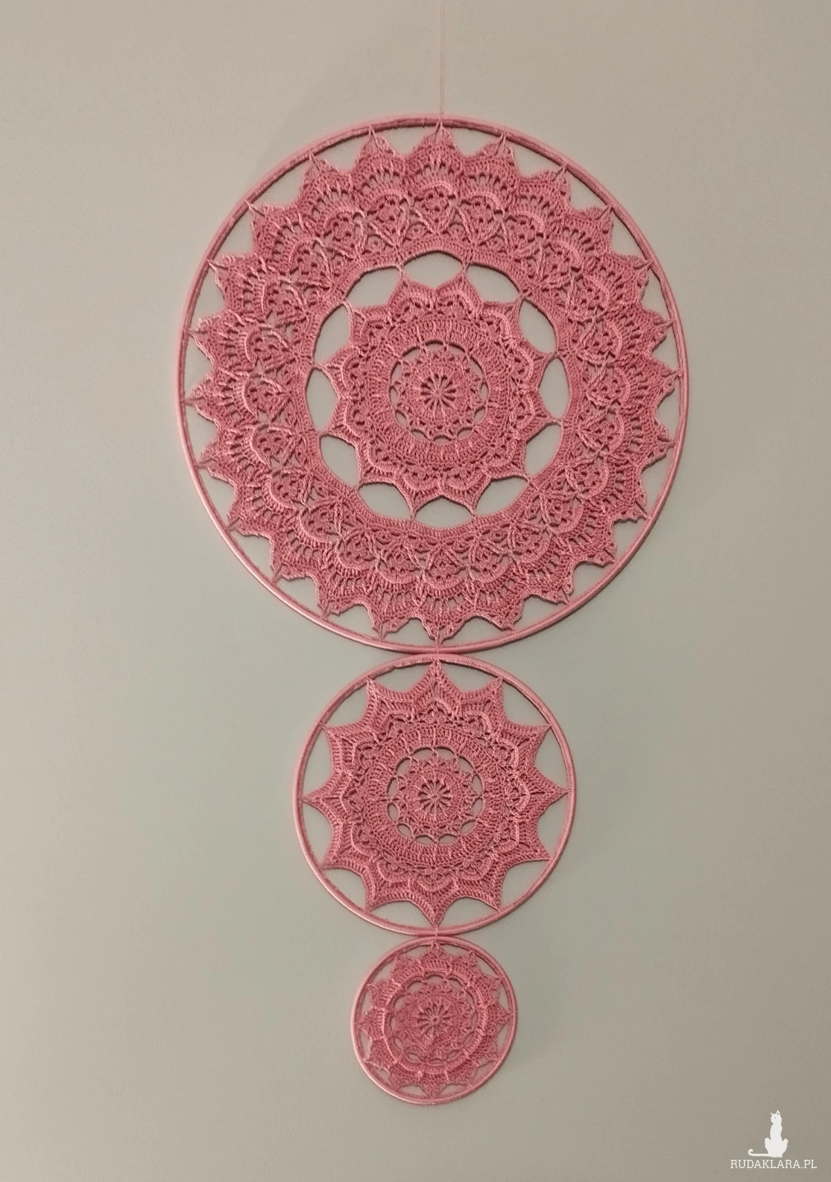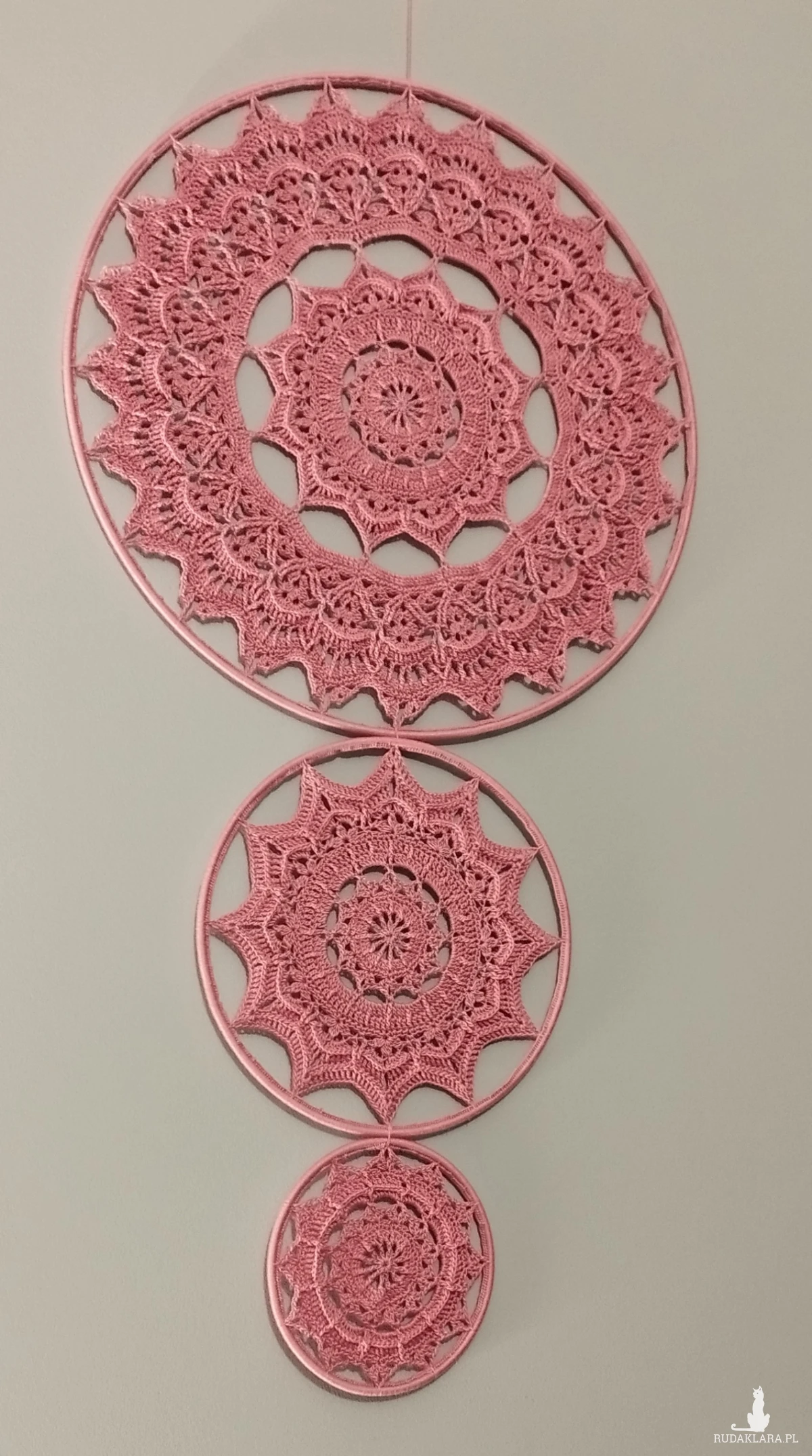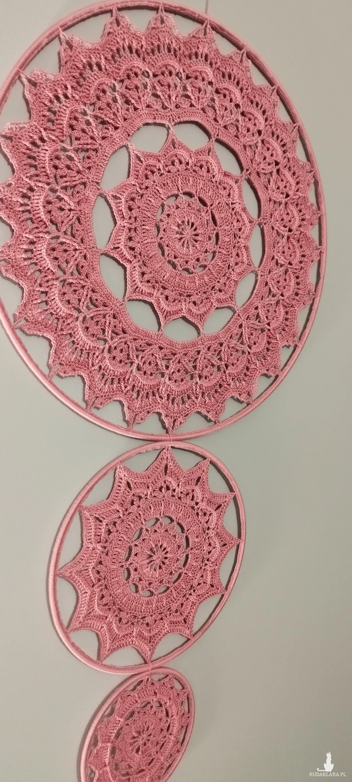 Kordonkowa , potrójna mandala do okna, na ścianę. Średnice kół: 35, 20 i 12 cm.