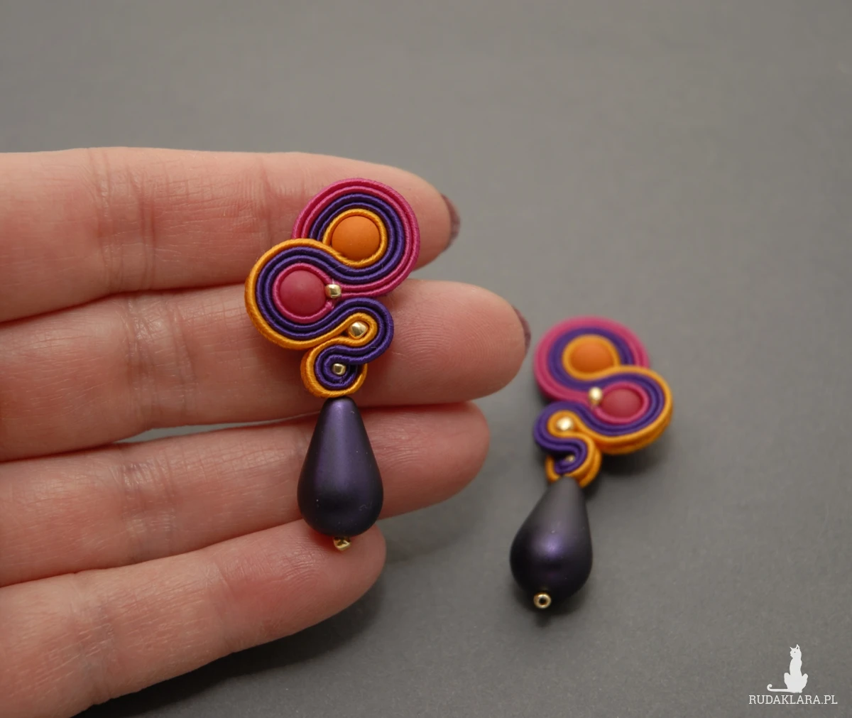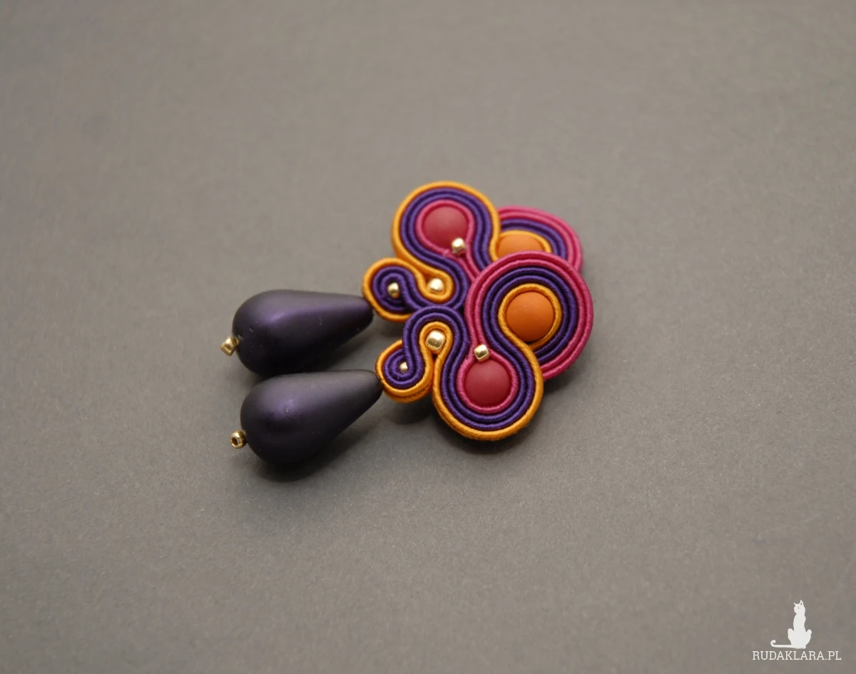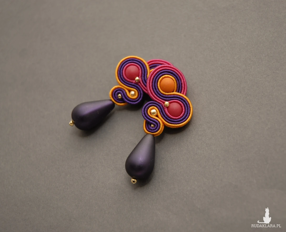 oferuję kolczyki lub klipsy zrobione haftem sutasz, ozdobione koralikami
