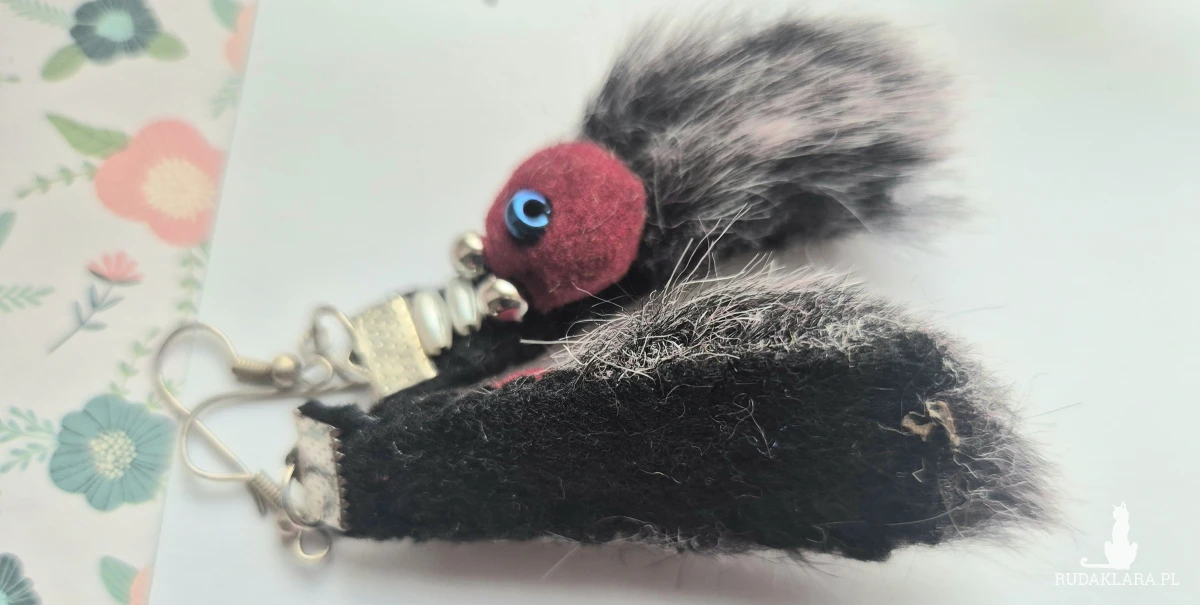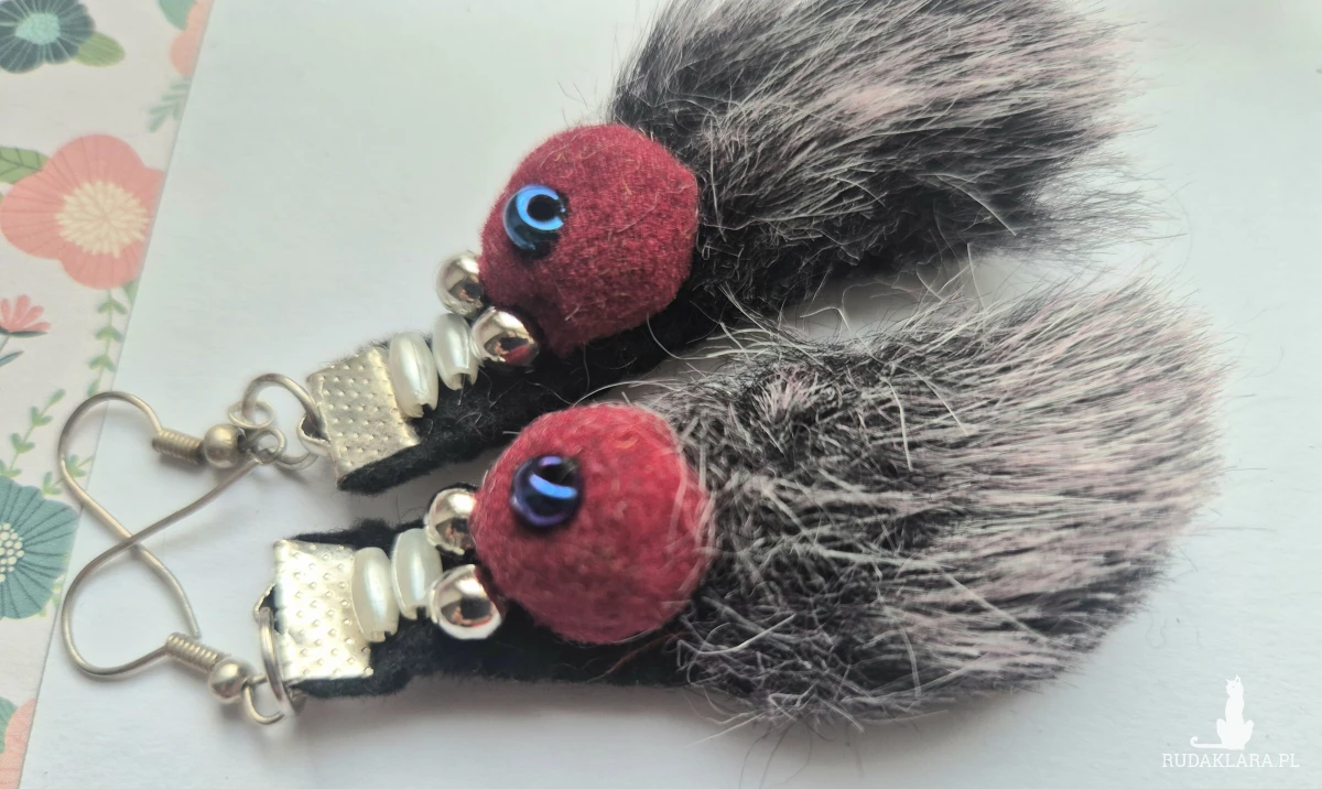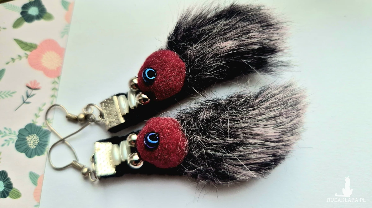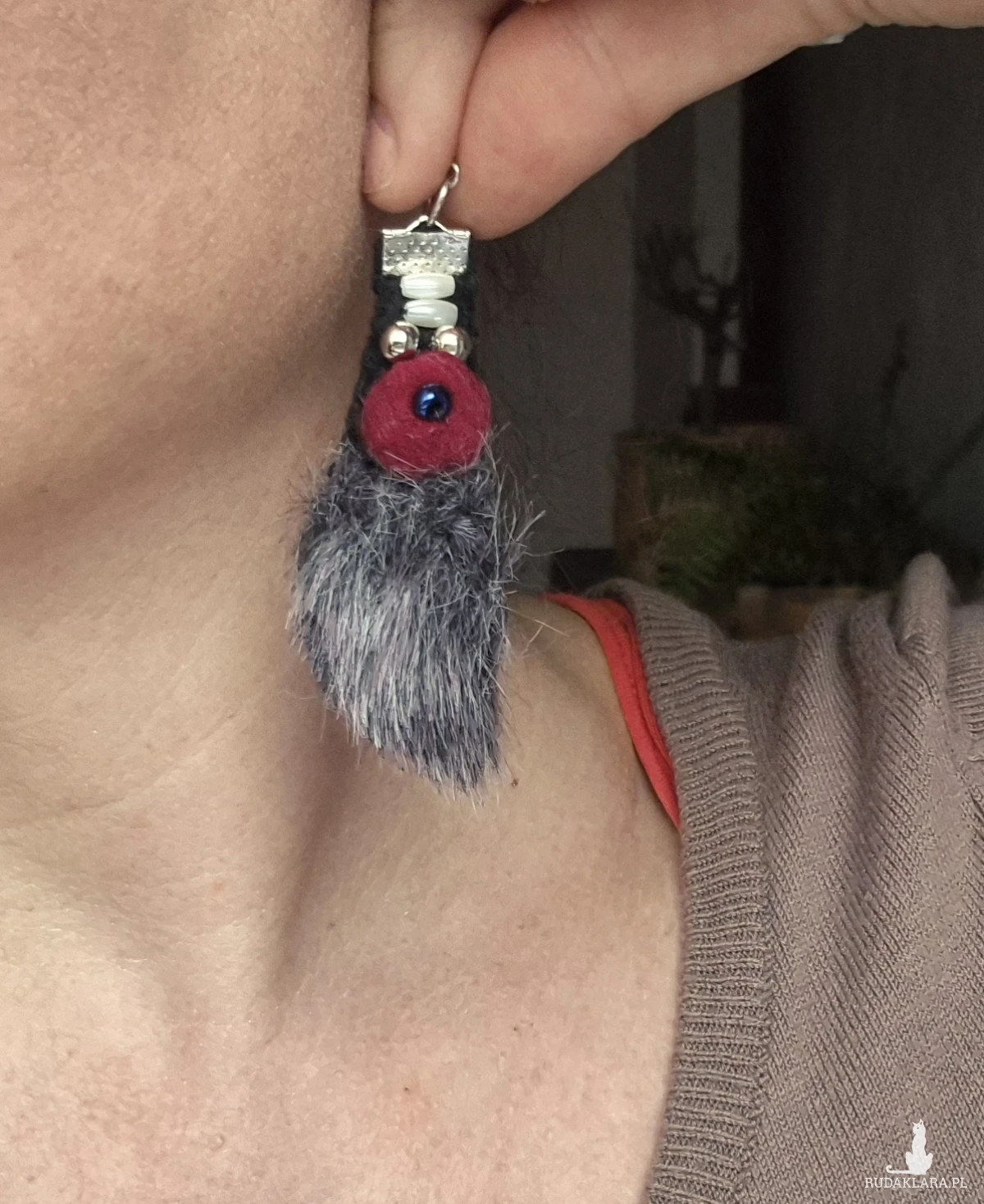 Kolczyki futro i pompony lekkie, wykonane ręcznie pojedynczy egzemplarz,polecam box x1