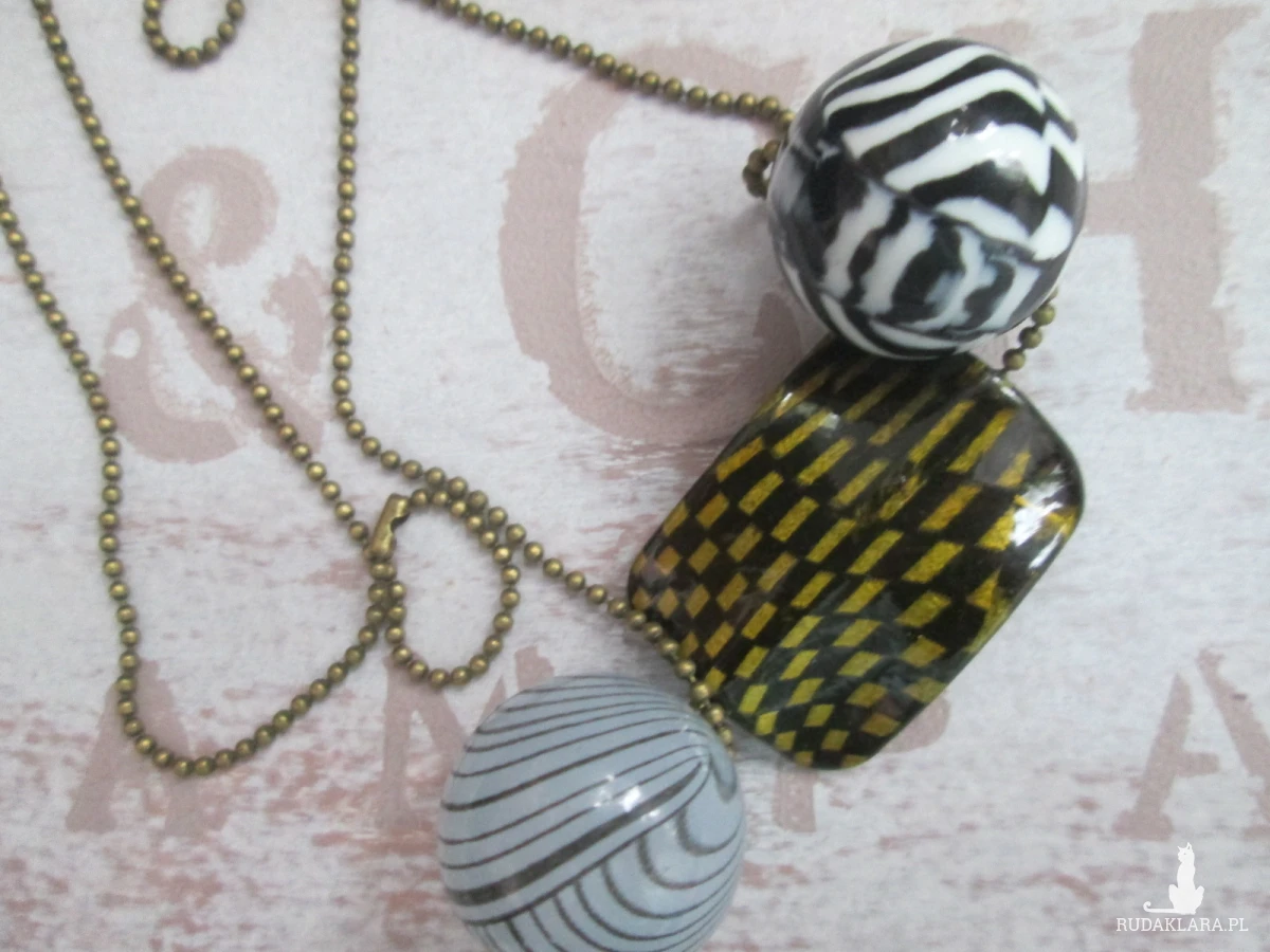 Kolory:łańcuszek koloru starego złota,stylowe koraliki:kolory biały,czarny,szary,złoty