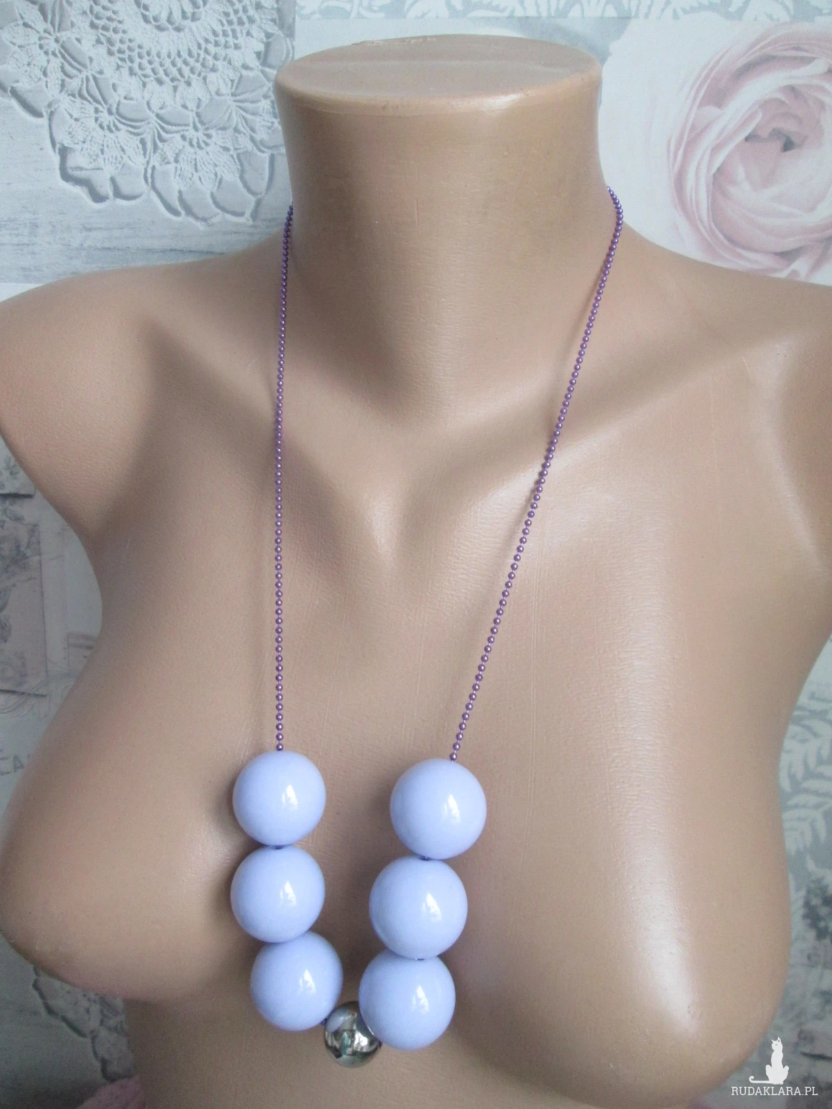 Kolory:łańcuszek koloru liliowego,koraliki-kulki jasny liliowy i srebrny