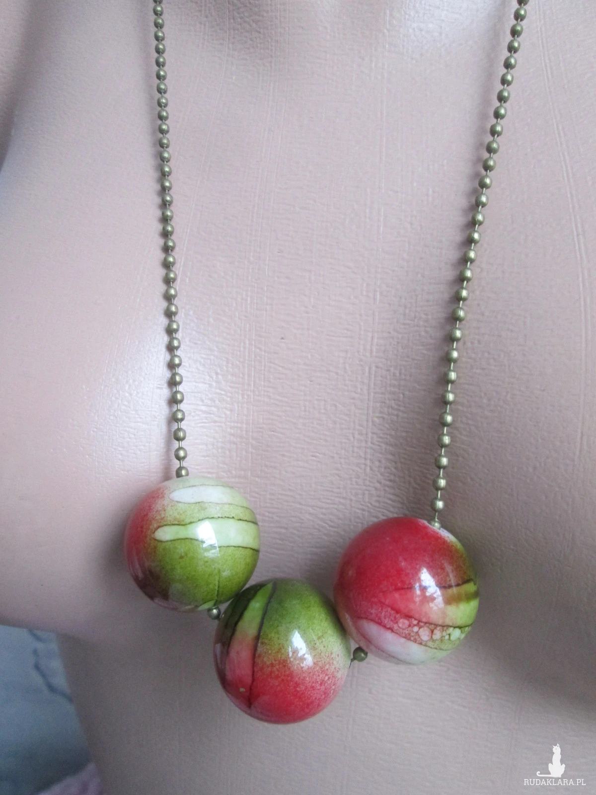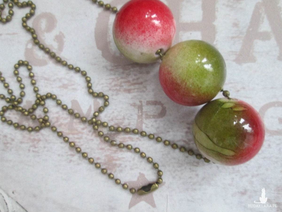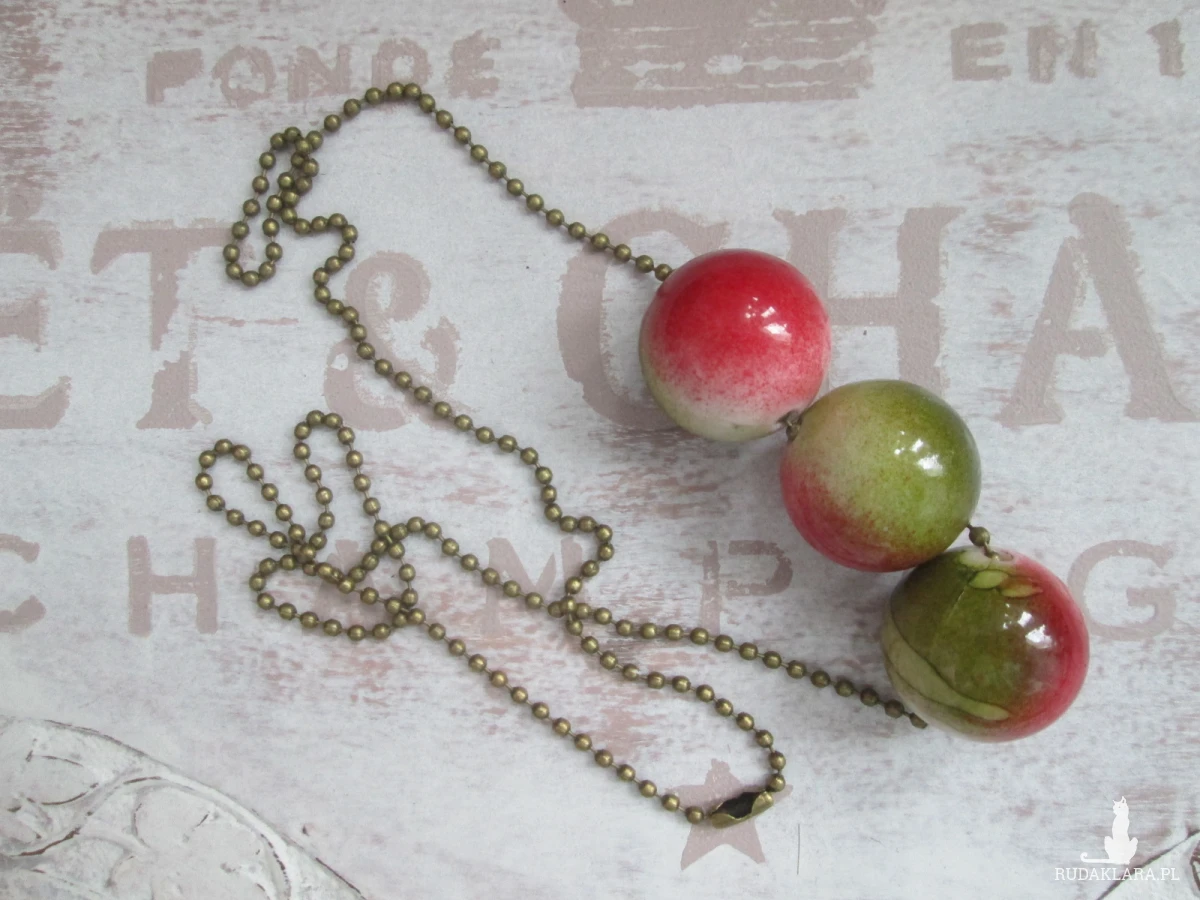 Kolory:łańcuszek koloru starego złota,koraliki cieniowane-khaki,malina