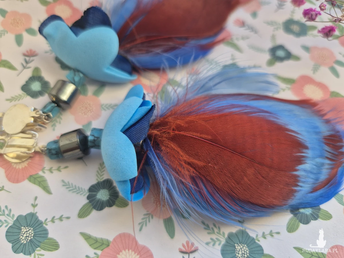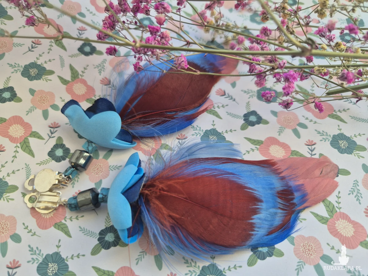 Klipsy pióra kwiaty boho lekkie bardzo oryginalne zwracające uwagę mogę je przerobić również na kolczyki przy zakupie wiadomość dodatkowej daj znać polecam