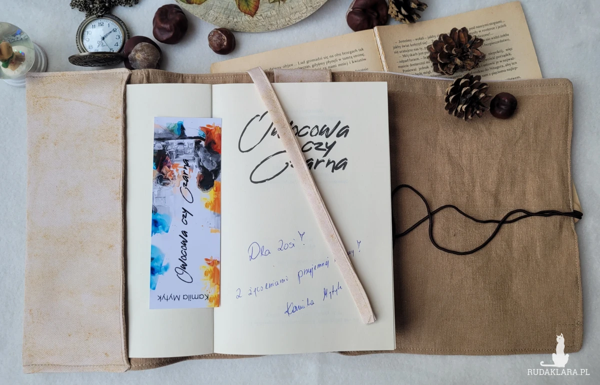 - zapięcie na gumkę, dzięki czemu książka się nie otwiera, a okładka dostosowuje się do grubości tomu;