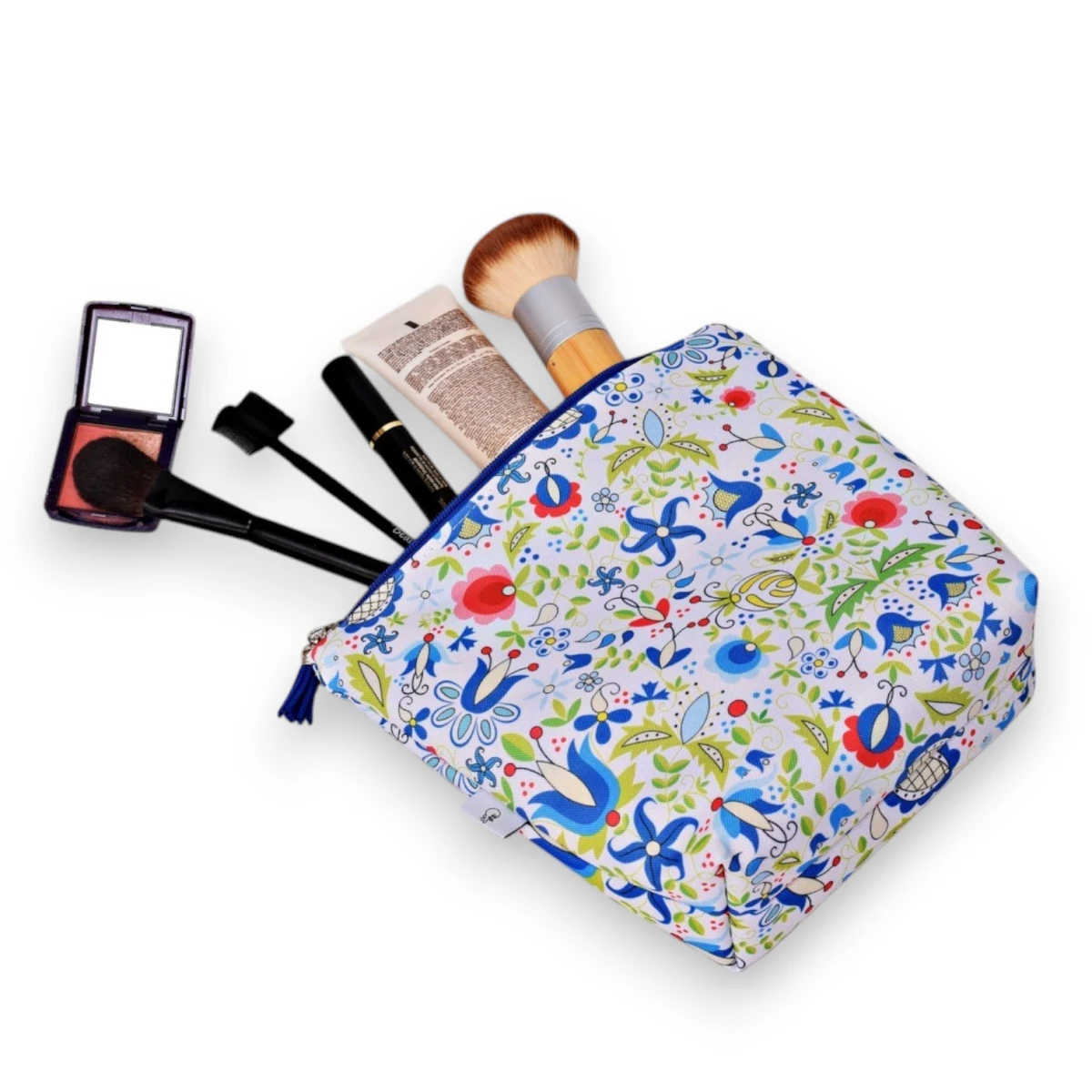 Kosmetyczka nie jest usztywniona, możesz ją trzymać na domowej toaletce lub schować do torebki wraz z ulubionymi kosmetykami.