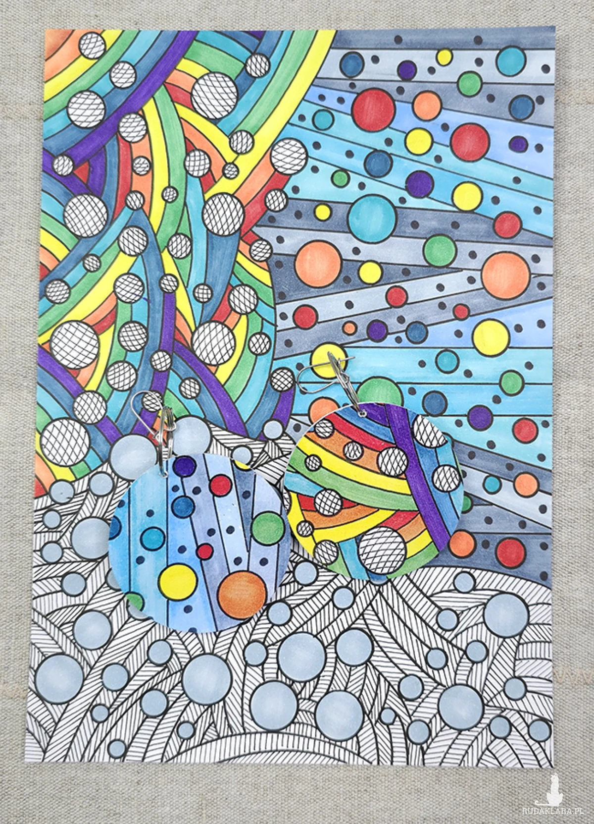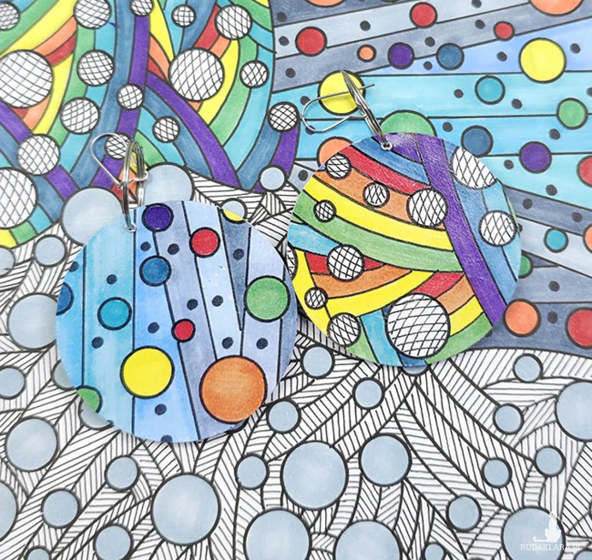 6499  bardzo kolorowe, duże, dwustronne kolczyki; 4 w 1;