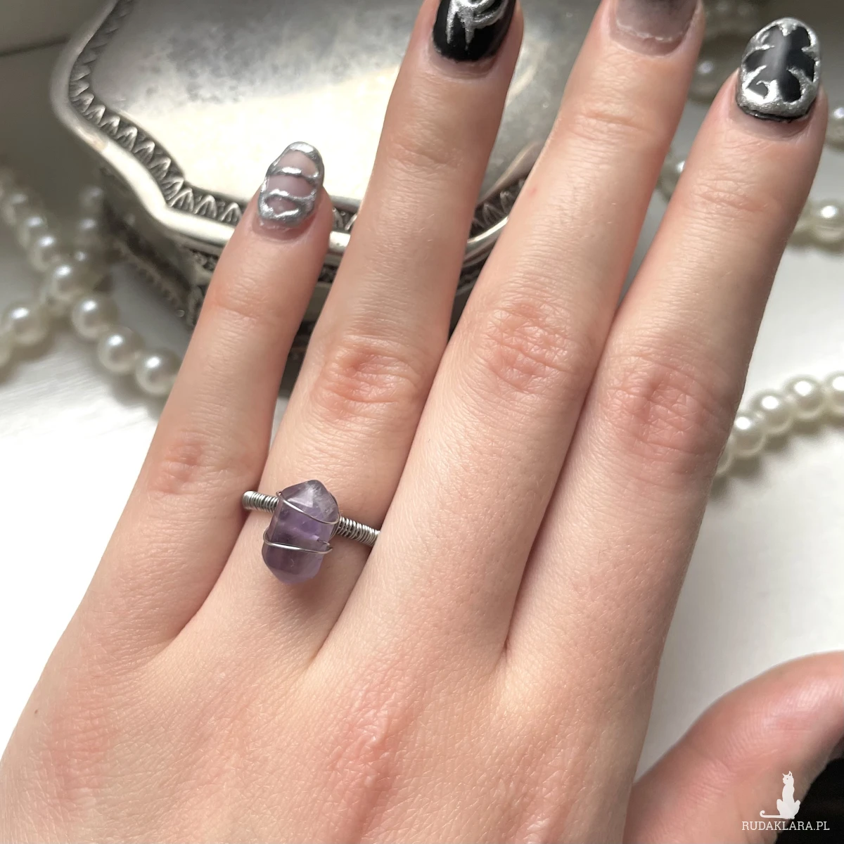Wykonany ze stali chirurgicznej i naturalnego ametystu :))