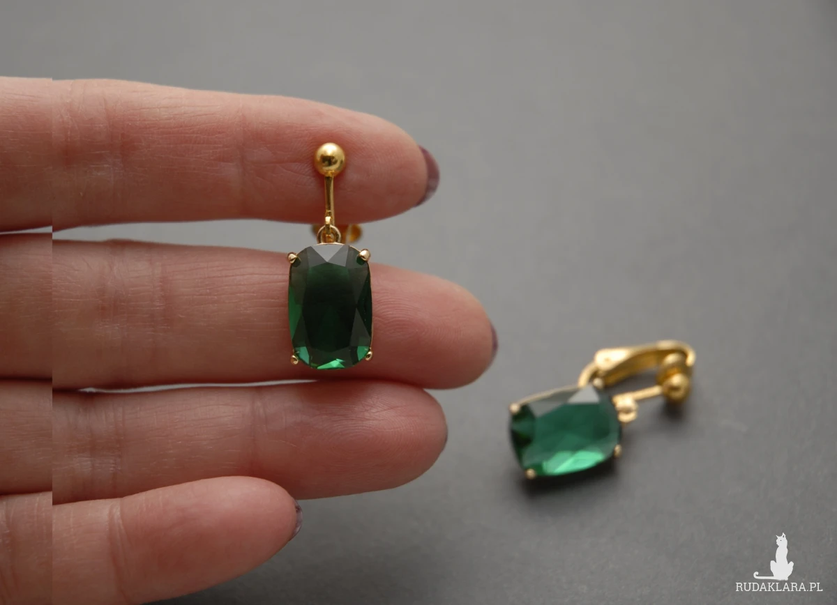 oferuję kolczyki lub klipsy ozdobione szklanym, fasetowanym kaboszonem. Kaboszon ma ozdobną oprawę.
