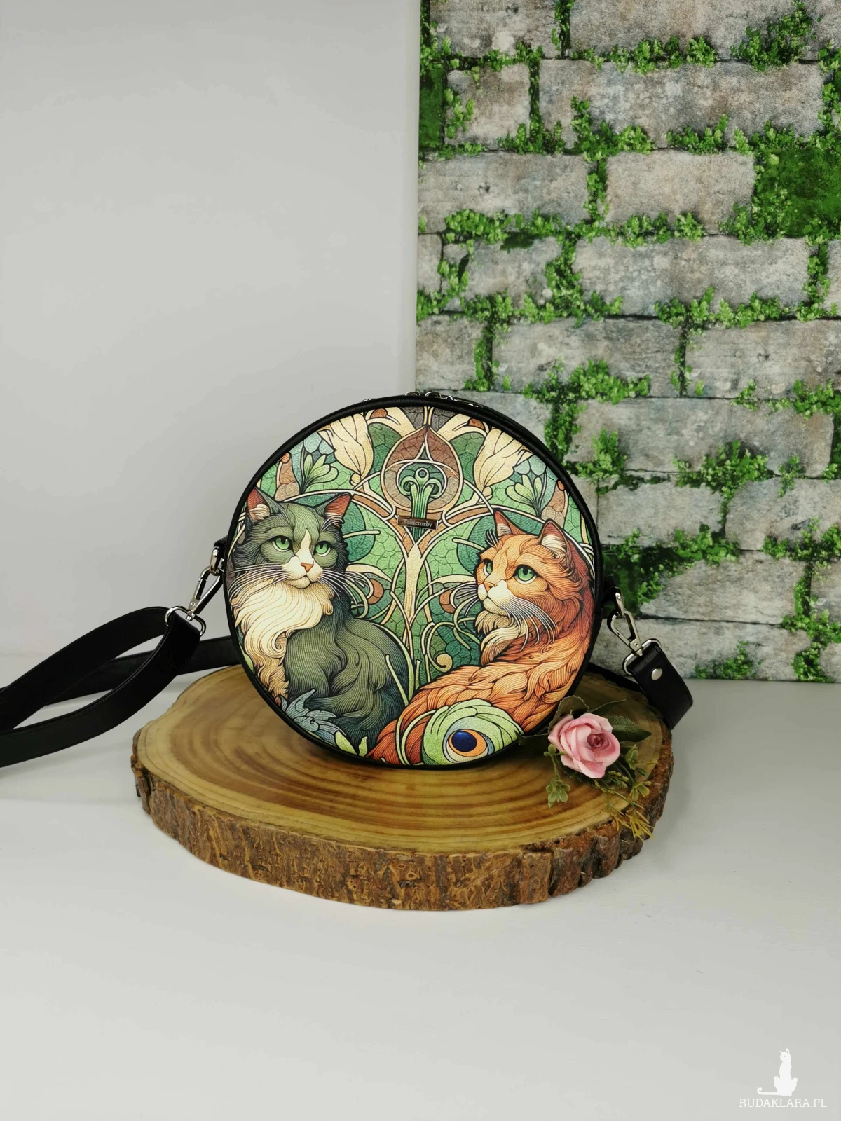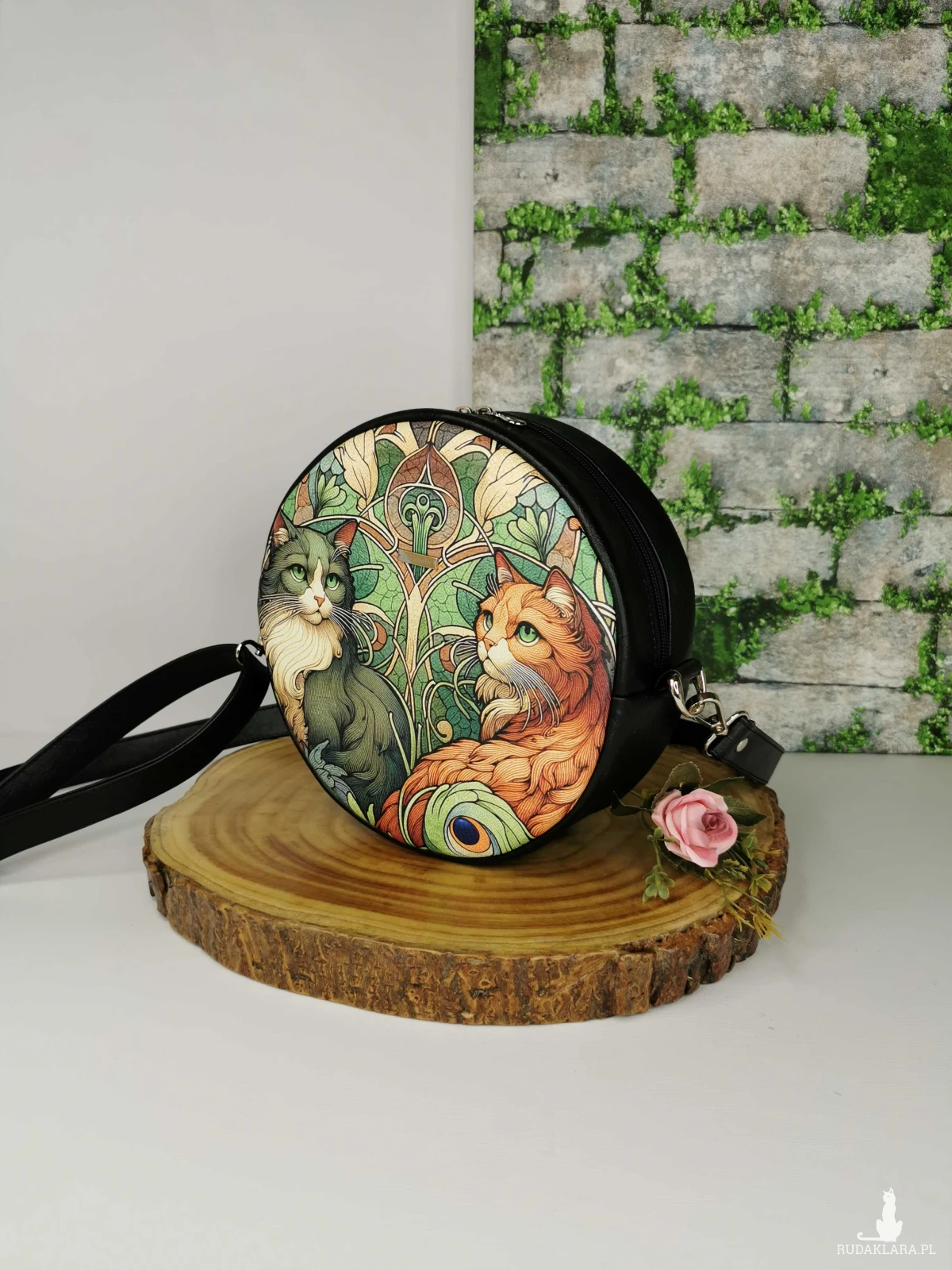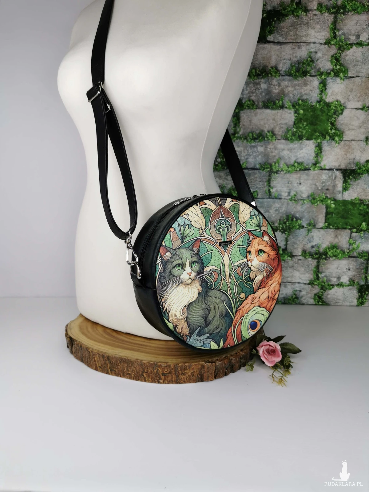 Torebka okrągła - Round Bag. Torebka zapinana na zamek. Wykonana w całości z ekoskóry kaletniczej. Przód torebki to ekoskóra wzorzysta. Tył torebki czarna ekoskóra