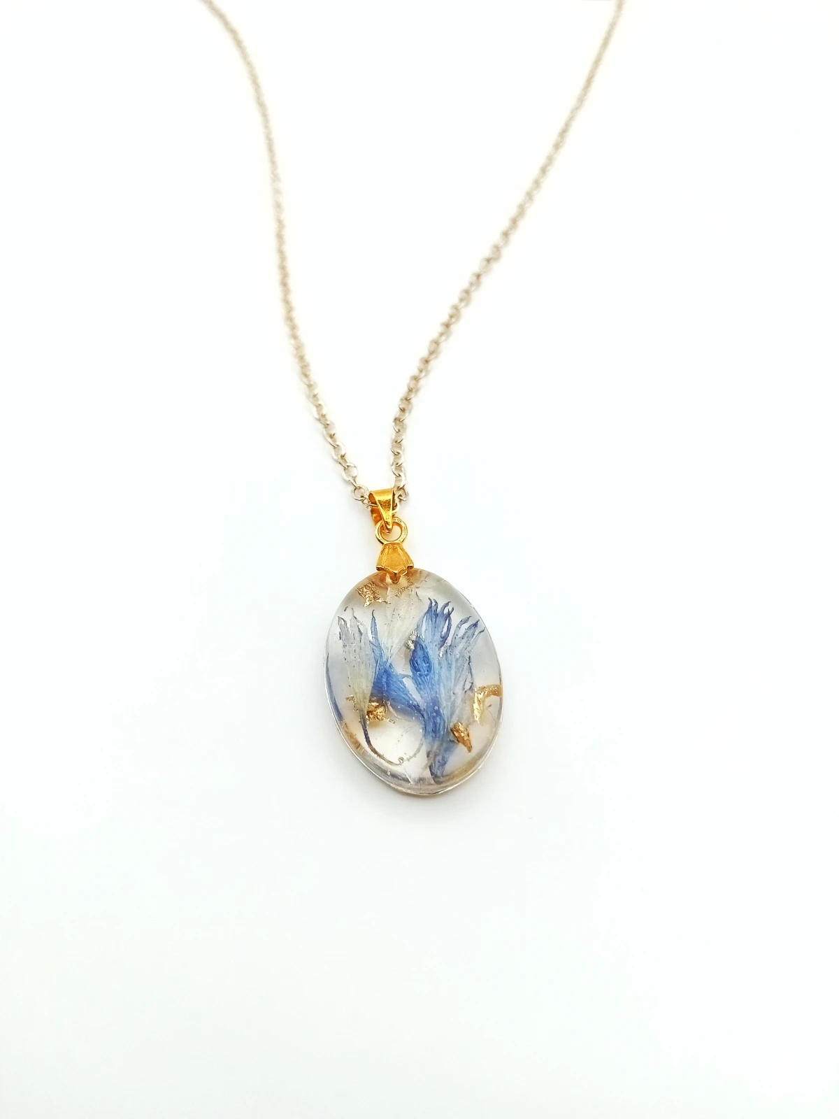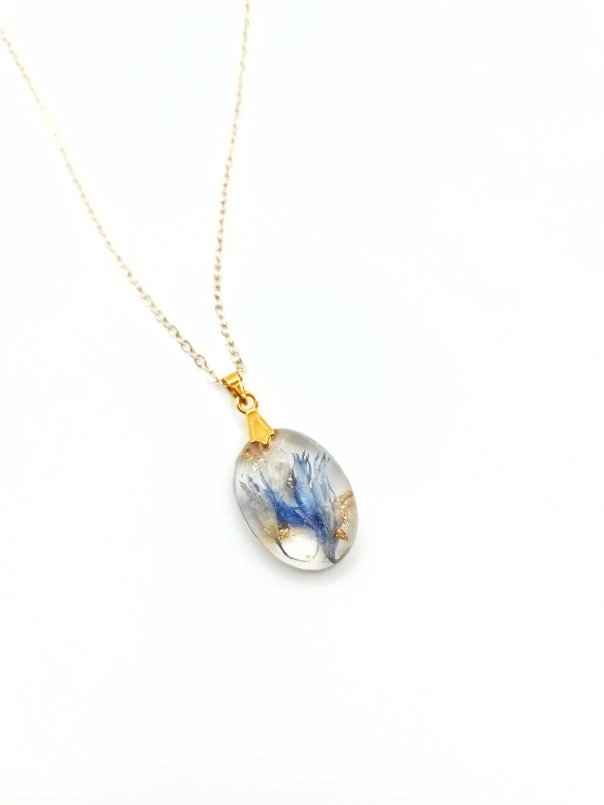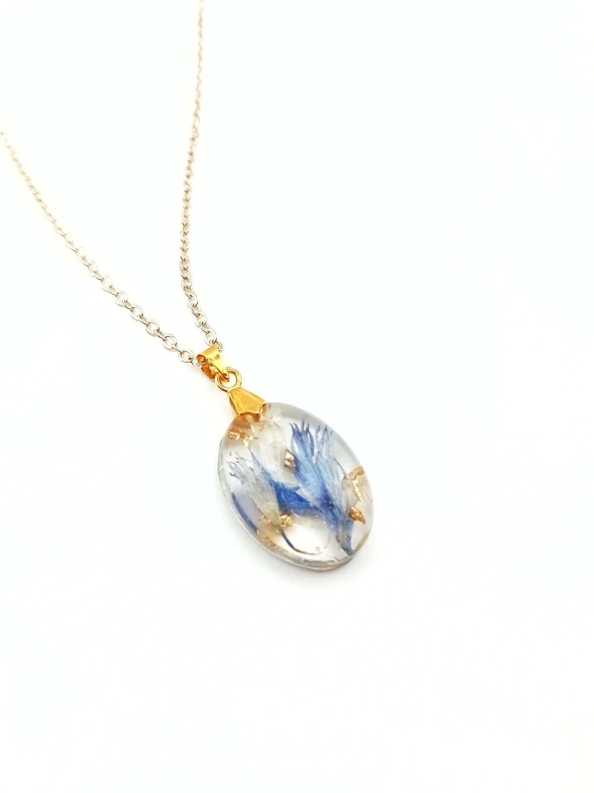 Dodaj wyjątkowy akcent do swojej biżuterii dzięki ręcznie wykonanemu wisiorkowi z transparentnej żywicy epoksydowej. Zatopiony w nim suszony chaber oraz delikatne złote drobinki tworzą harmonijne połączenie naturalnego piękna i elegancji. Idealny na każdą okazję, ten wisiorek to prawdziwy skarb w Twojej kolekcji.