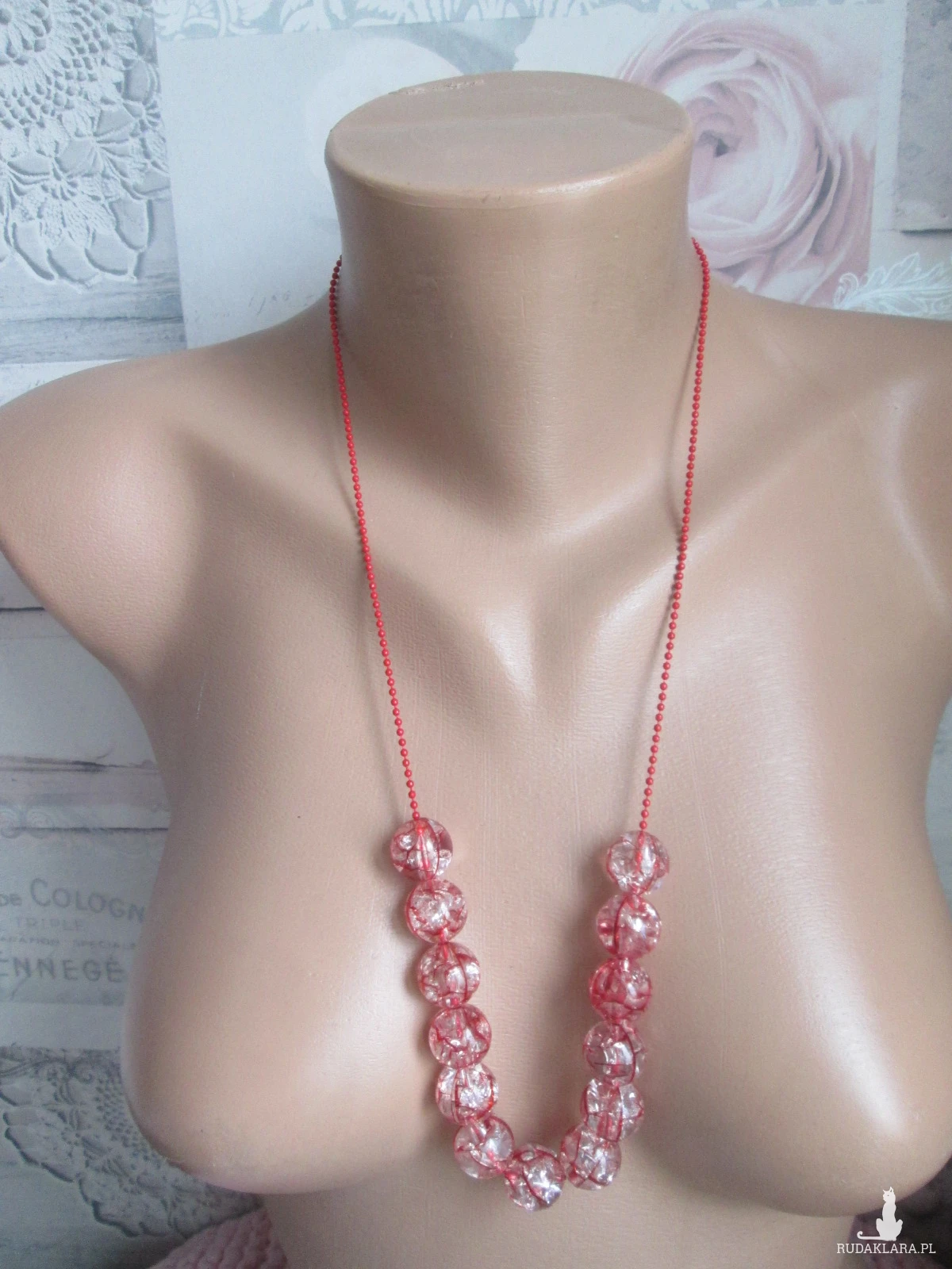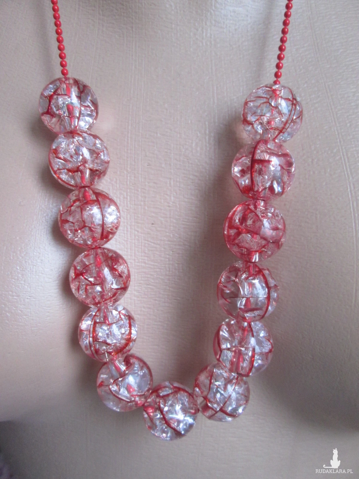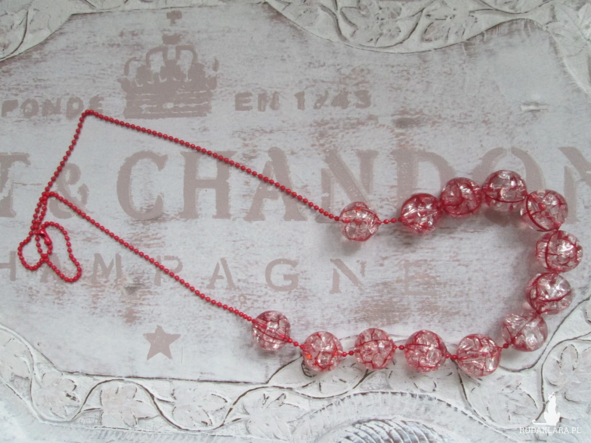 Materiały:ozdobne koraliki/kulki(ceramika/ plastik-przezroczyste,imitacja tłuczonego szkła z żyłkami),na łańcuszku kulkowym(metal),zapięcie typu łódka