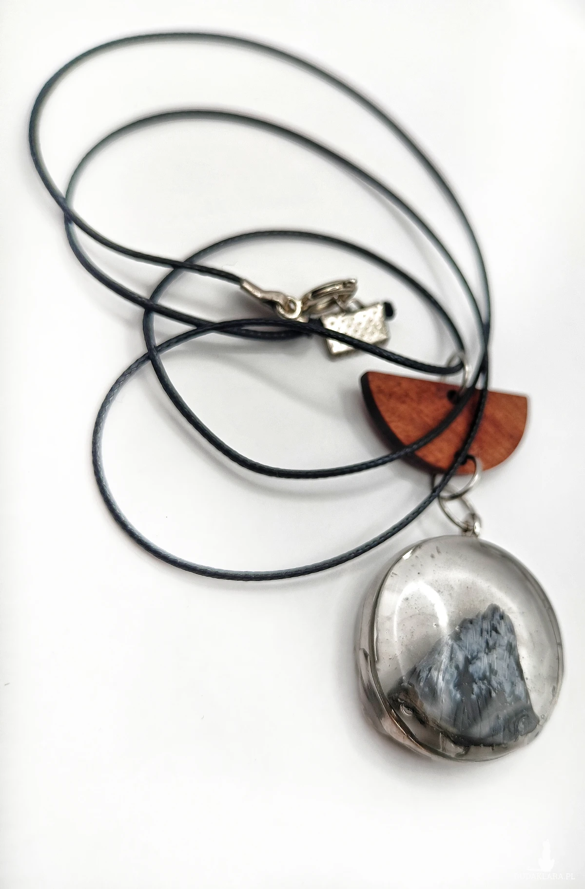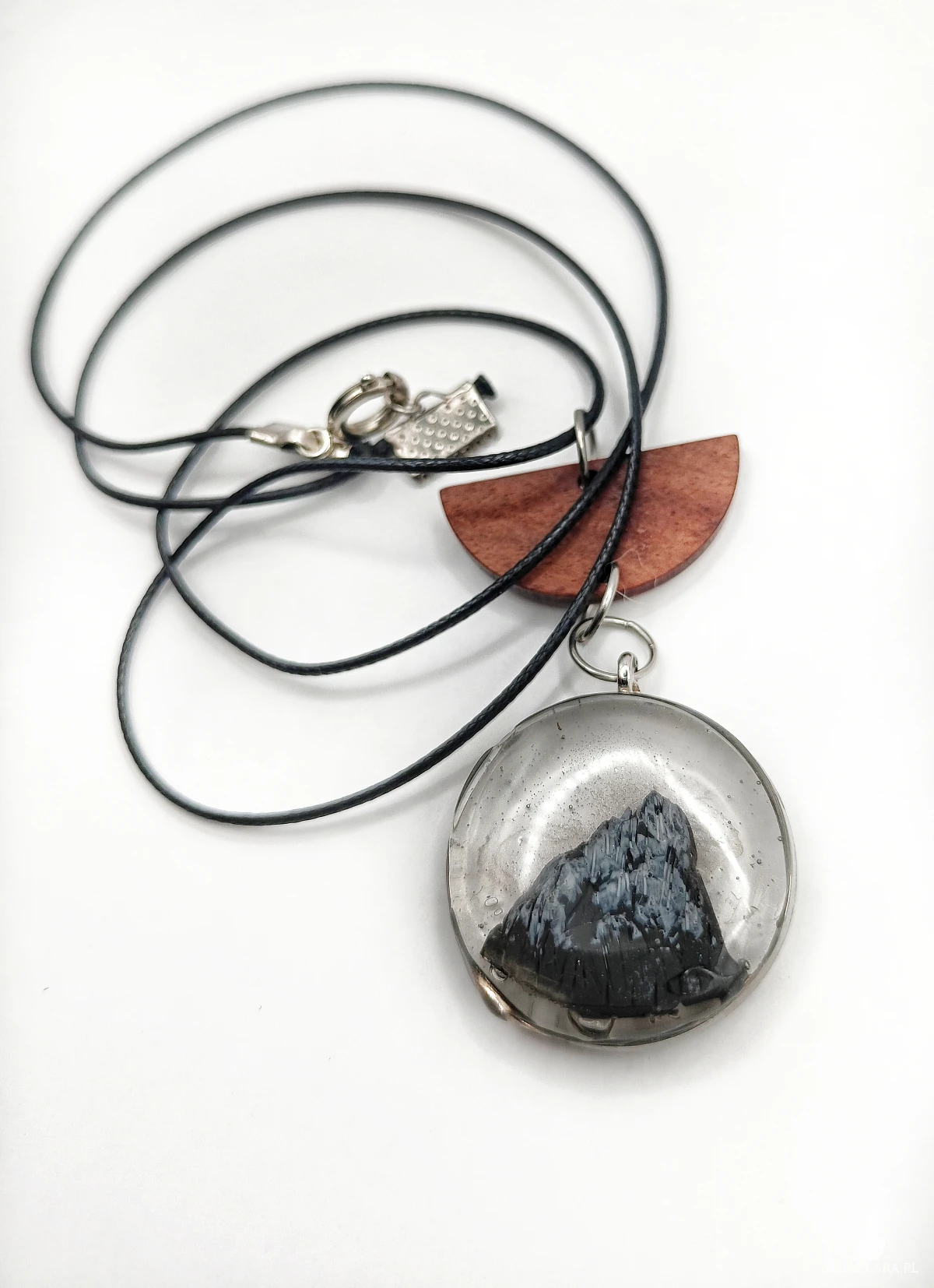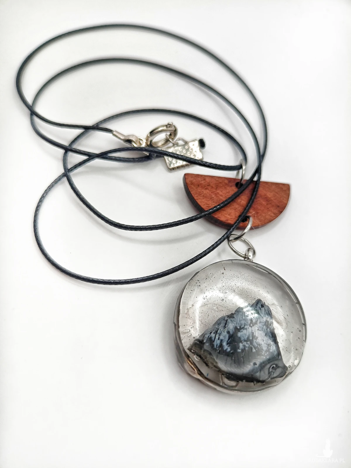 Dodaj do swojej biżuterii wyjątkowy akcent inspirowany naturą! Ten ręcznie wykonany naszyjnik łączy w sobie naturalne piękno drewna, gliny polimerowej i żywicy, tworząc harmonijną całość. Idealny dla miłośników gór, którzy chcą nosić kawałek swojej pasji na co dzień.