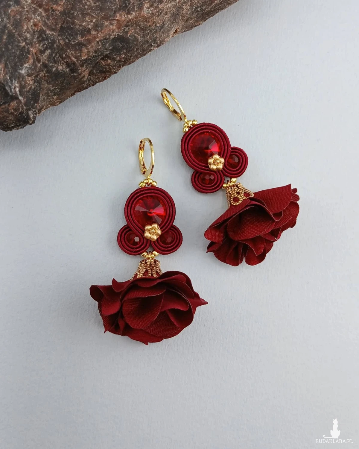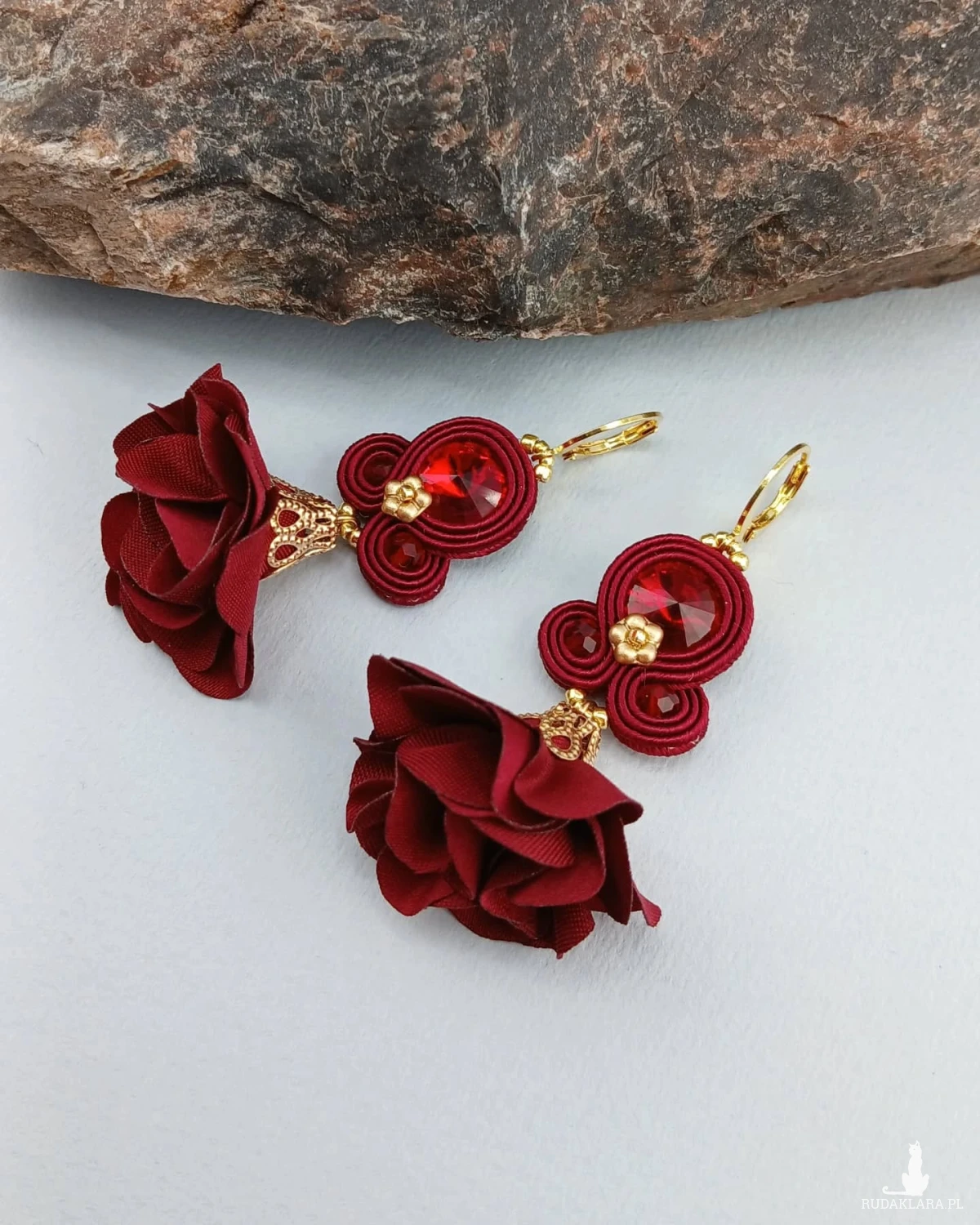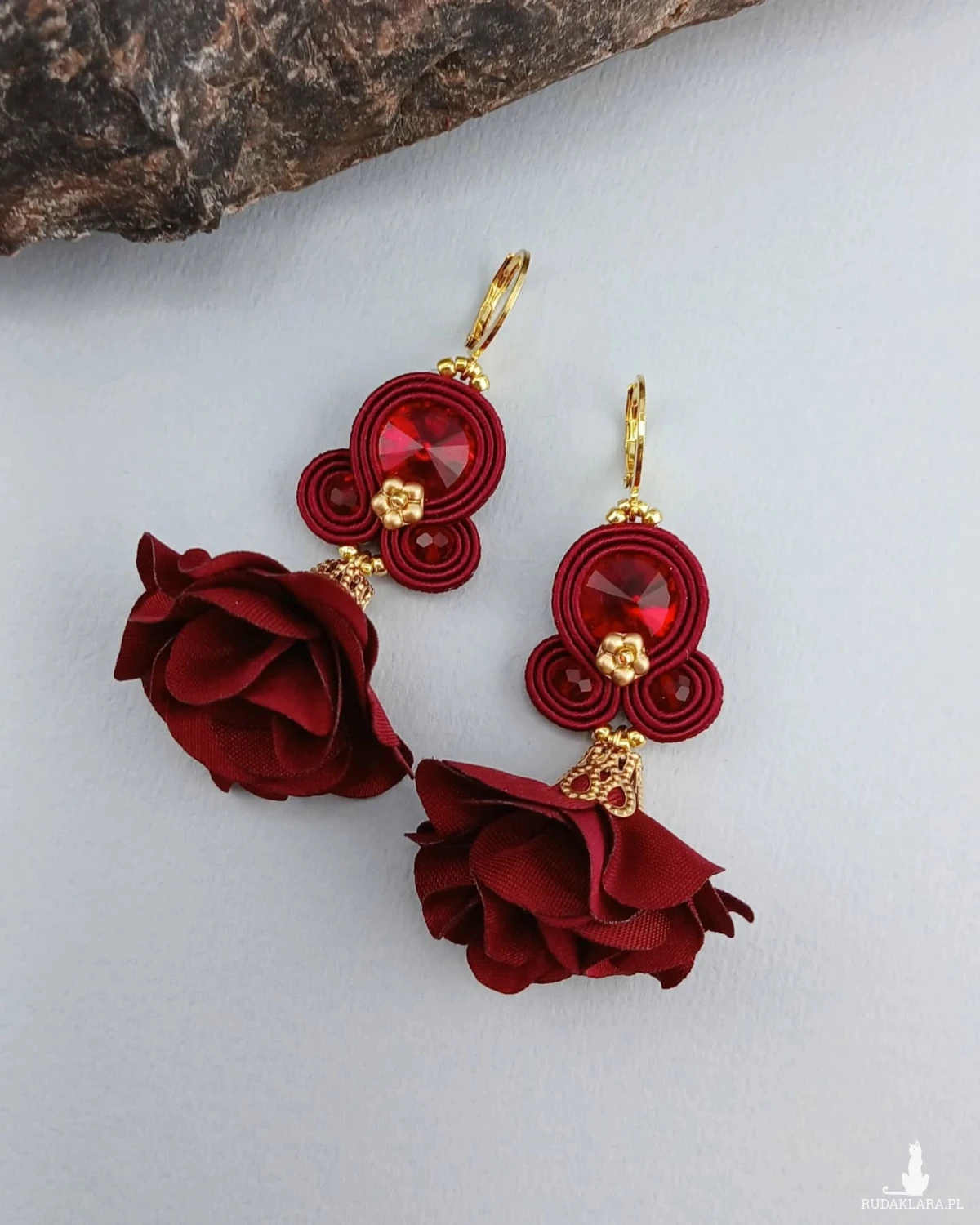 Kryształki i koraliki szklane w kolorze bordowym i złotym