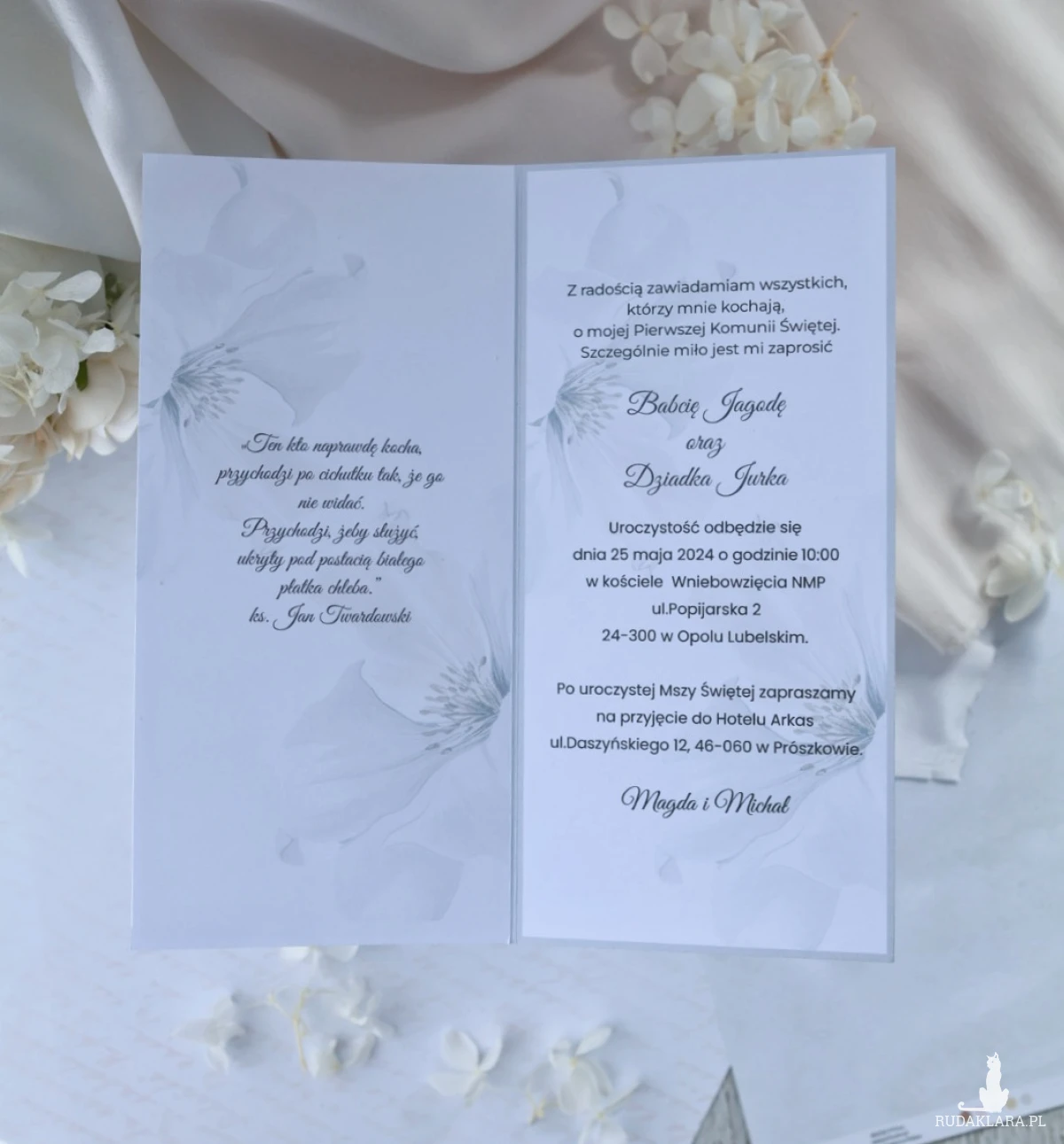✔ Ręczne wykonanie i efekt 3D – dopracowane detale, które wyróżniają zaproszenia na tle standardowych wzorów.