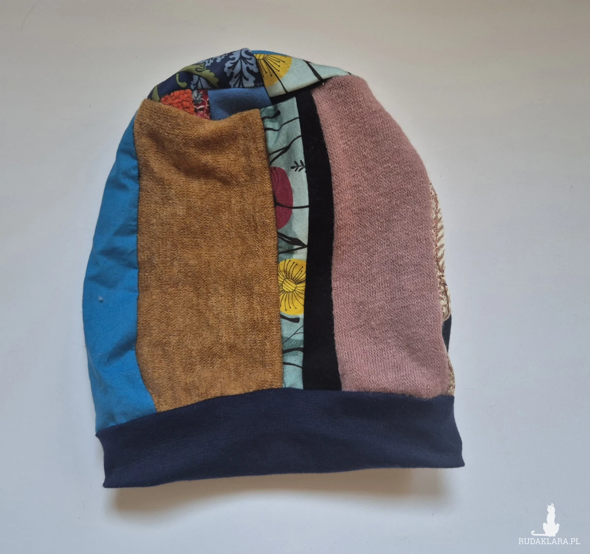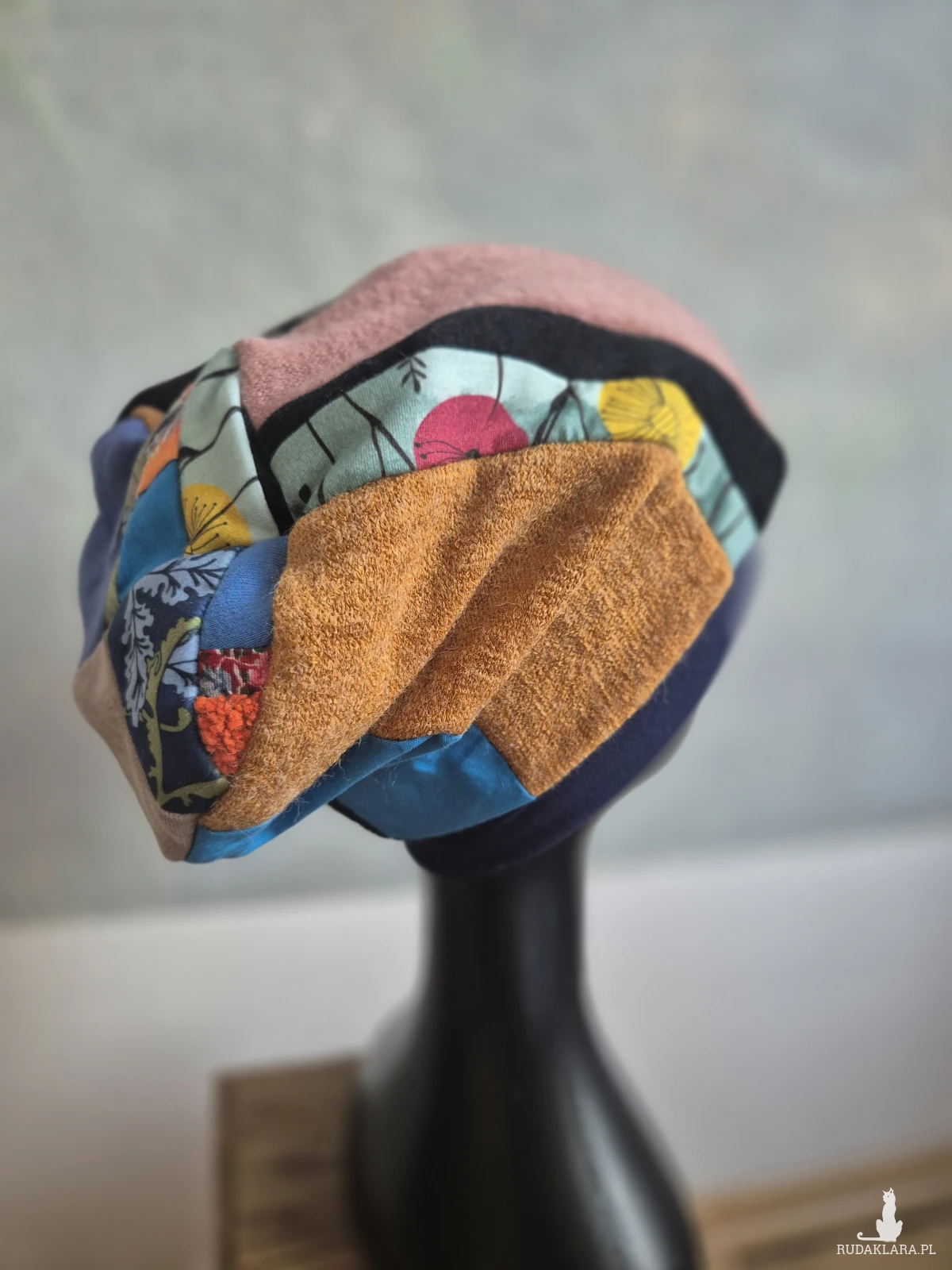 Czapka codzienna patchworkowa  kolorowa rozmiar uniwersalny, dla artystki, czapka jest totalnie szalona i zwariowana ,nie zginiesz w tłumie , box a1