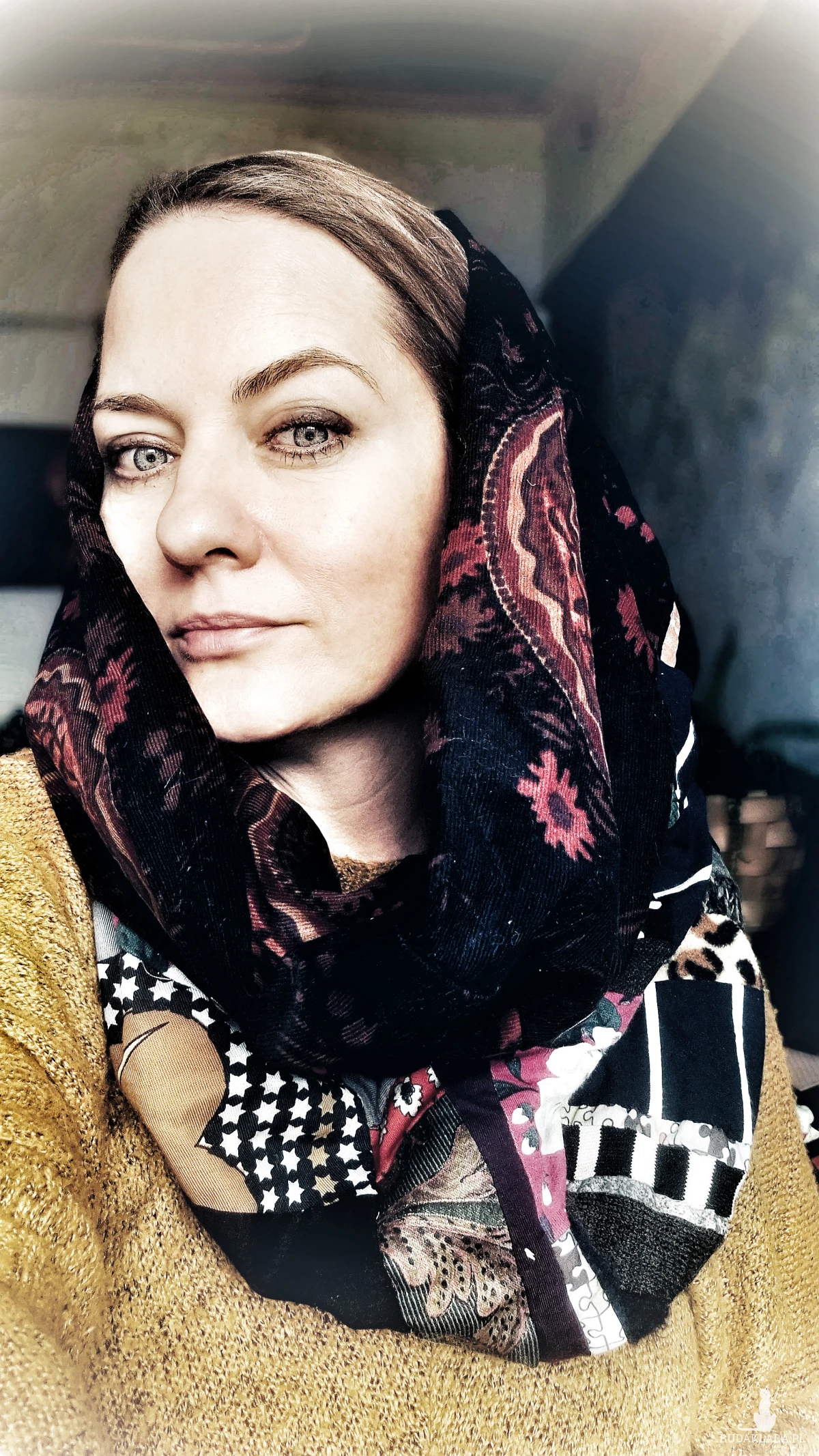komin miękki patchworkowy kolorowy uniwersalny damski rozmiar 49cm na 47cm