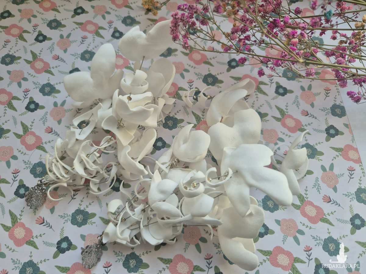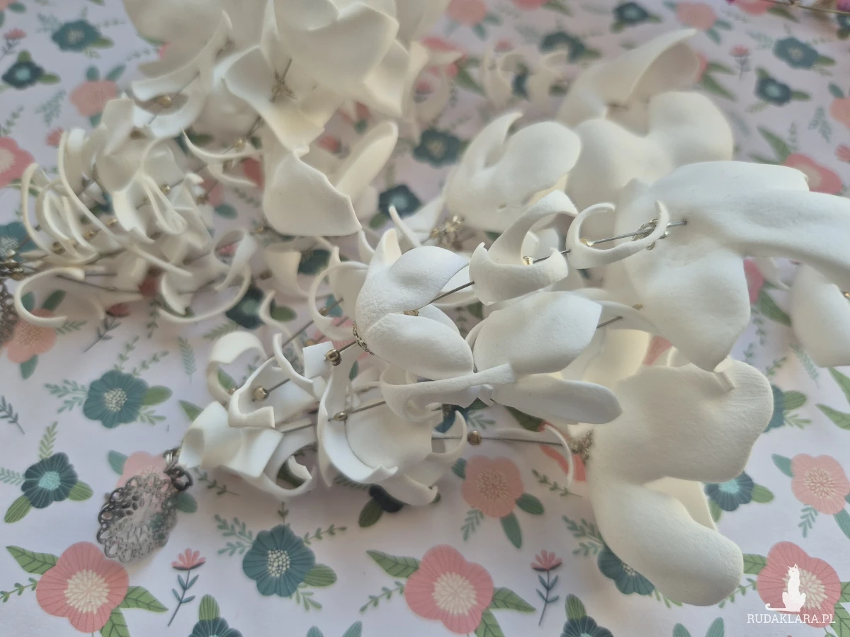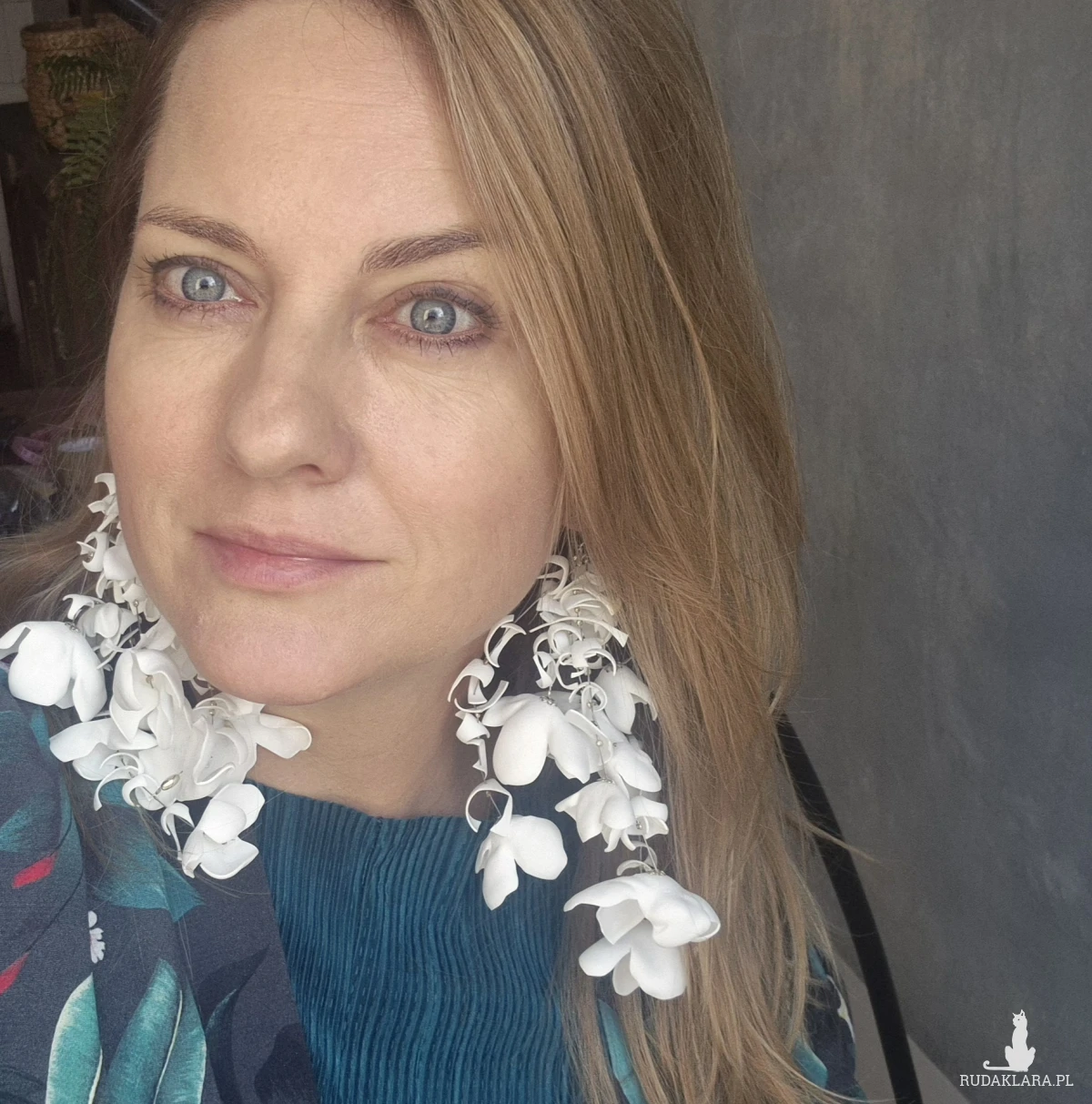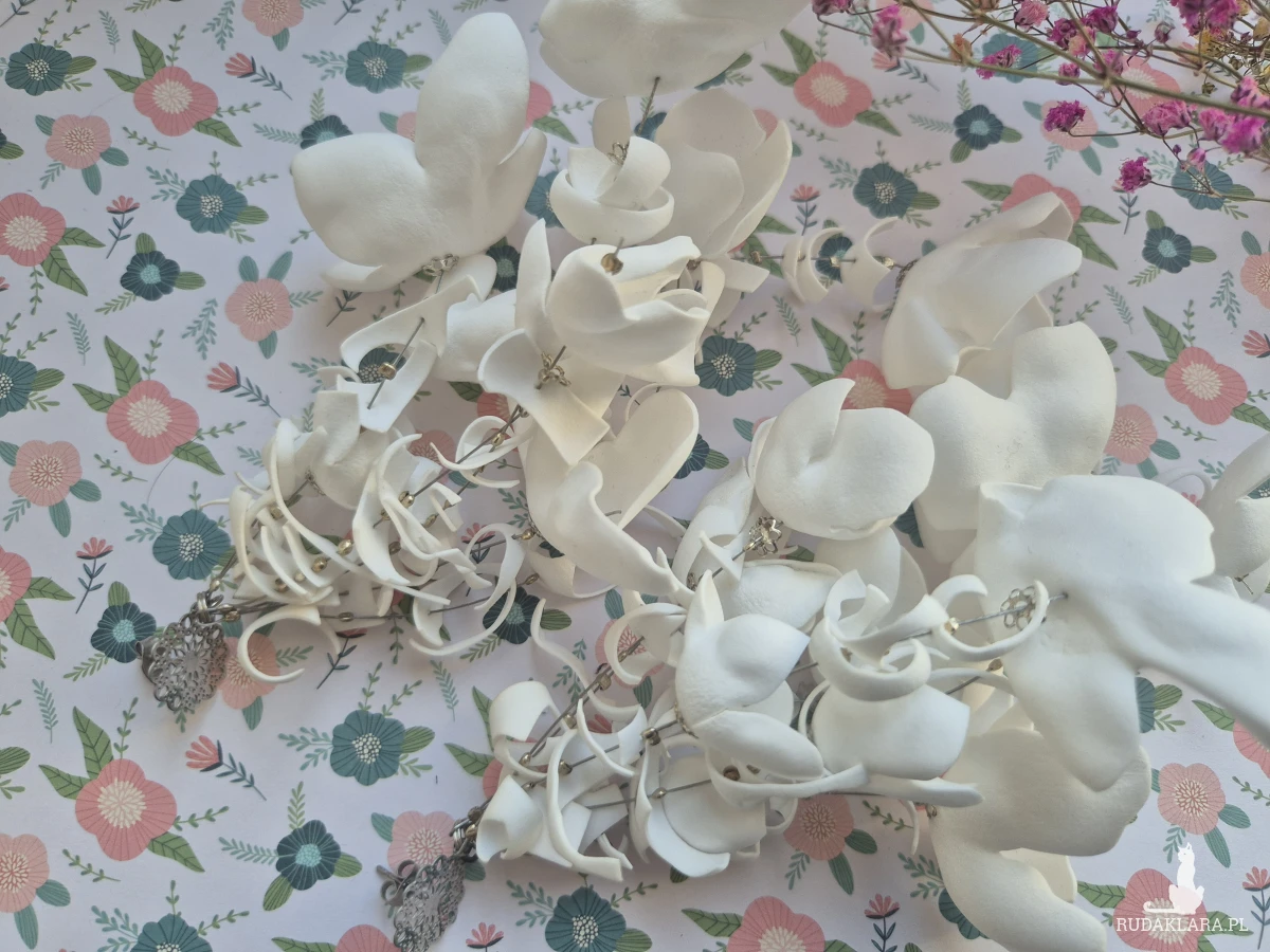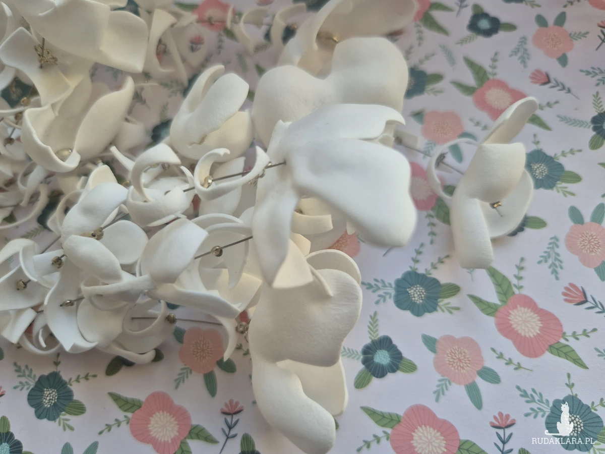 Kolczyki długie białe kwiaty bardzo leciutkie zwracają uwagę doskonałe na ślub zawieszki ze stali nierdzewnej antyalergiczne polecam