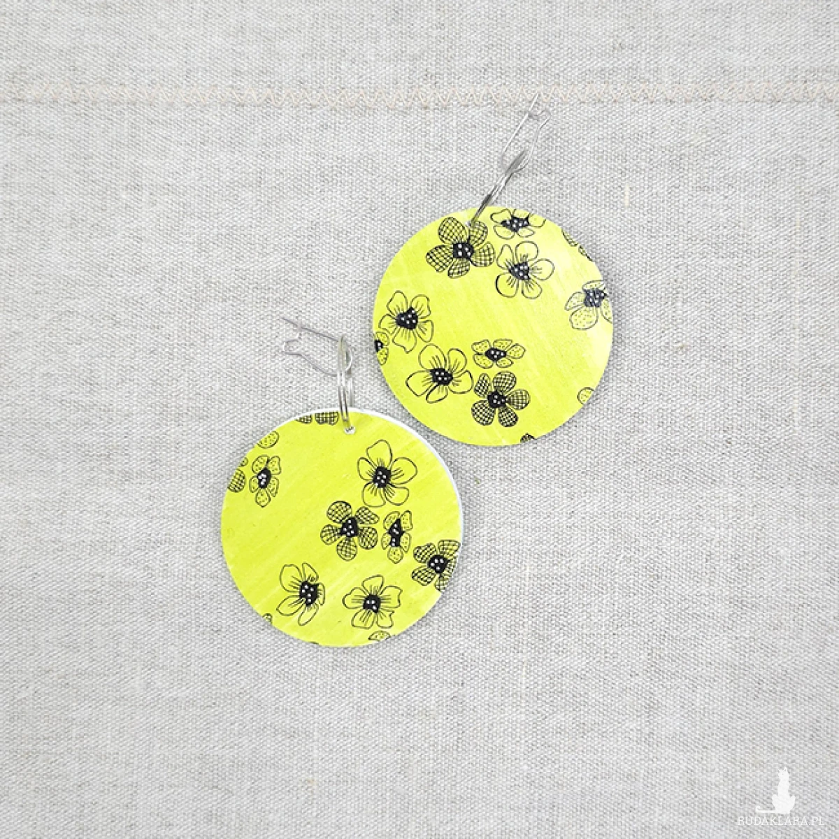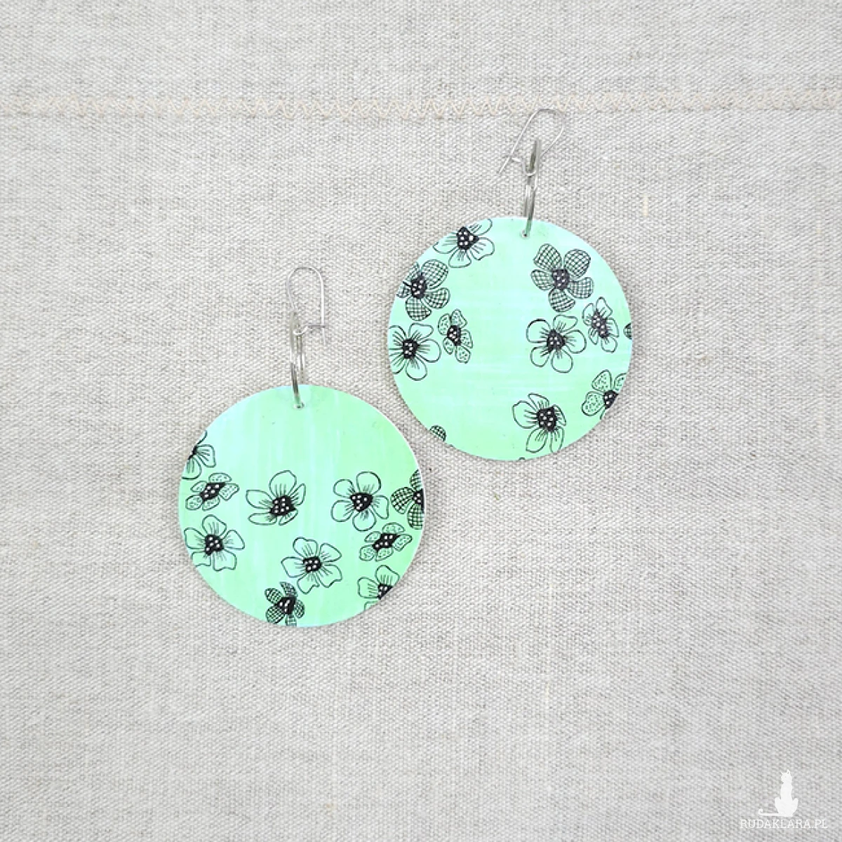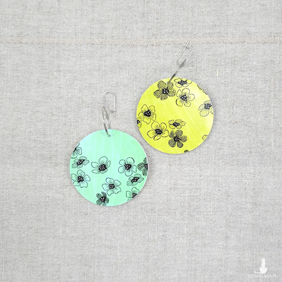 Ręcznie malowane (rysowane) kolczyki. Baza drewniana plus satynowy papier.