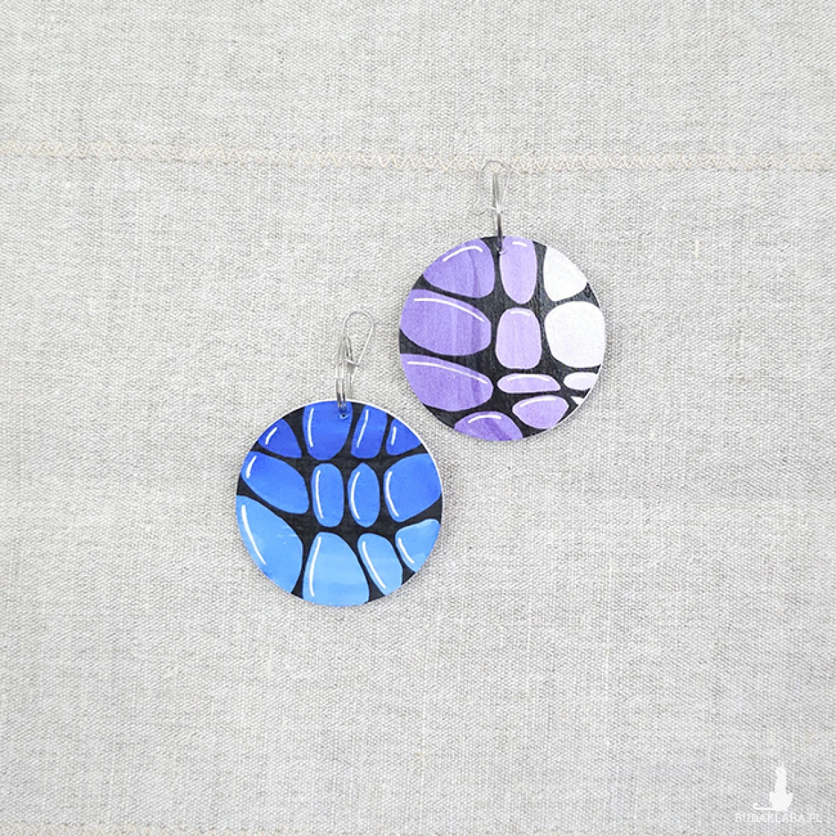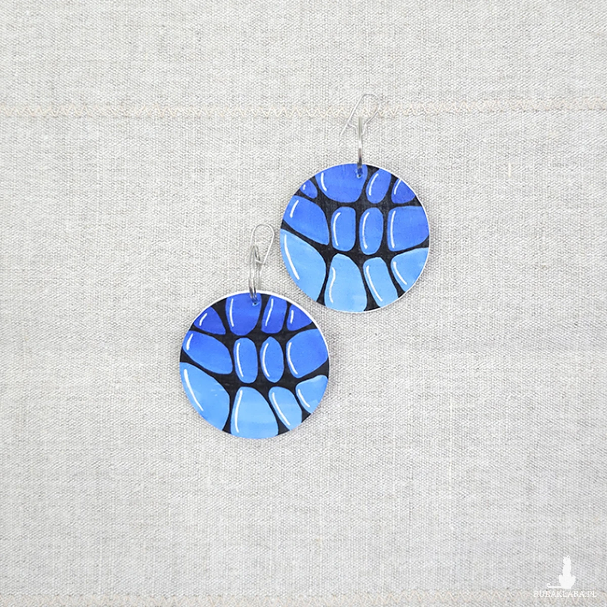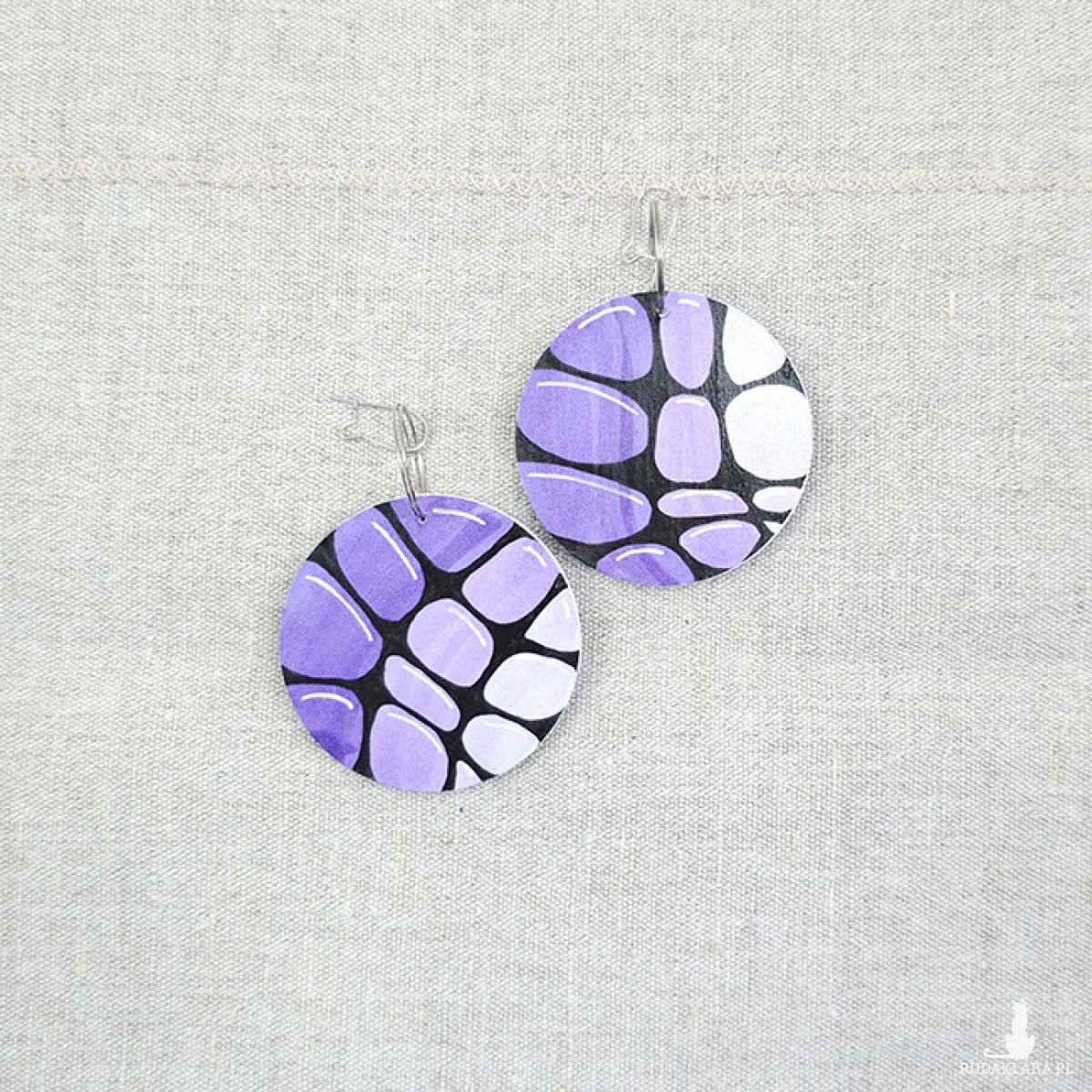 Ręcznie malowane (rysowane) kolczyki. Baza drewniana plus satynowy papier.