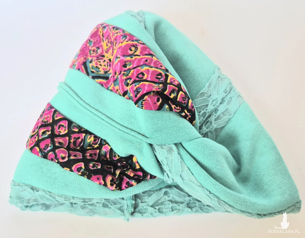 Turban kolorowy etno orient milutki uniwersalny, zalecany dla artystek, wizjonerek, prowokatorek i matek które już widzą światełko w tunelu, dla wyzwolonych kotek z wyobraźnia, dla pań bez wyobraźni NIE , box a1