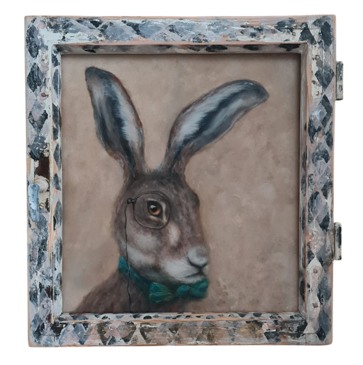 Cześć, przedstawiam obraz mojego autorstwa, namalowany farbami olejnymi na panelu malarskim, oprawiony w ramę okienna, posiada zawieszki, calosc zabezpieczona werniksem i lakierem do drewna
