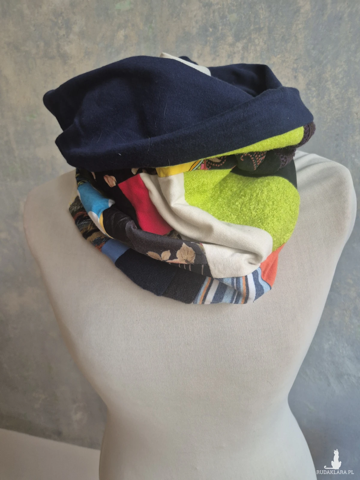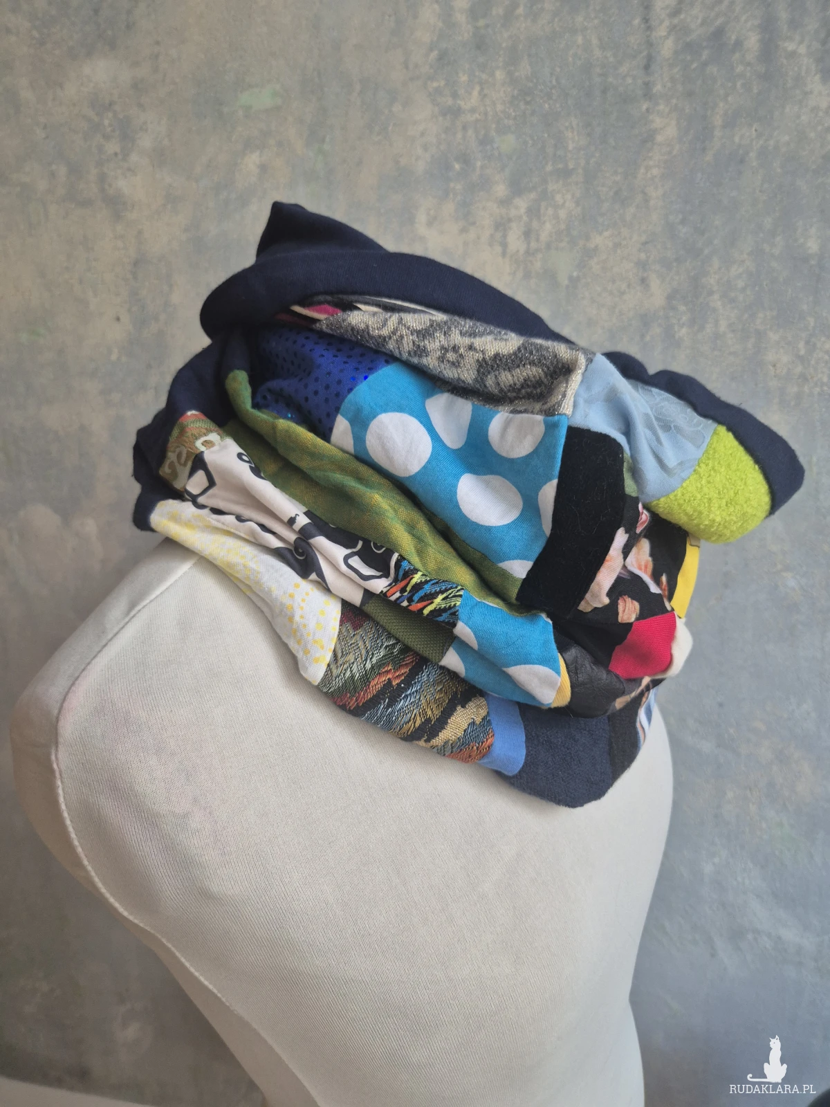 komin miękki patchworkowy kolorowy uniwersalny damski rozmiar 49cm na 47cm