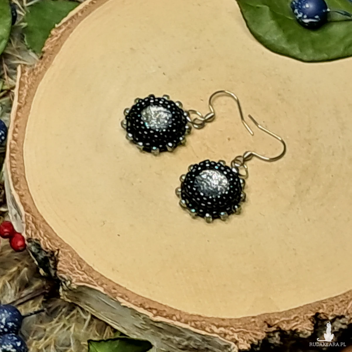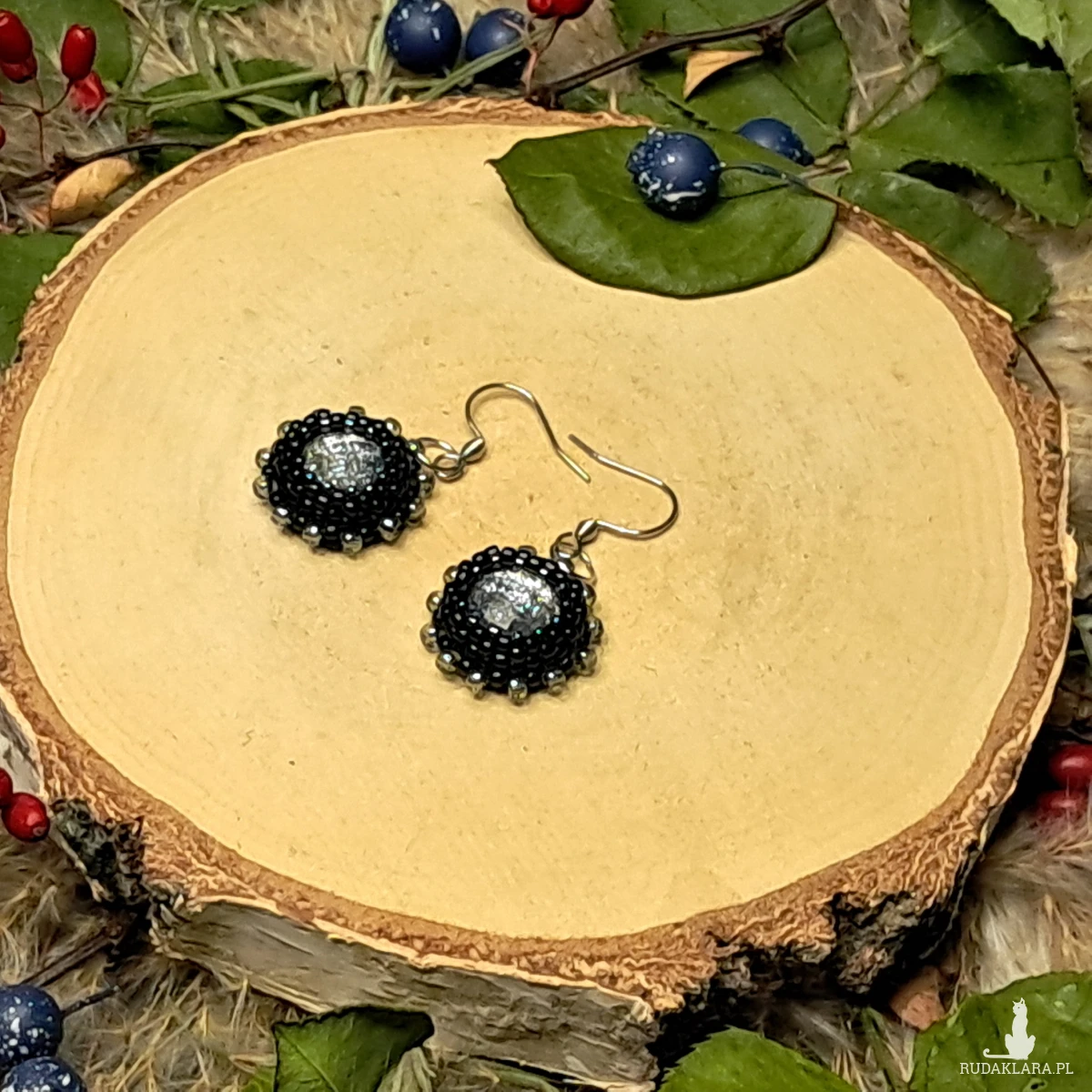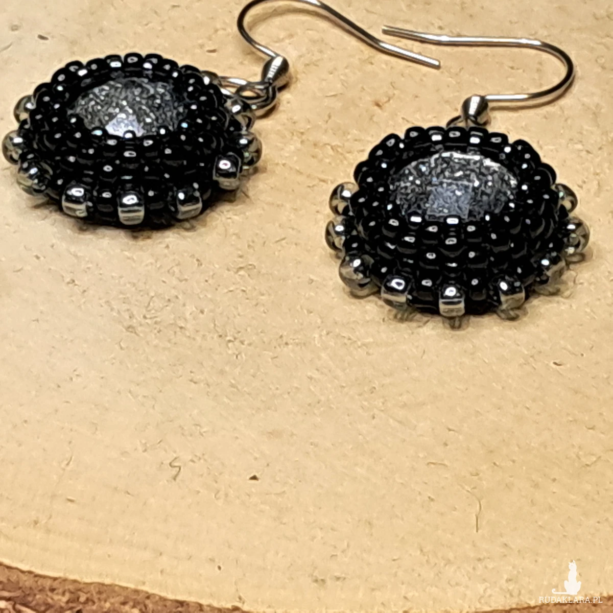 Wykonane techniką haftu koralikowego, te kolczyki mają misternie wykonany wzór, gdzie każdy koralik jest starannie ułożony, tworząc piękną teksturę i głębię. Błyszczące koraliki odbijają światło, nadając biżuterii subtelnego blasku, który doskonale komponuje się z wieczorową sukienką, dodając jej elegancji.
