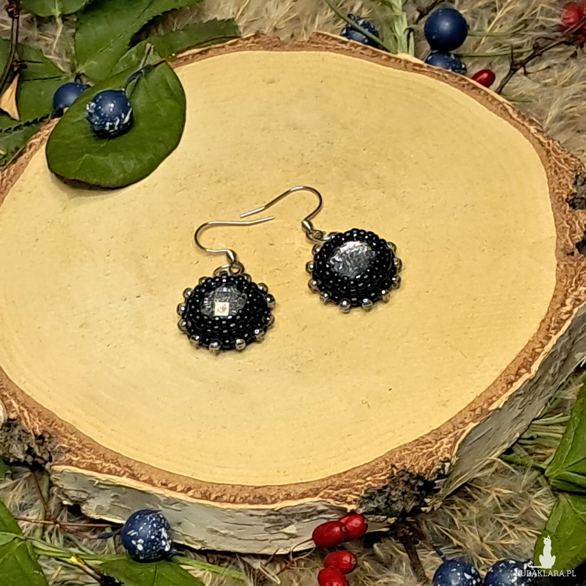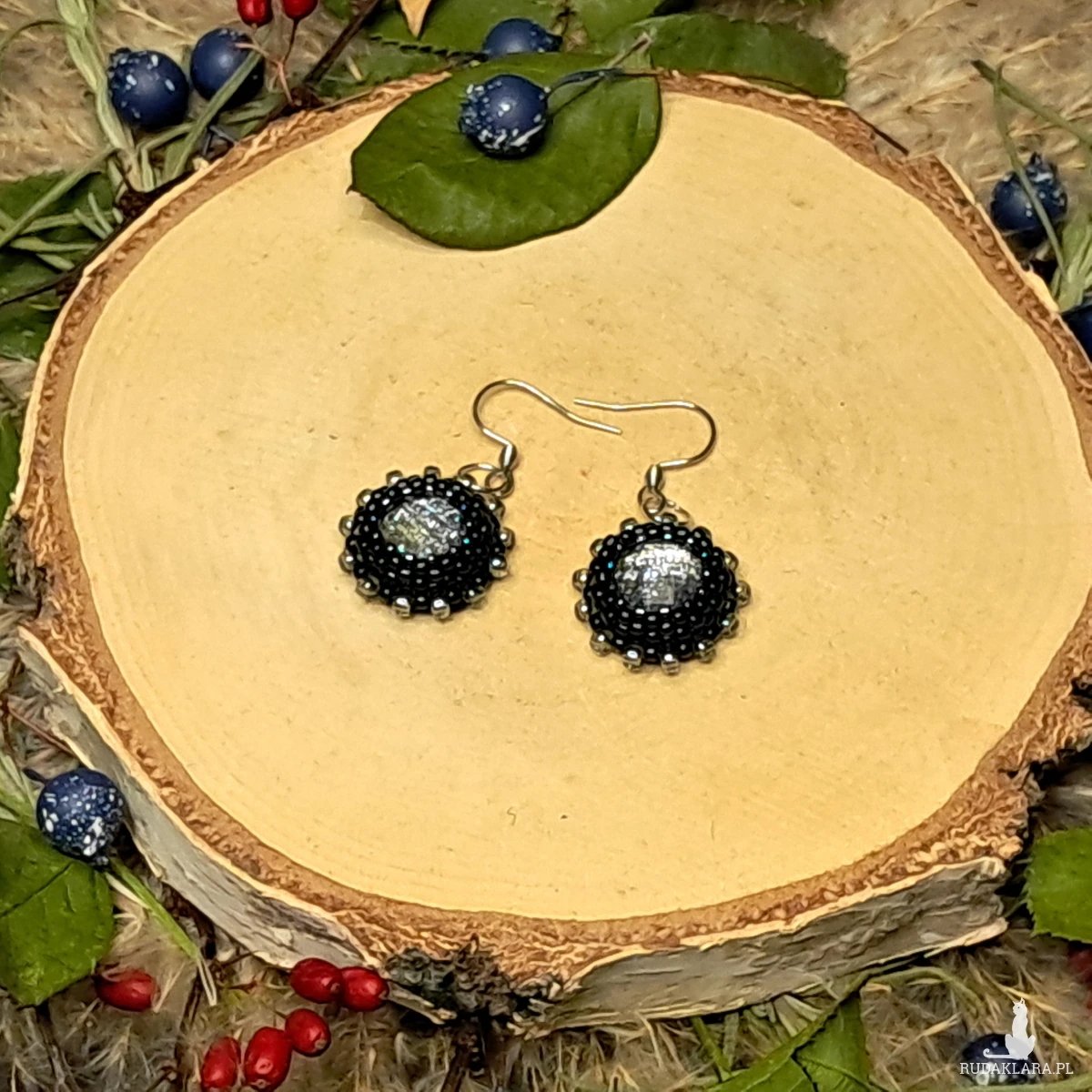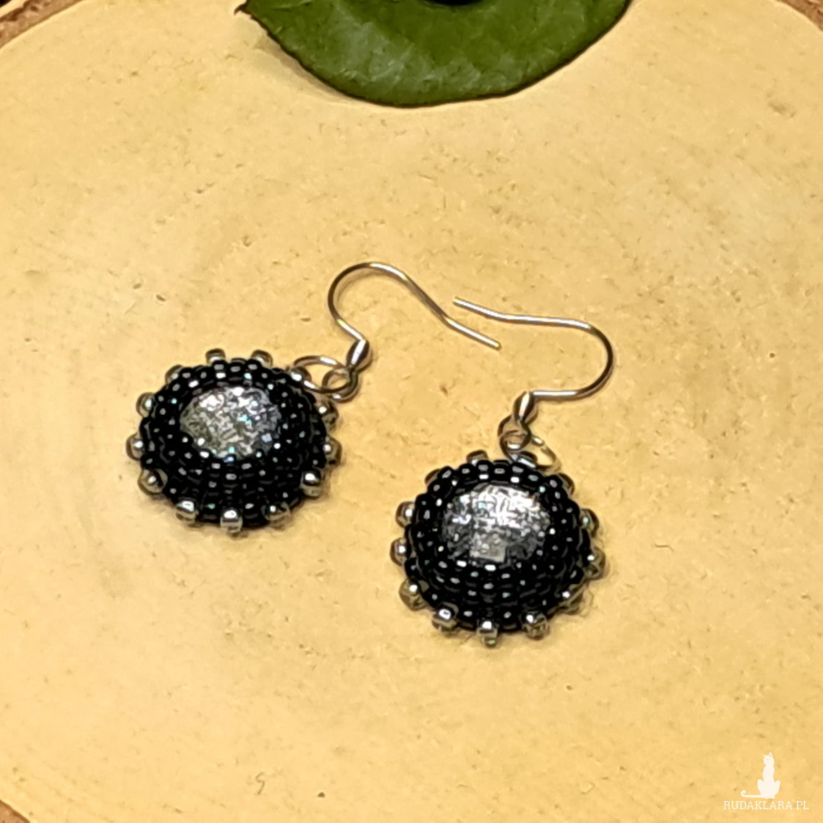 Wykonane techniką haftu koralikowego, te kolczyki mają misternie wykonany wzór, gdzie każdy koralik jest starannie ułożony, tworząc piękną teksturę i głębię. Błyszczące koraliki odbijają światło, nadając biżuterii subtelnego blasku, który doskonale komponuje się z wieczorową sukienką, dodając jej elegancji.