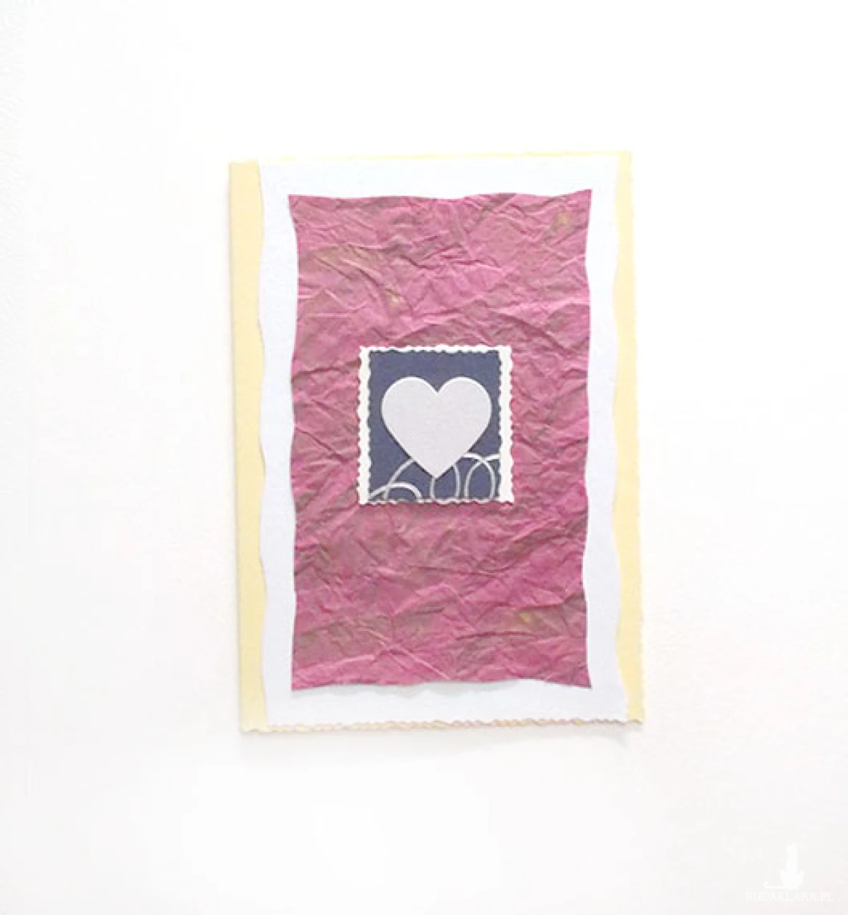 Uniwersalna, otwierana kartka okolicznościowa z serduszkiem. Karnet jest bez życzeń, bez tekstu, gruby kartonik. Dołączona biała koperta. Kartka na dowolną okazję.