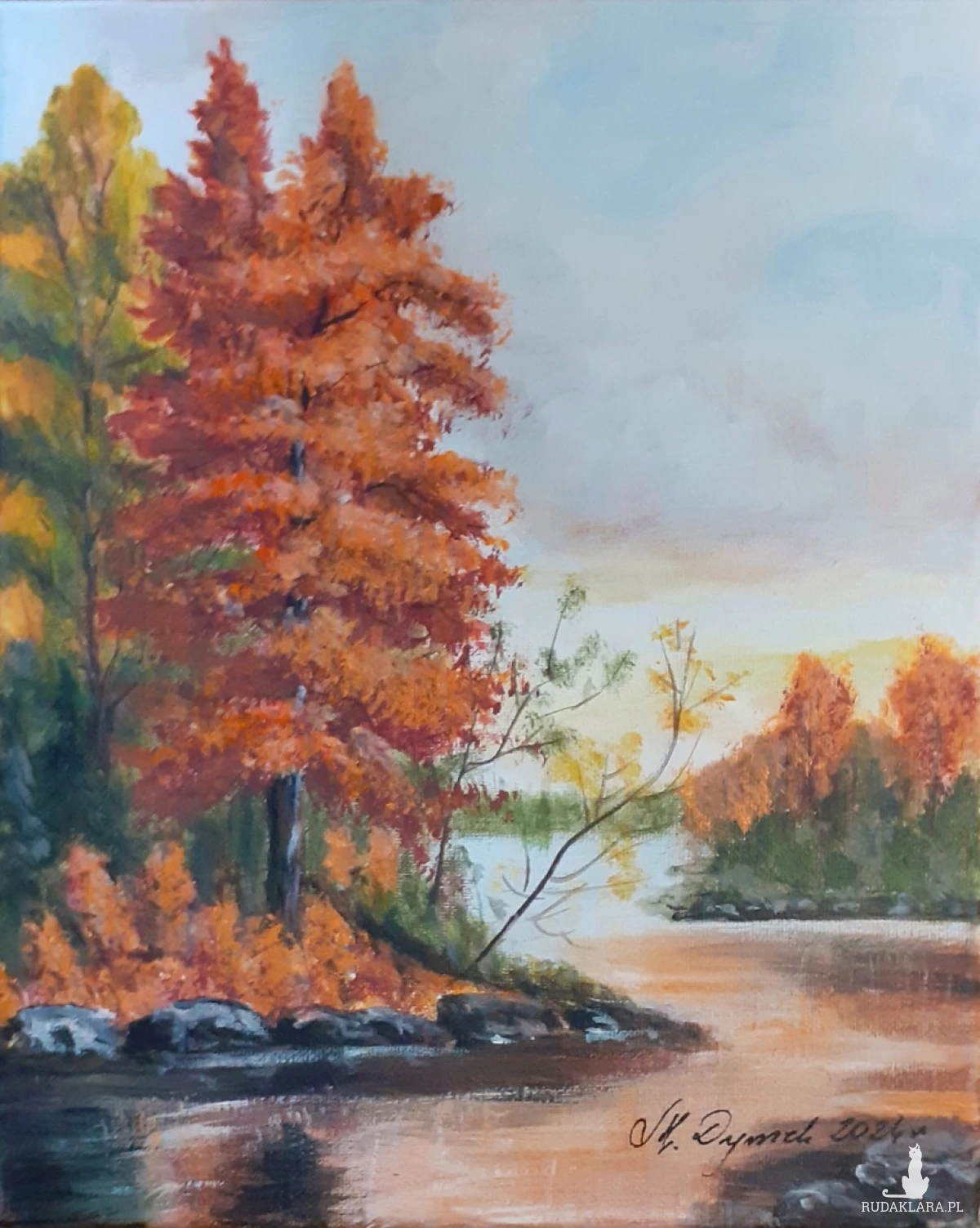 Jeden z kilkudziesięciu ręcznie malowanych obrazów, przedstawiających pejzaże, których motywem przewodnim jest piękno lasów, gór, potoków, zmieniająca się roślinność na przestrzeni dni i miesięcy. Krajobrazy tworzą serie kolorystyczne: "wiosna", "lato", "jesień", "zima".