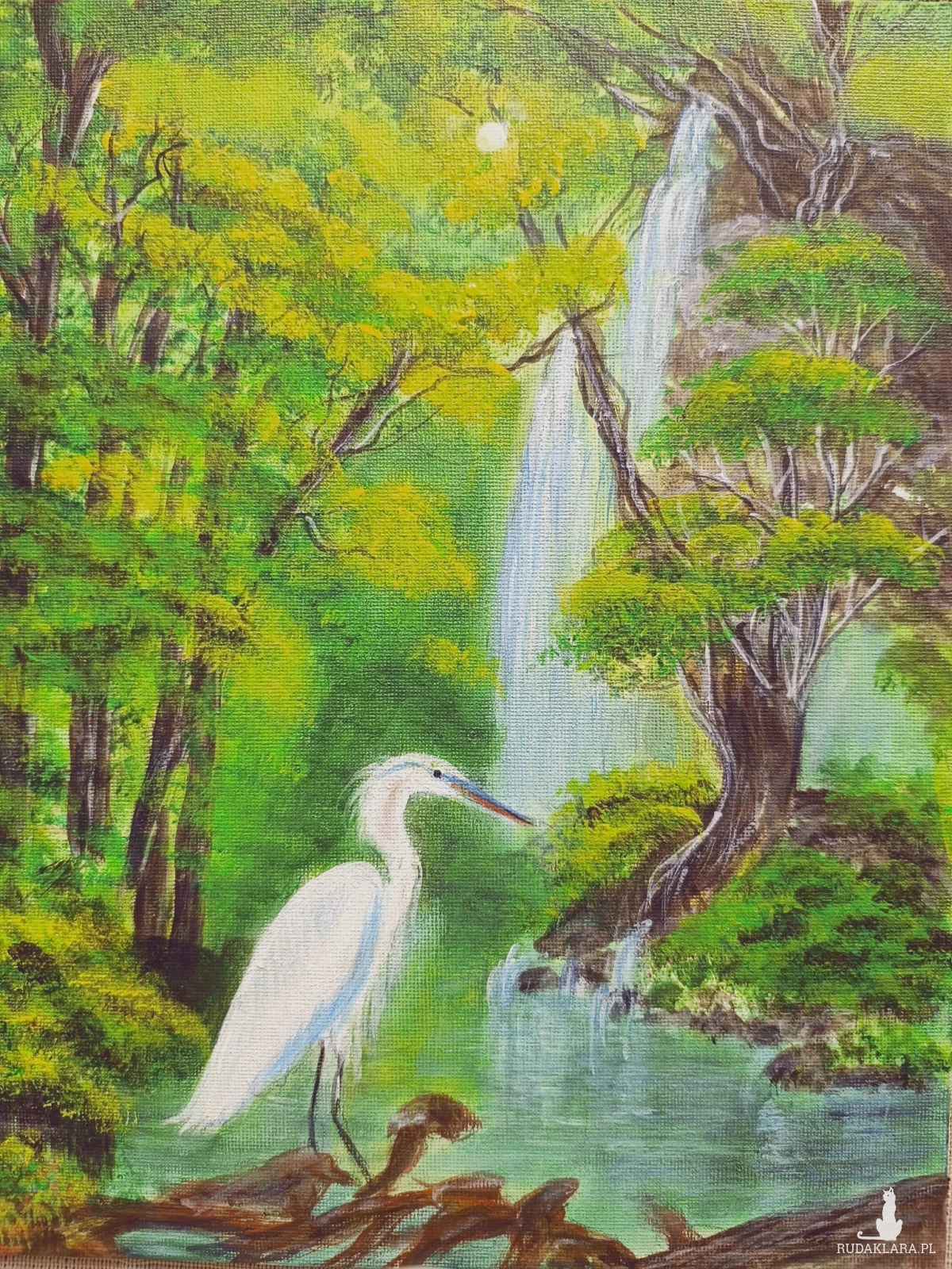 Jeden z kilkudziesięciu ręcznie malowanych obrazów, przedstawiających pejzaże, których motywem przewodnim jest piękno lasów, gór, potoków, zmieniająca się roślinność na przestrzeni dni i miesięcy. Krajobrazy tworzą serie kolorystyczne: "wiosna", "lato", "jesień", "zima".