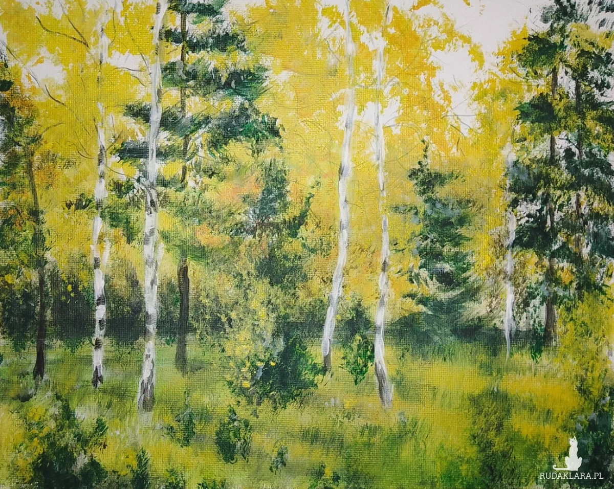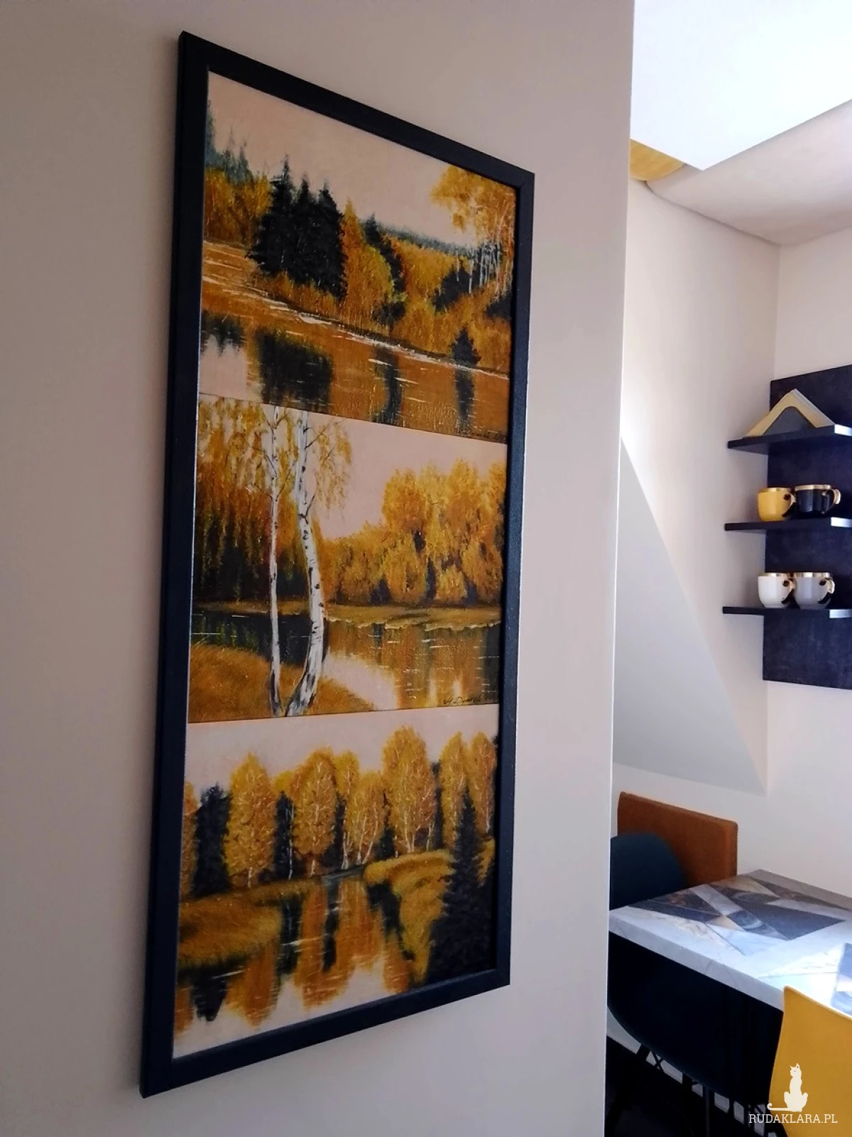 Jeden z kilkudziesięciu ręcznie malowanych obrazów, przedstawiających pejzaże, których motywem przewodnim jest piękno lasów, gór, potoków, zmieniająca się roślinność na przestrzeni dni i miesięcy. Krajobrazy tworzą serie kolorystyczne: "wiosna", "lato", "jesień", "zima".