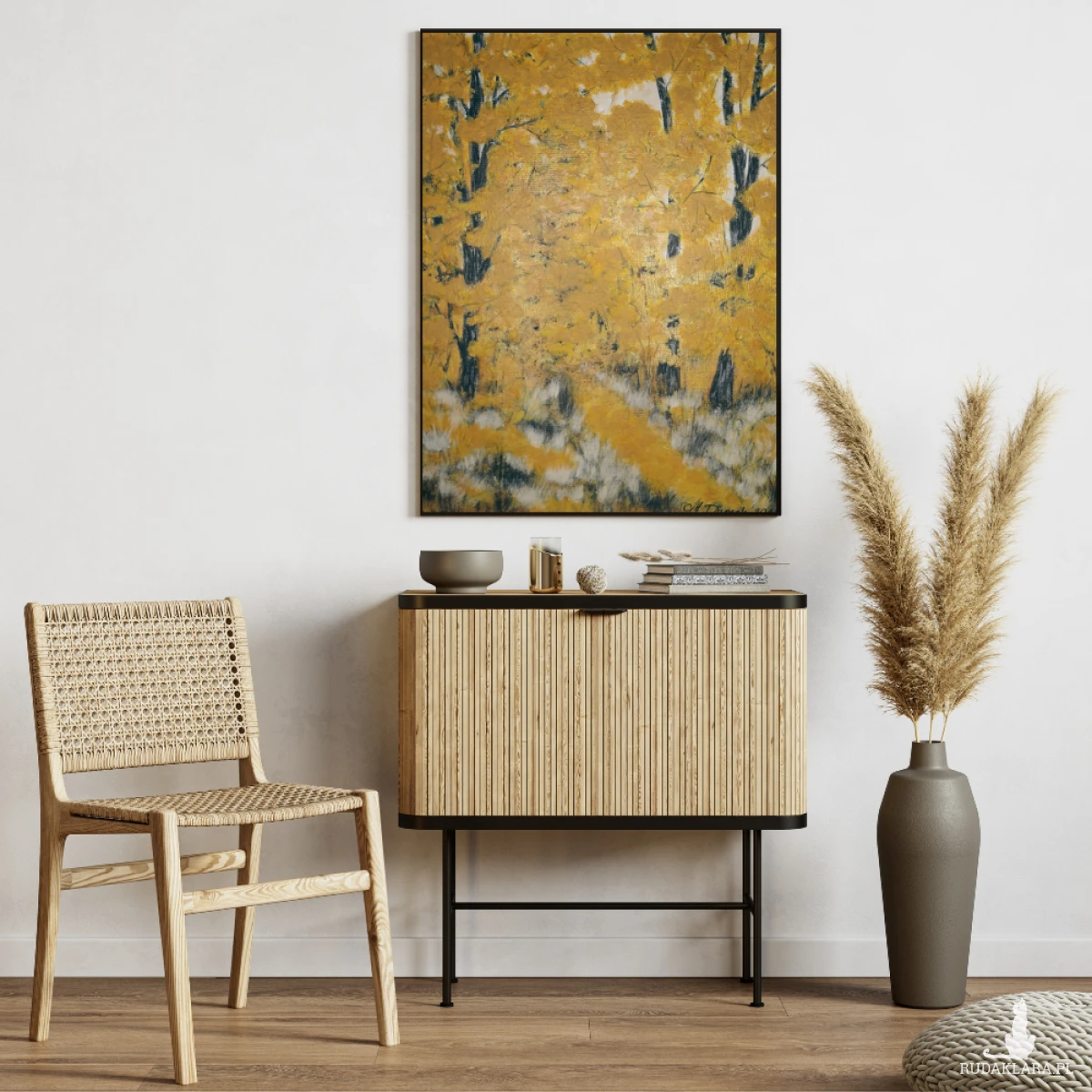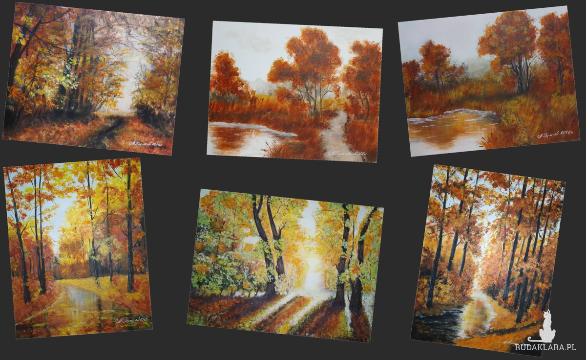 Jeden z kilkudziesięciu ręcznie malowanych obrazów, przedstawiających pejzaże, których motywem przewodnim jest piękno lasów, gór, potoków, zmieniająca się roślinność na przestrzeni dni i miesięcy. Krajobrazy tworzą serie kolorystyczne: "wiosna", "lato", "jesień", "zima".
