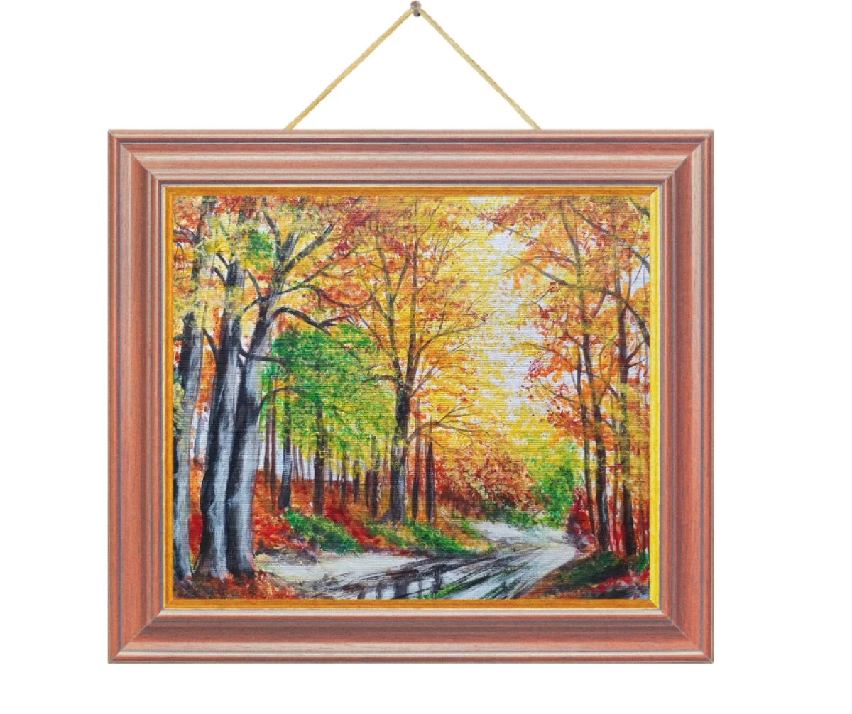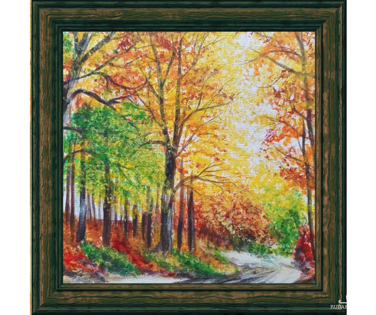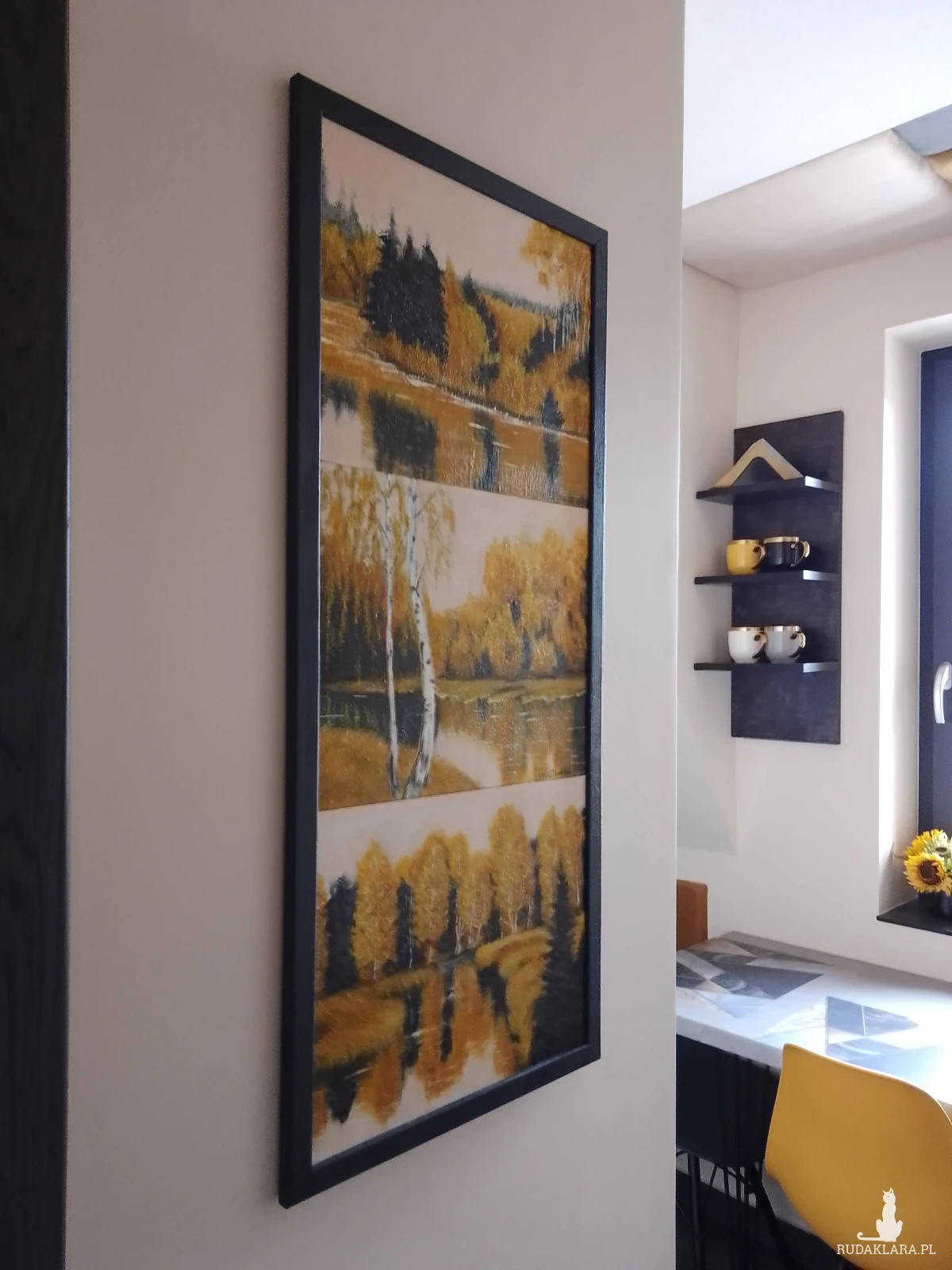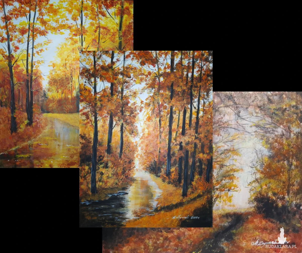 Jeden z kilkudziesięciu ręcznie malowanych obrazów, przedstawiających pejzaże, których motywem przewodnim jest piękno lasów, gór, potoków, zmieniająca się roślinność na przestrzeni dni i miesięcy. Krajobrazy tworzą serie kolorystyczne: "wiosna", "lato", "jesień", "zima".