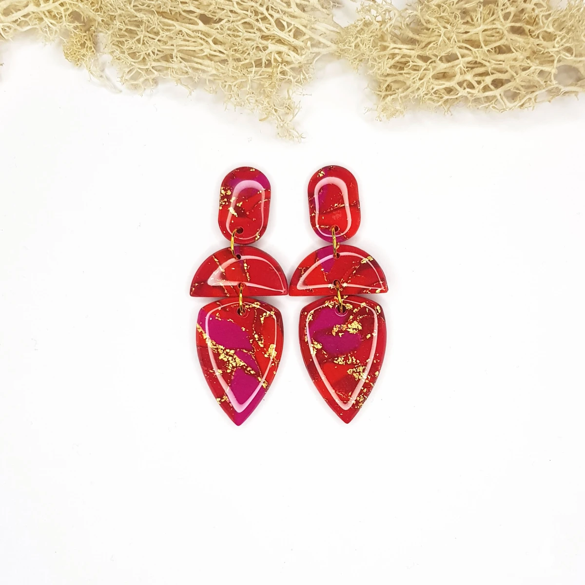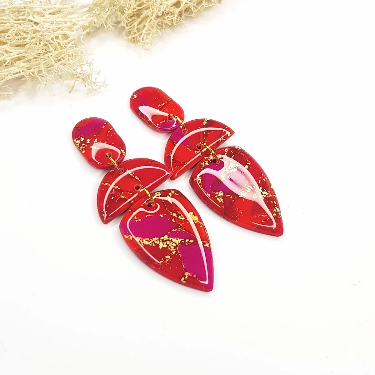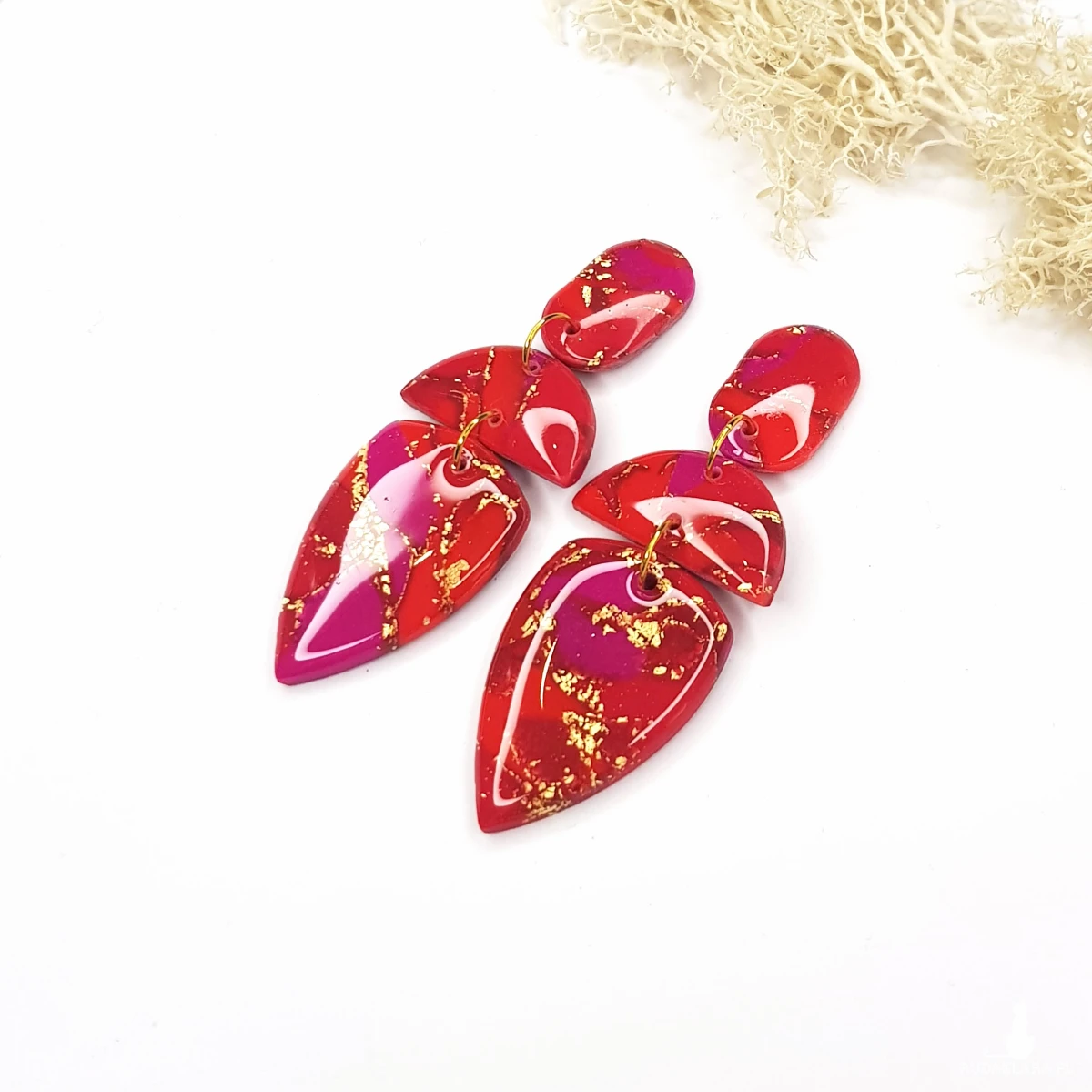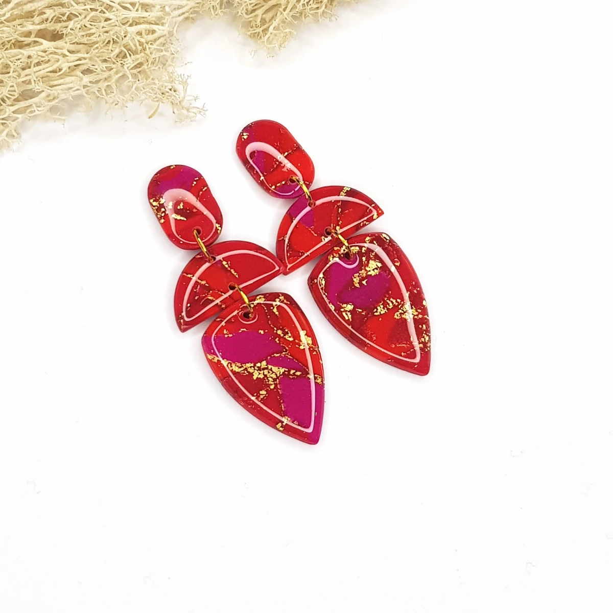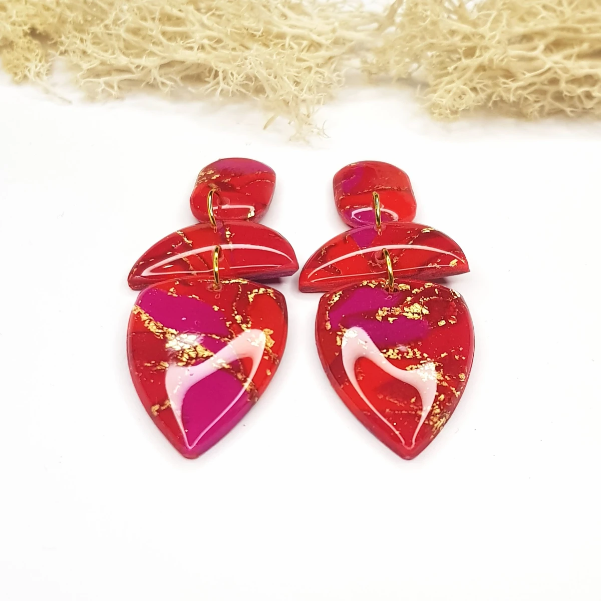 Rozpal swój styl intensywną energią czerwieni i magią złotych refleksów! Te hipnotyzujące kolczyki, inspirowane siłą płomieni i pasją serca, zostały stworzone ręcznie z połączenia gliny polimerowej i żywicy, co nadaje im wyjątkowy blask i głębię kolorów. Każdy egzemplarz jest unikatowy – subtelne różnice w układzie wzorów i złotych akcentów sprawiają, że nie ma dwóch identycznych par. Dzięki wklejonym sztyftom ze stali chirurgicznej są idealne nawet dla wrażliwych uszu, a ich lekka konstrukcja zapewnia komfort noszenia przez cały dzień. Dodaj ognia do swoich stylizacji i pozwól, by „Płomienna Tajemnica” stała się Twoim ulubionym dodatkiem! 🔥❤️