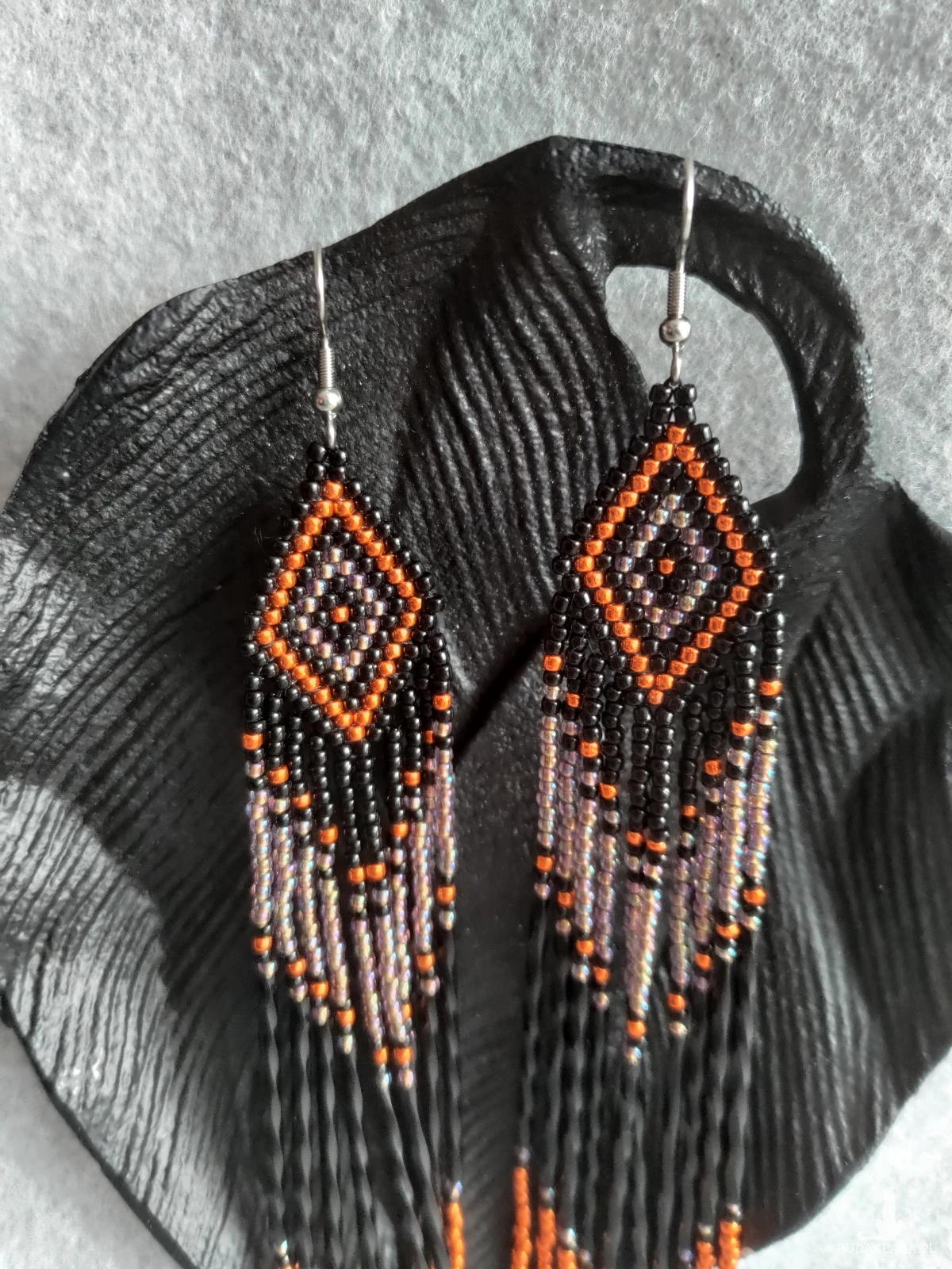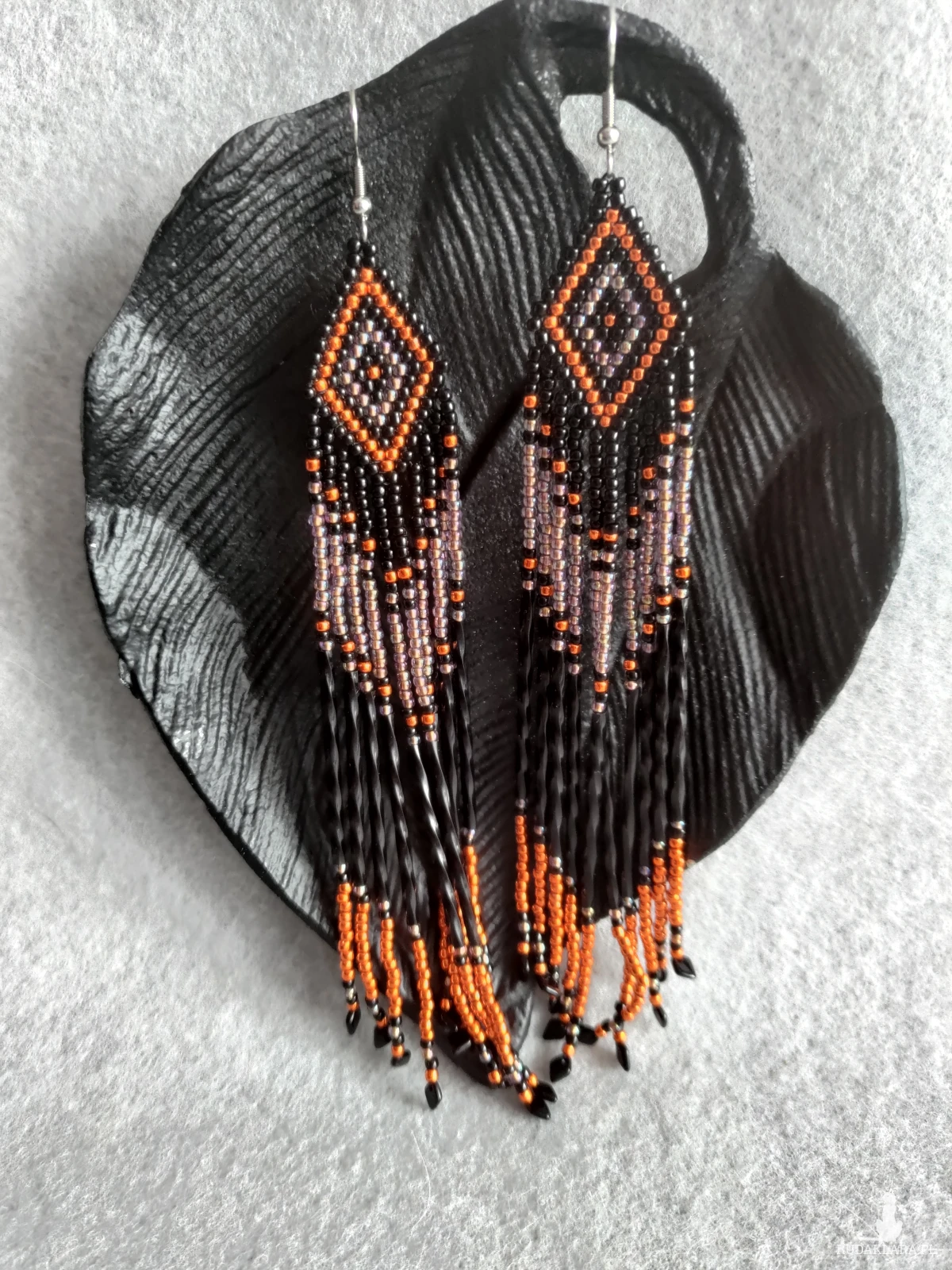 Kolczyki wykonane są z japońskich koralików toho techniką beadingu. Koraliki pięknie błyszczą w słońcu. Kolczyki zawieszone są na otwartych biglach ze stali chirurgicznej.