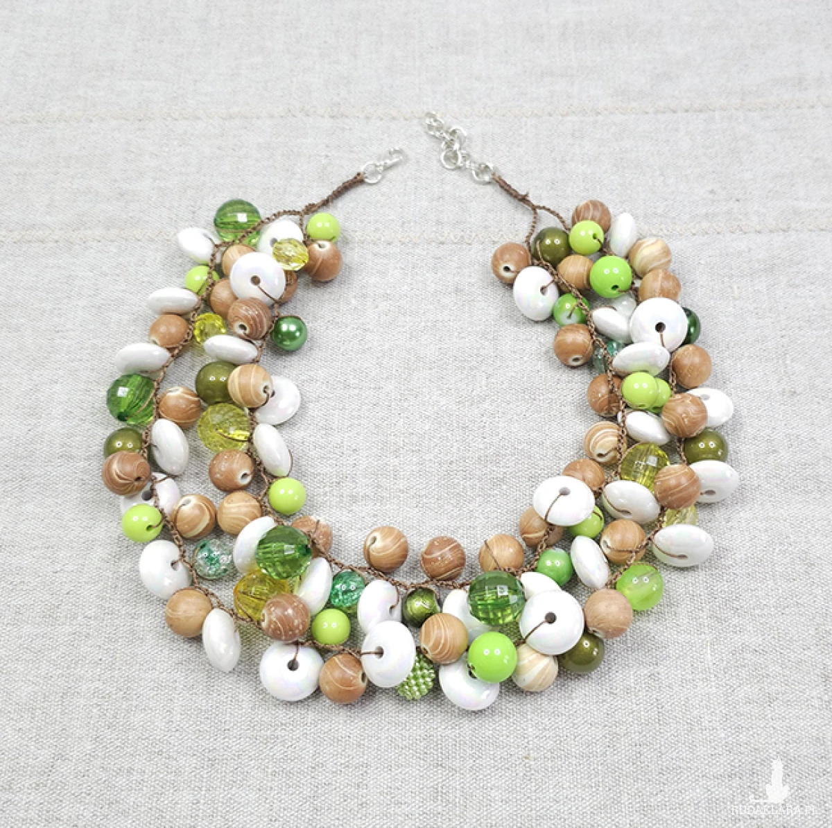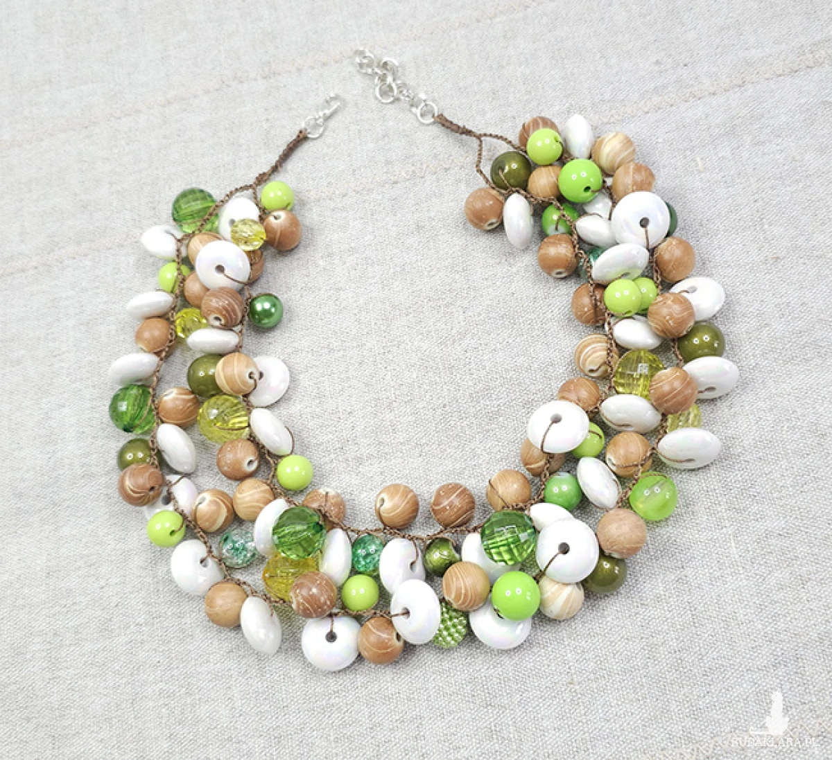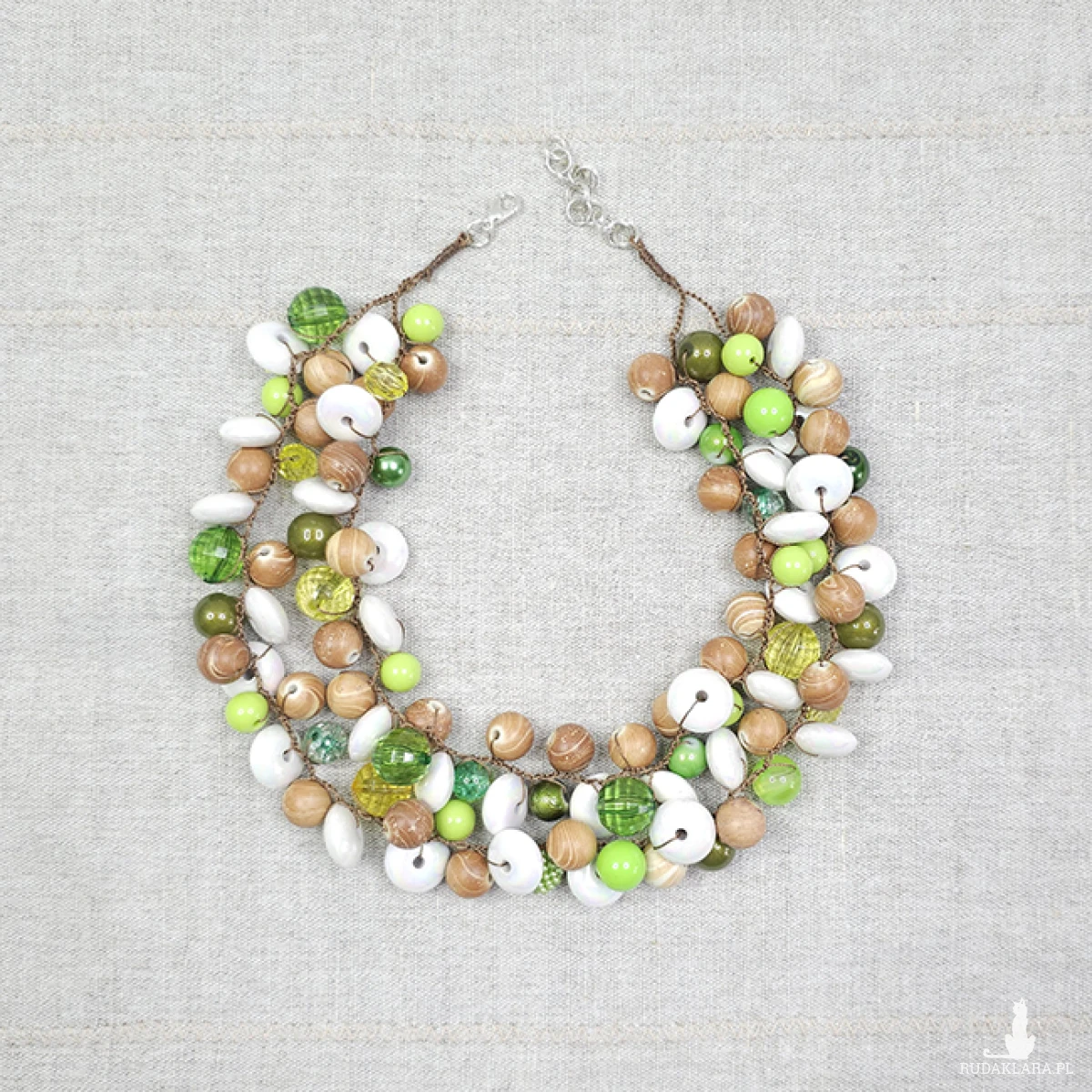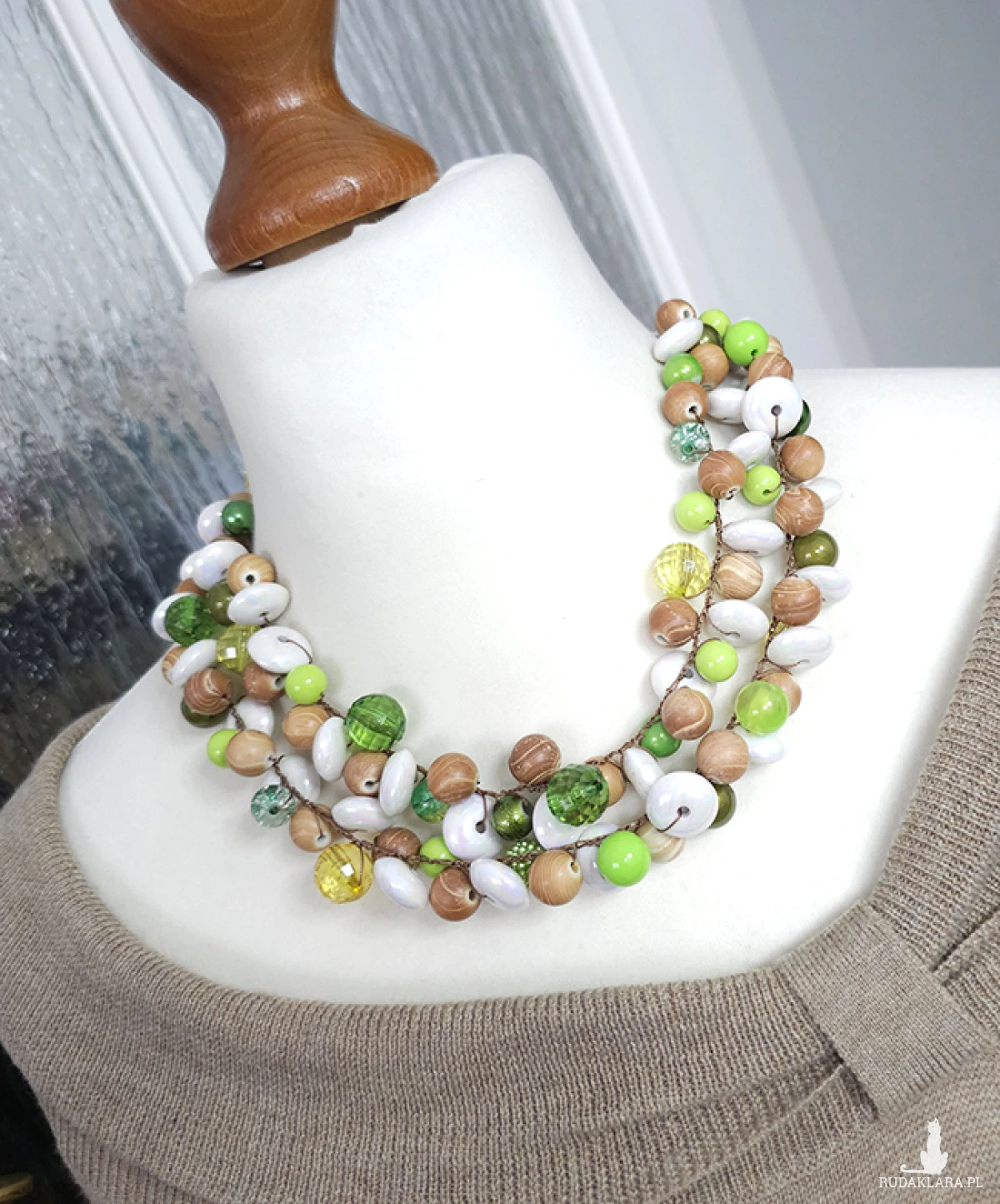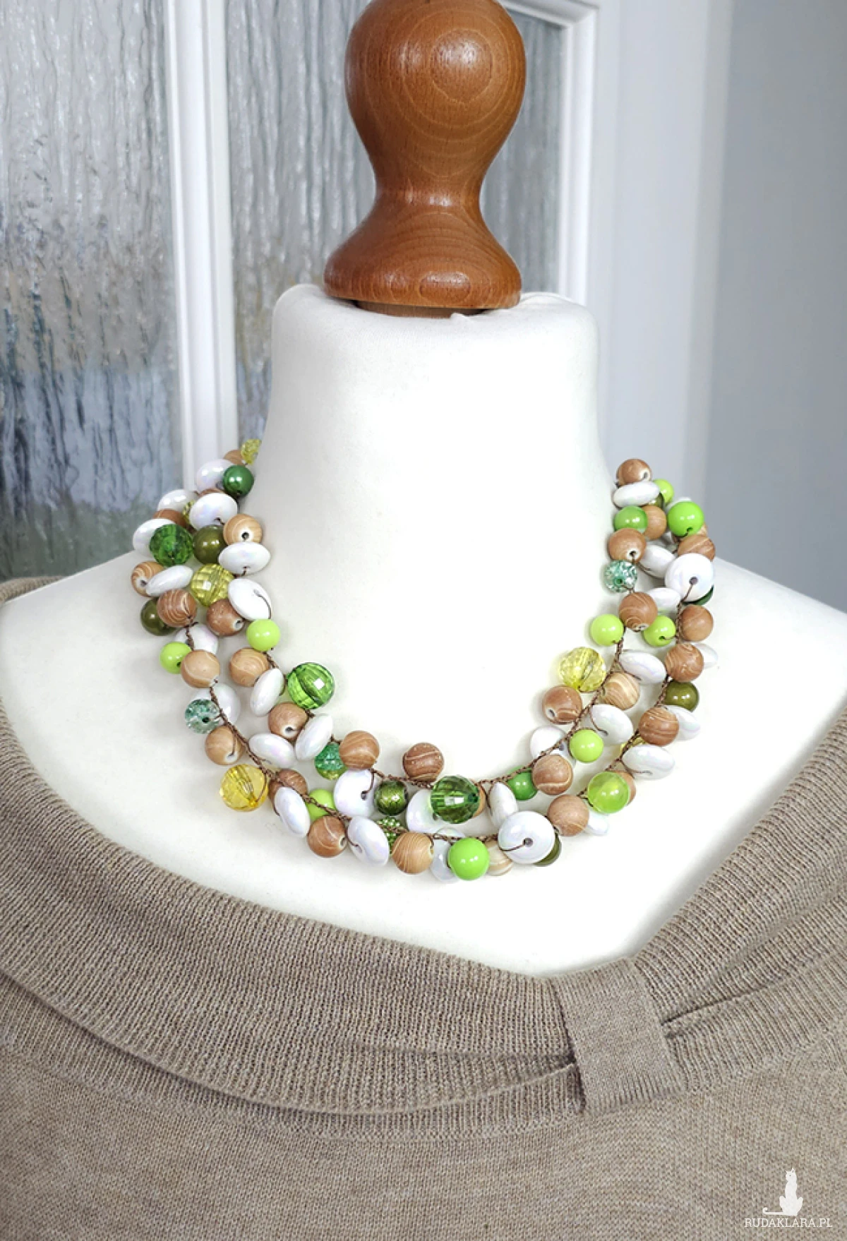 6332 beżowy, zielony, biały naszyjnik; kolia