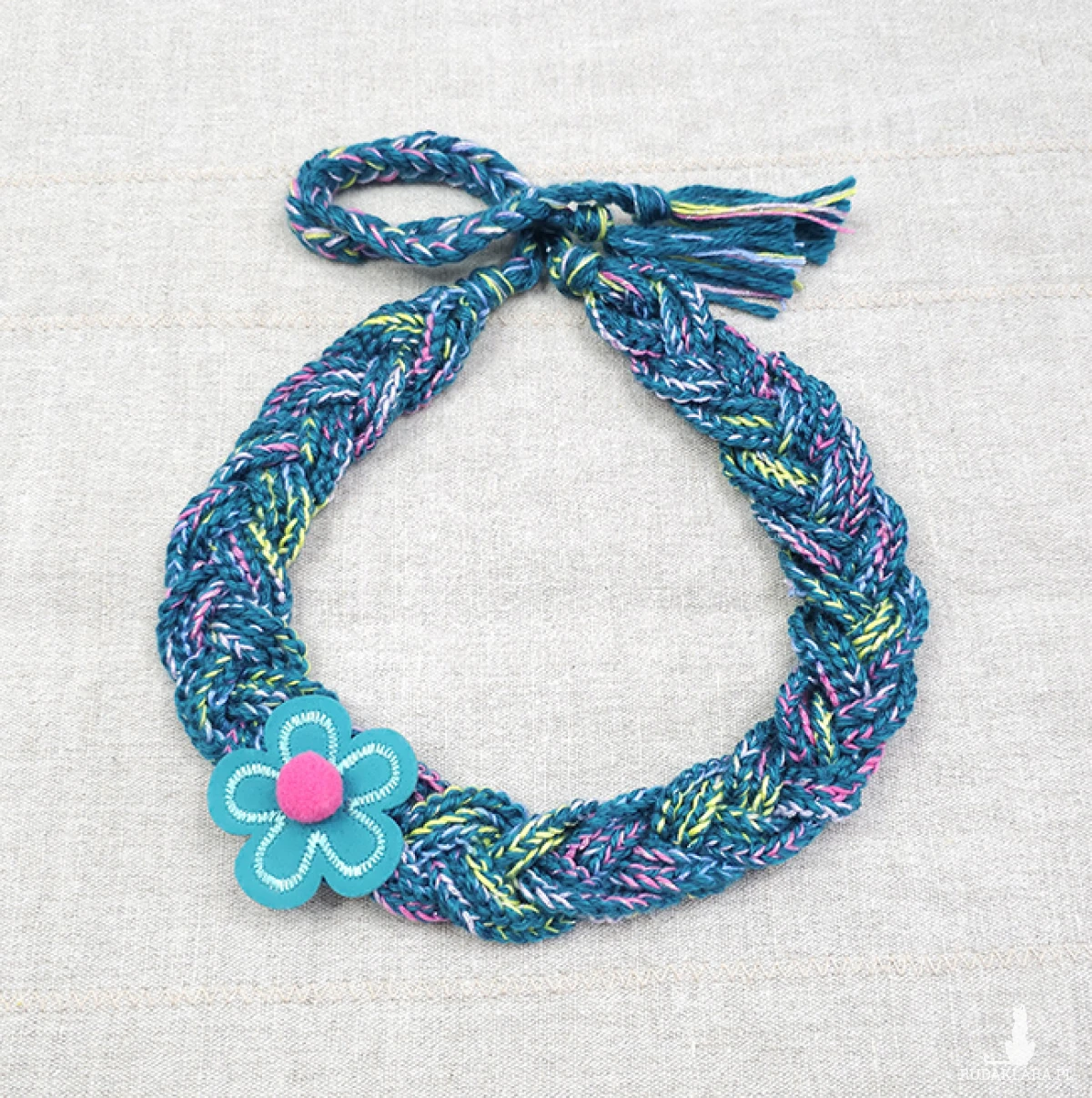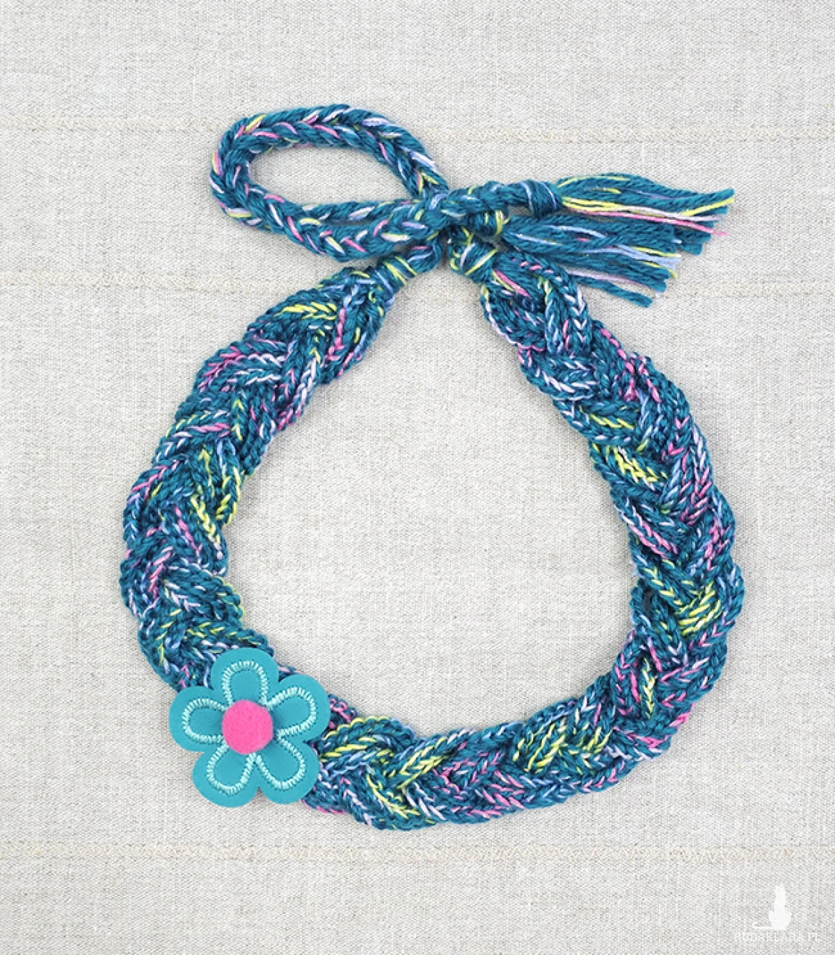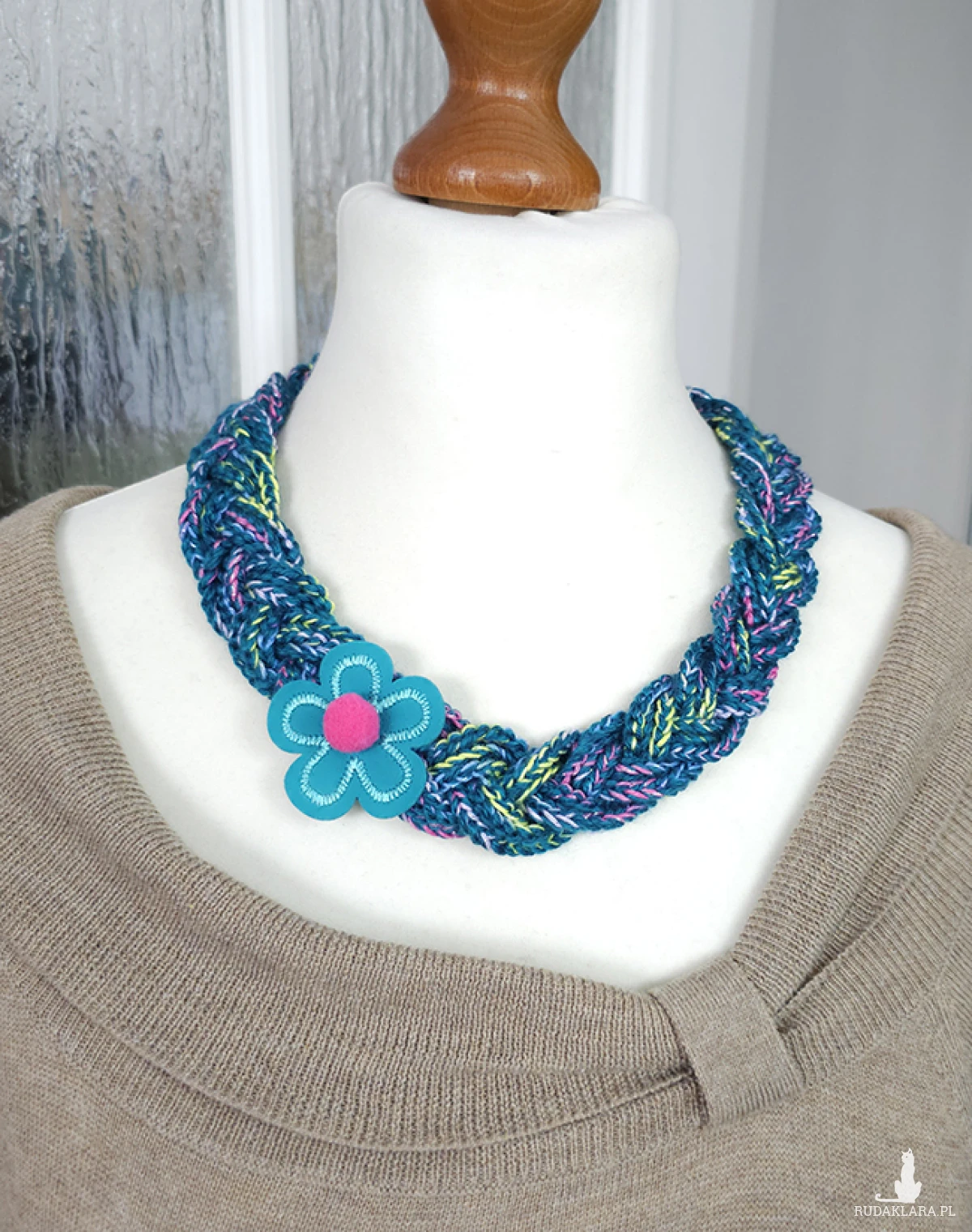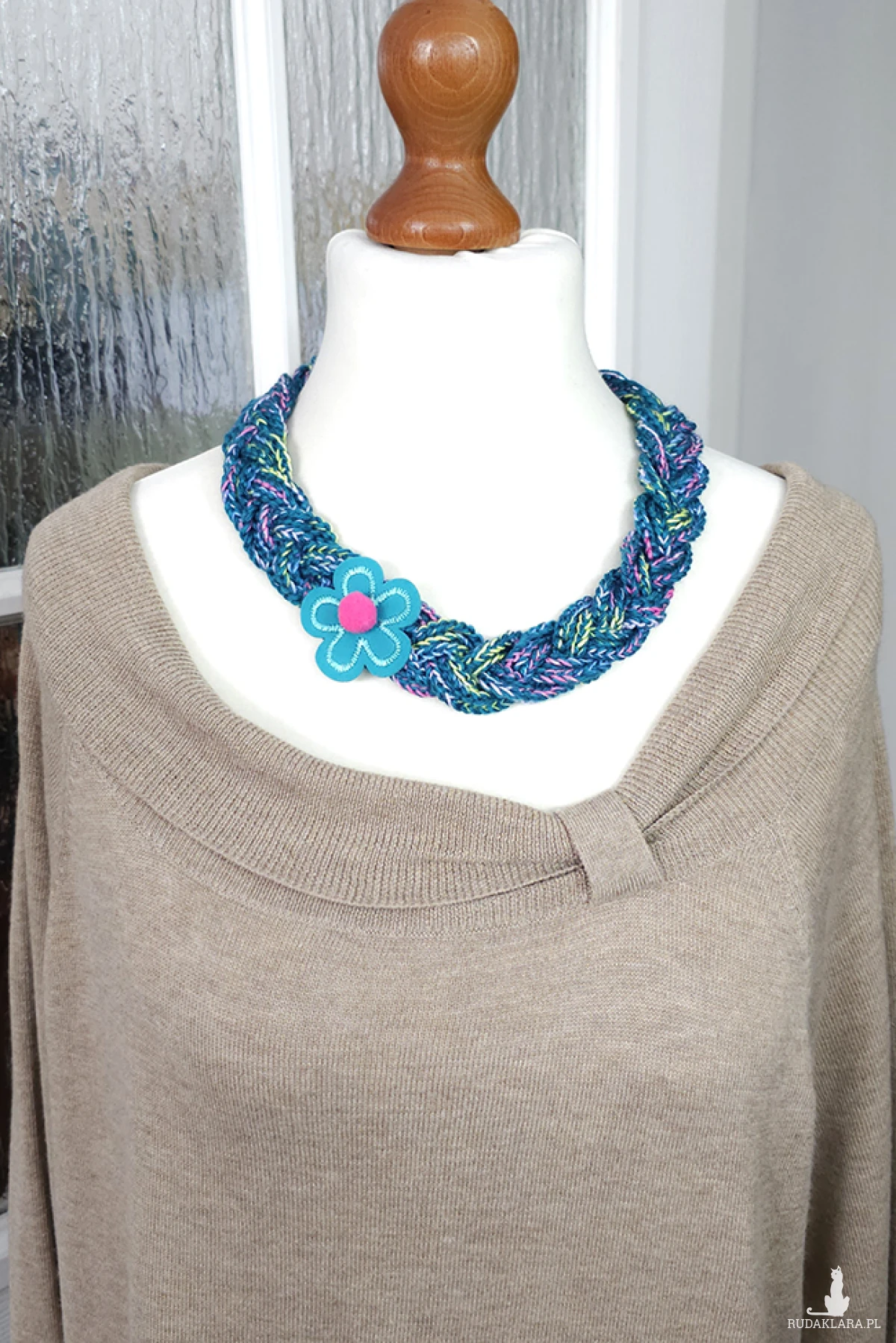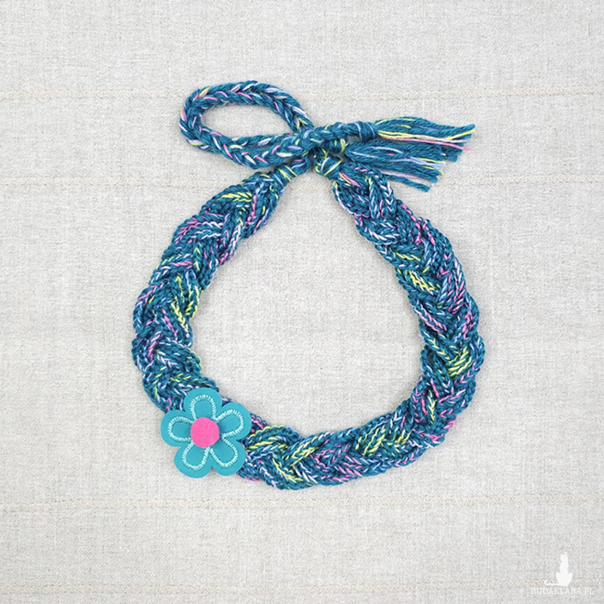 6526 kolorowy naszyjnik - warkocz z kwiatkiem