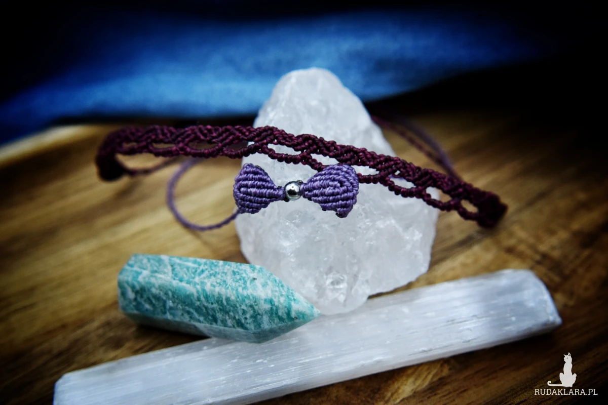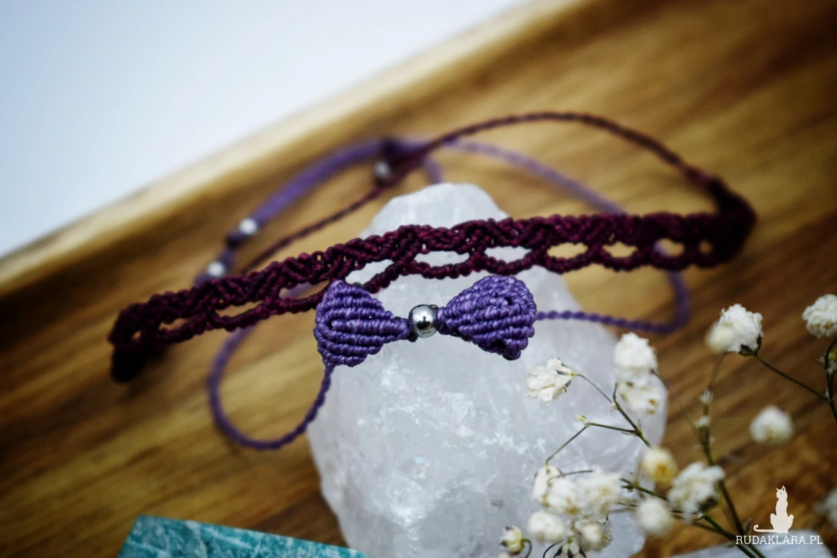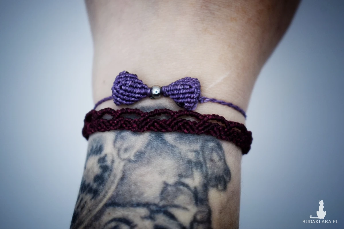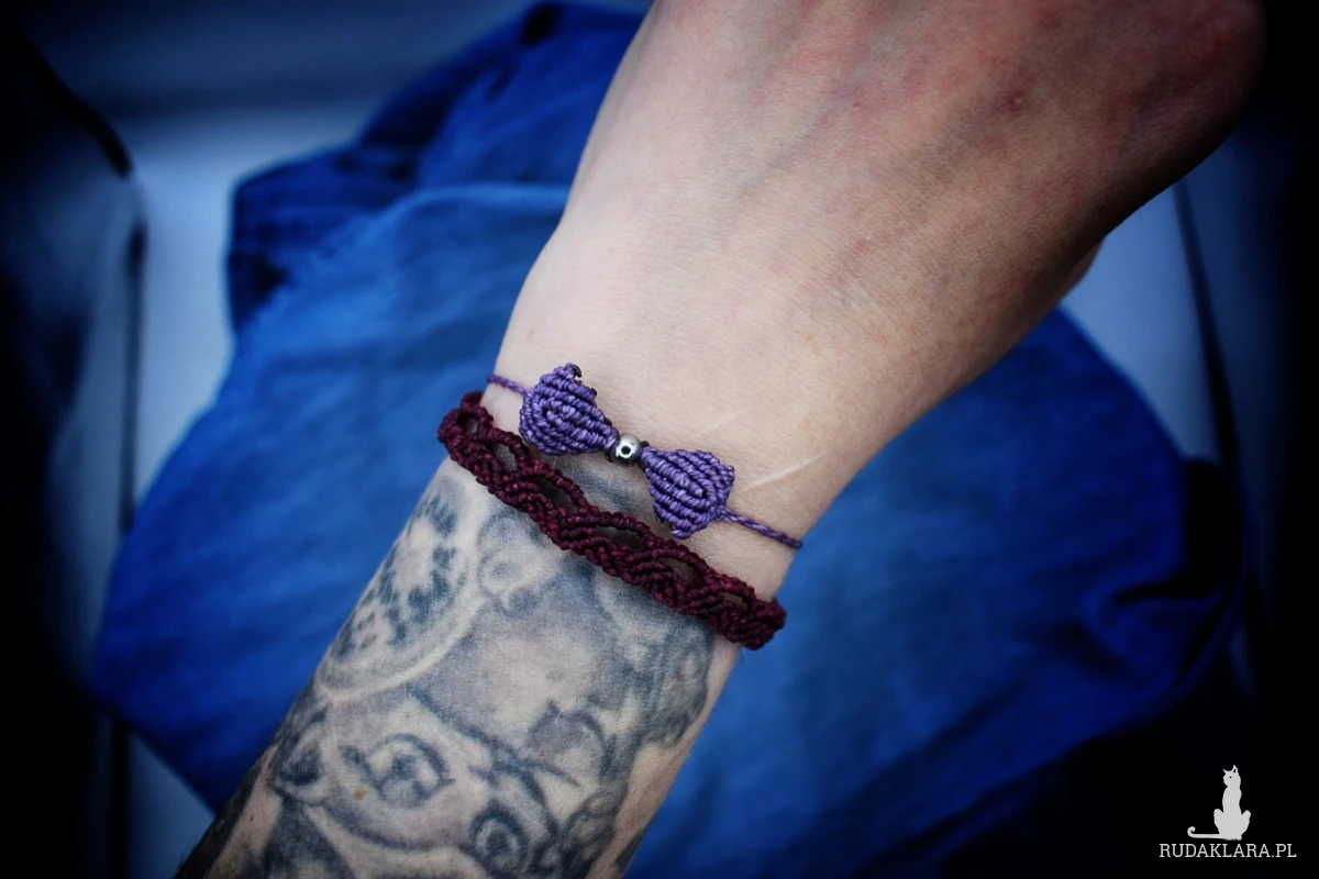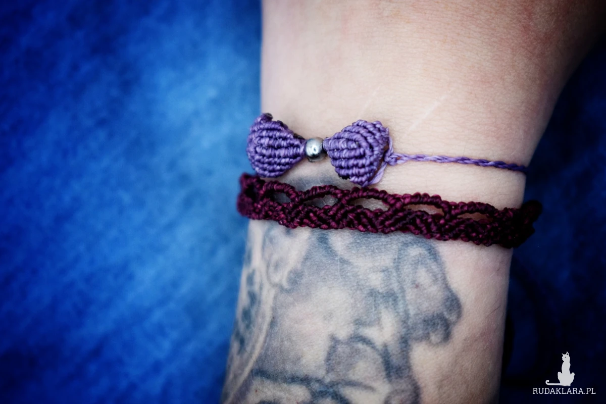 Zestaw bransoletek wykonany techniką mikro makramy.