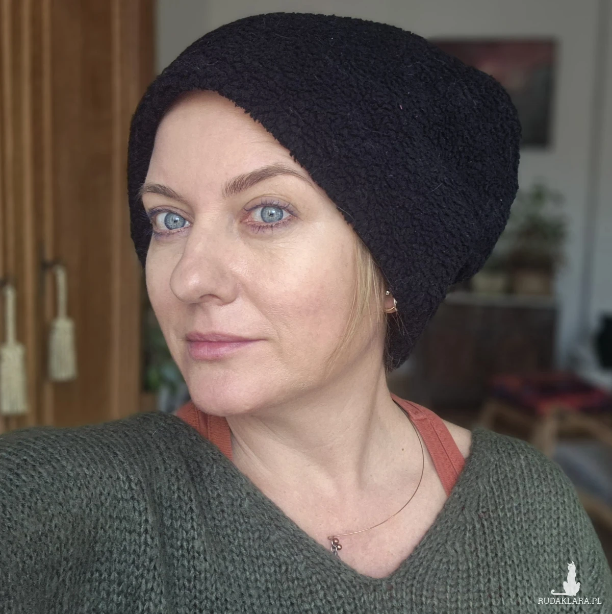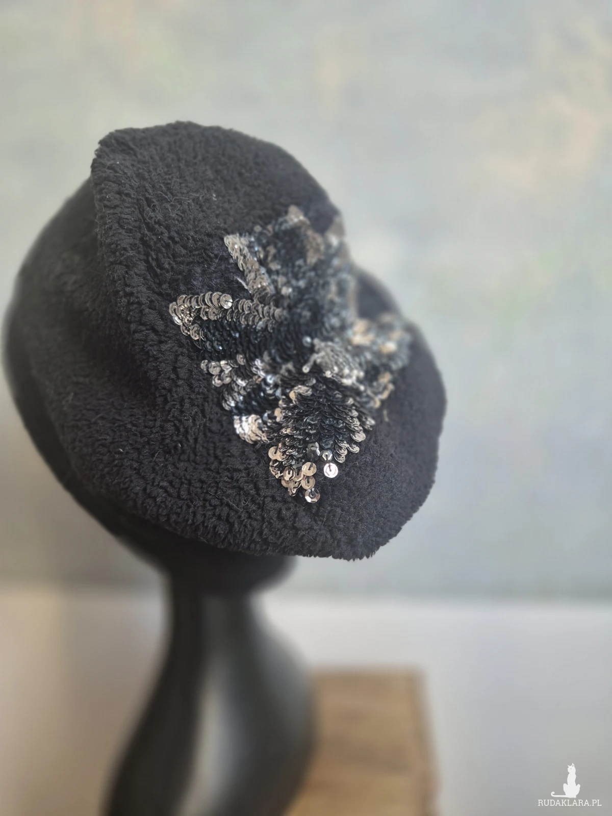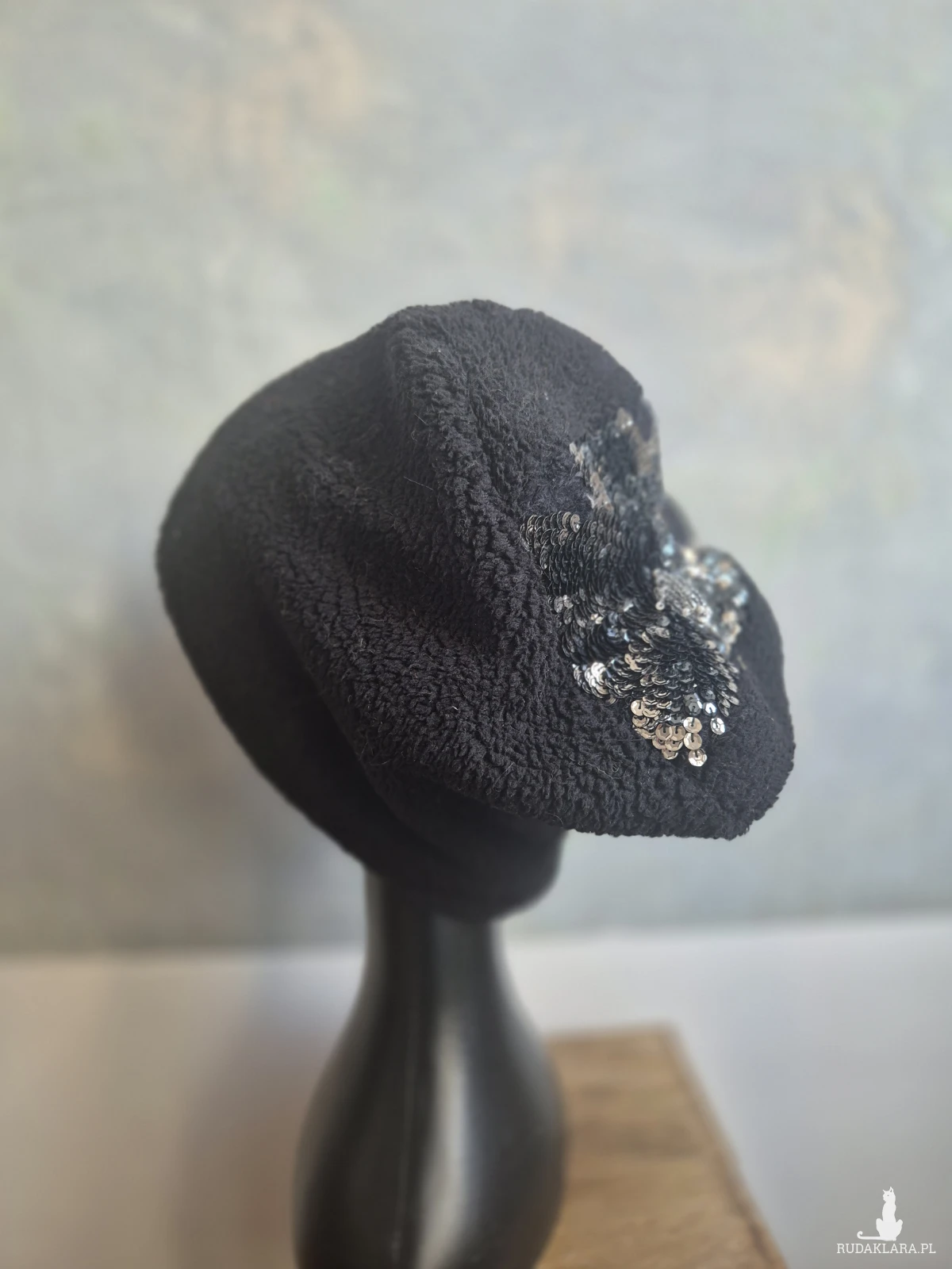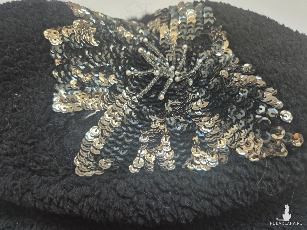 Czapka boho czarna na podszewce duża rozmiar 59 60 cm można spokojnie ukryć pod nią bujne włosy góra koralikowa ciepła czapka polecam e1