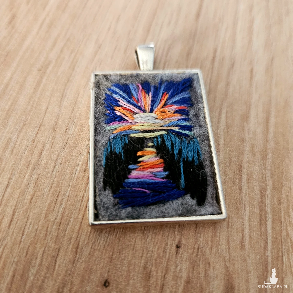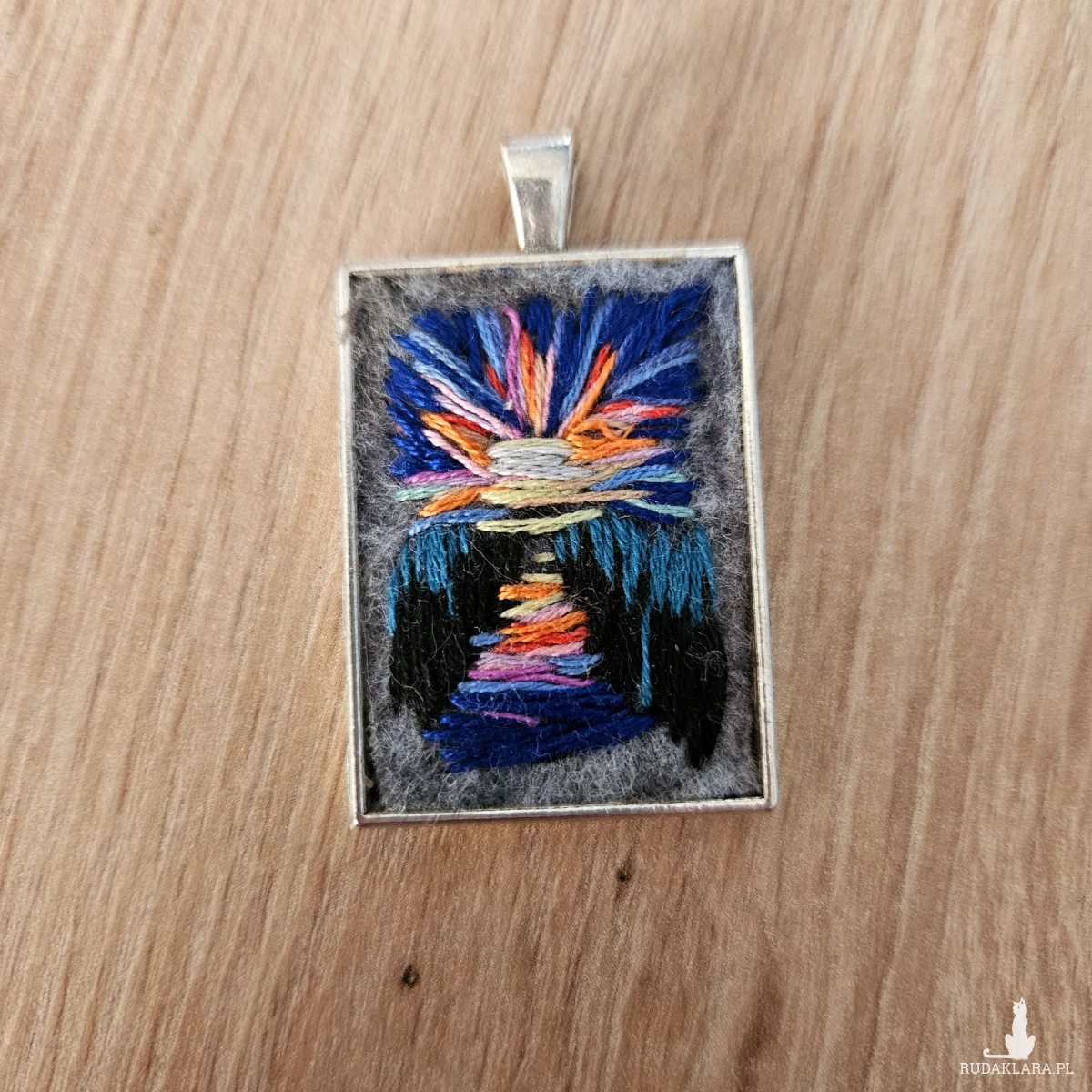 Recznie haftowany wisior zachód słońca nad jeziorem