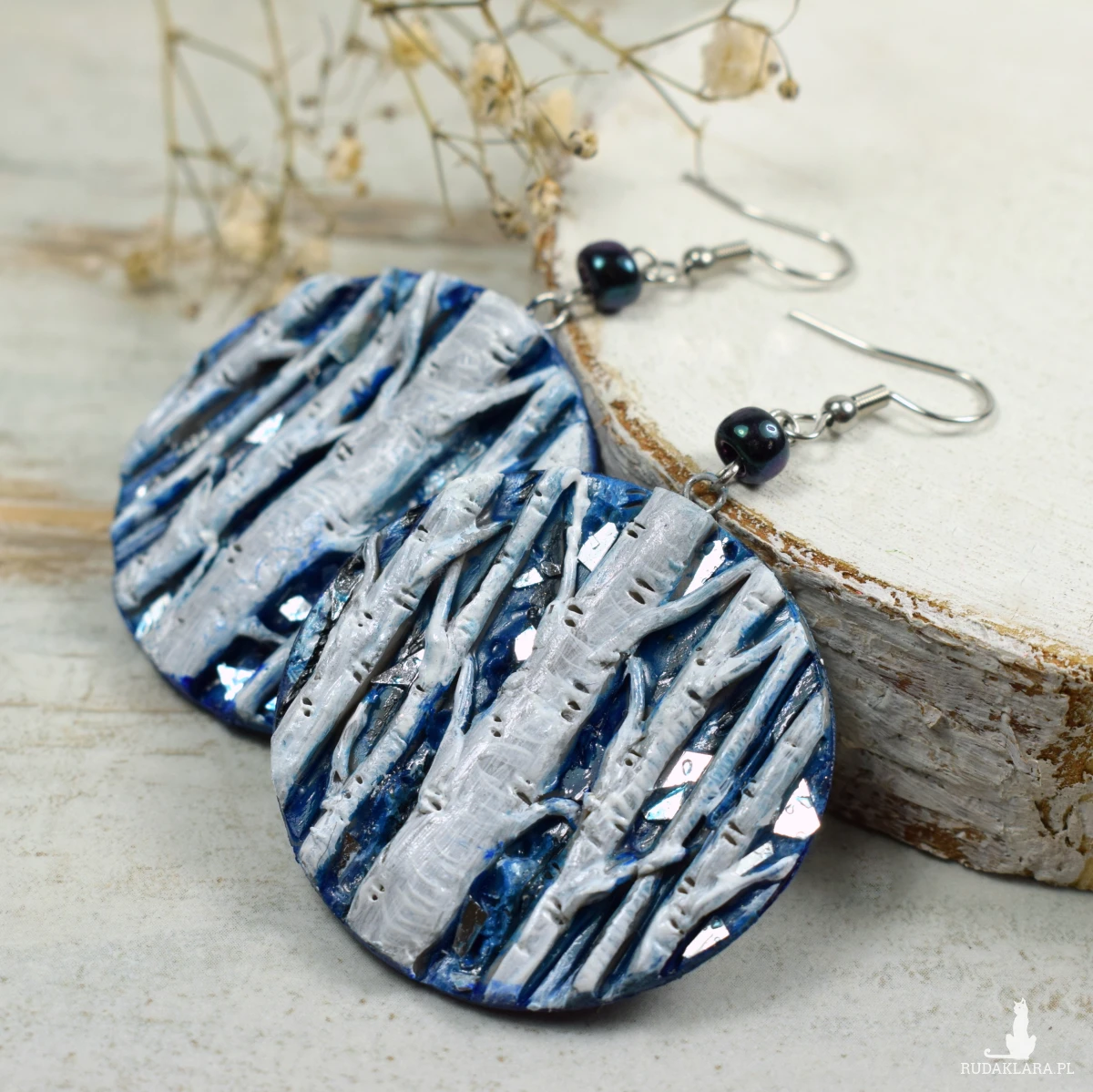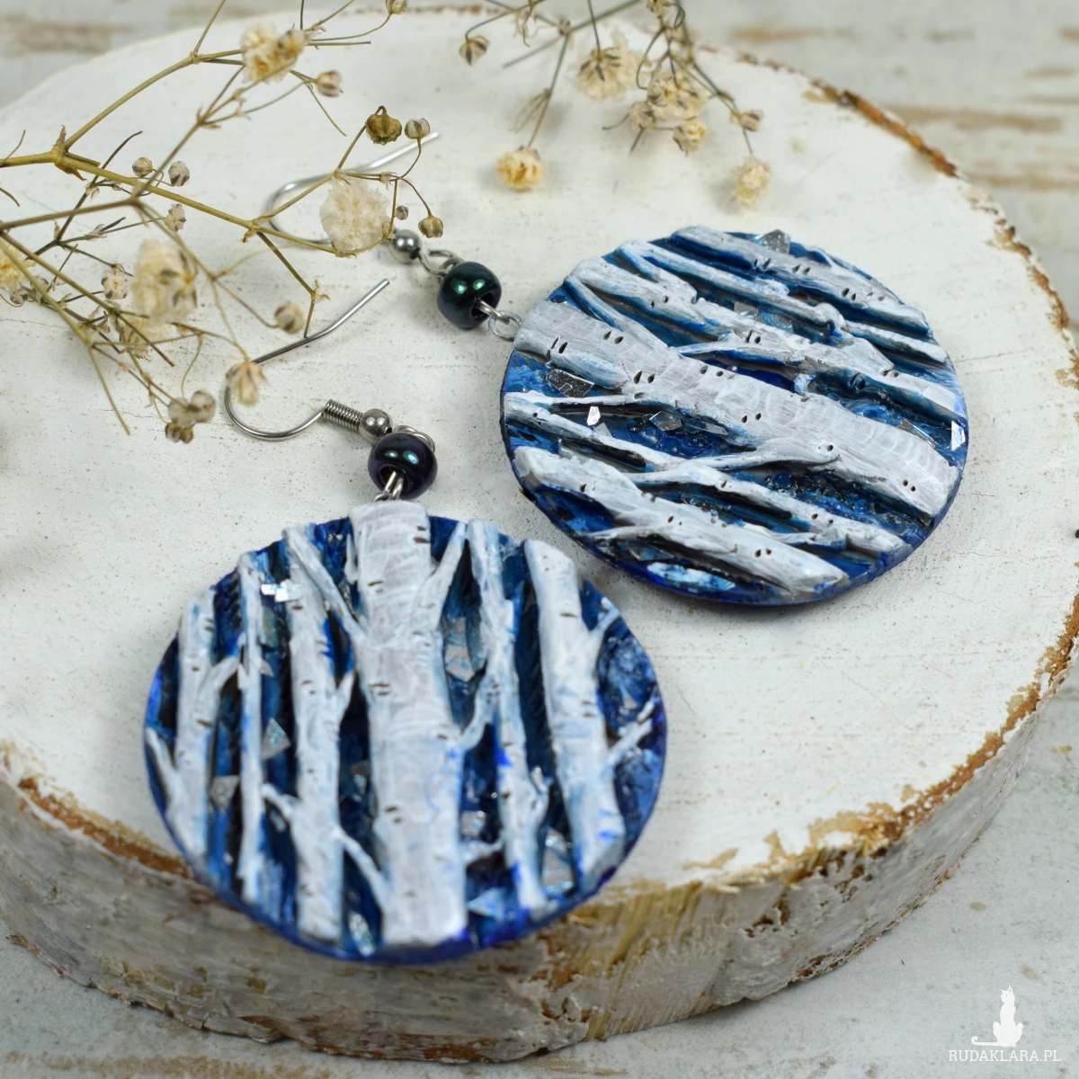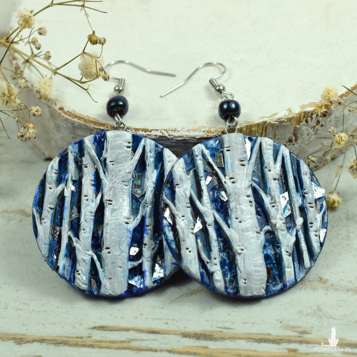Unikatowe, przyciągające uwagę, kolczyki sztyfty z motywem brzóz w