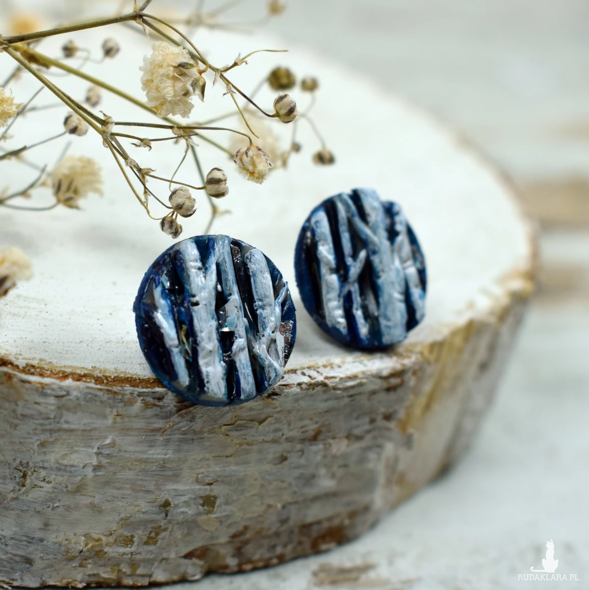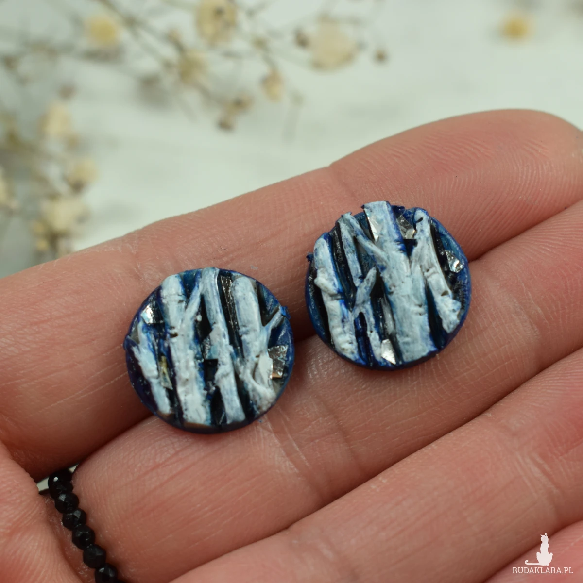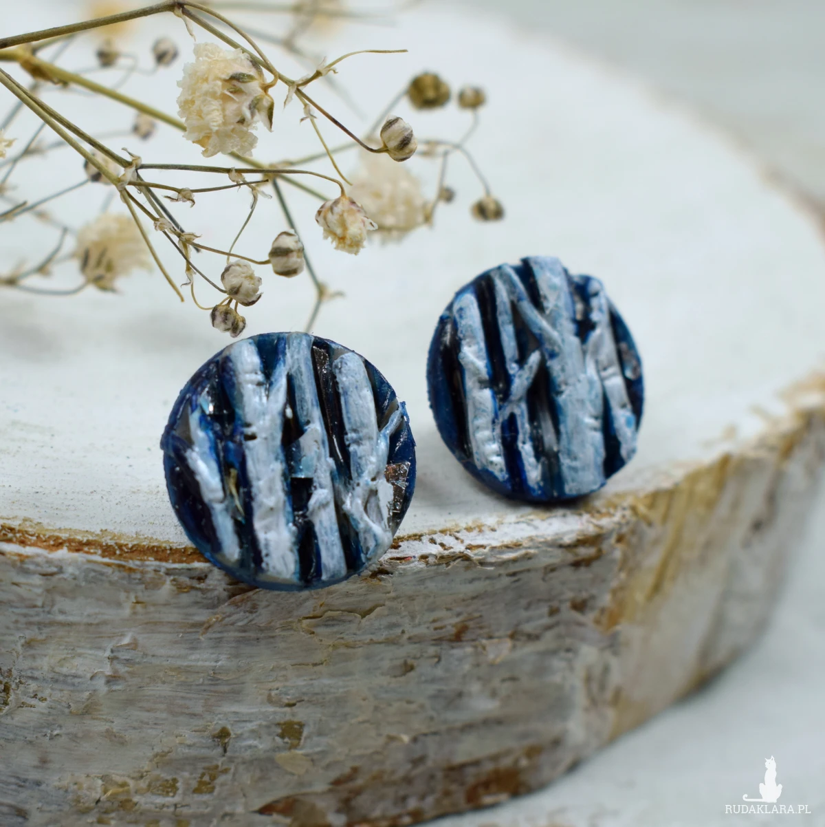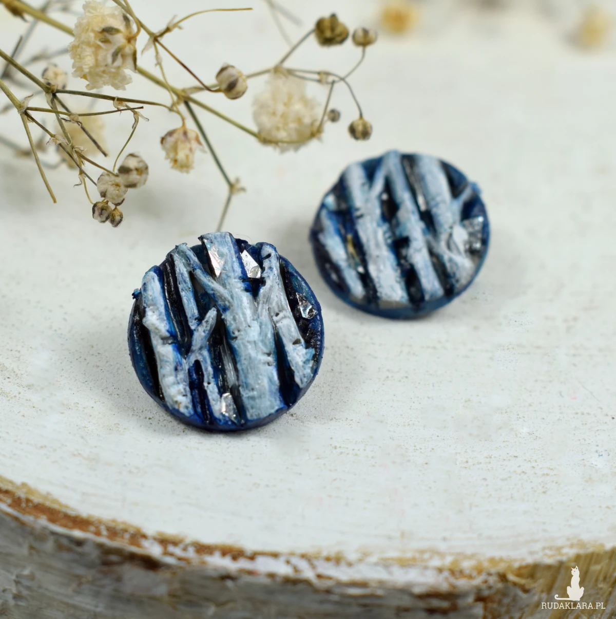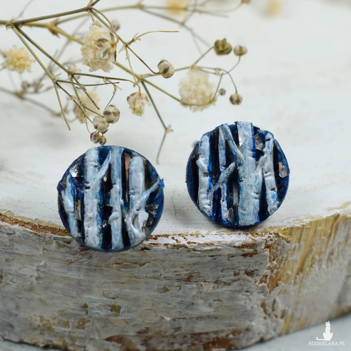Unikatowe, przyciągające uwagę, kolczyki sztyfty z motywem brzozy, w