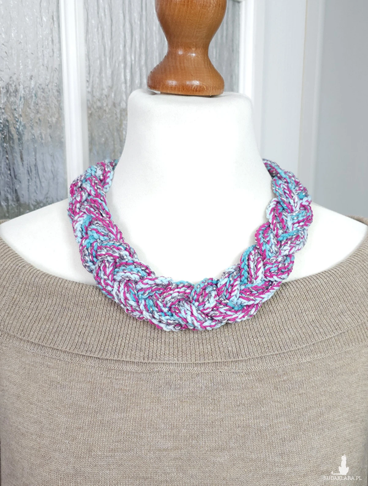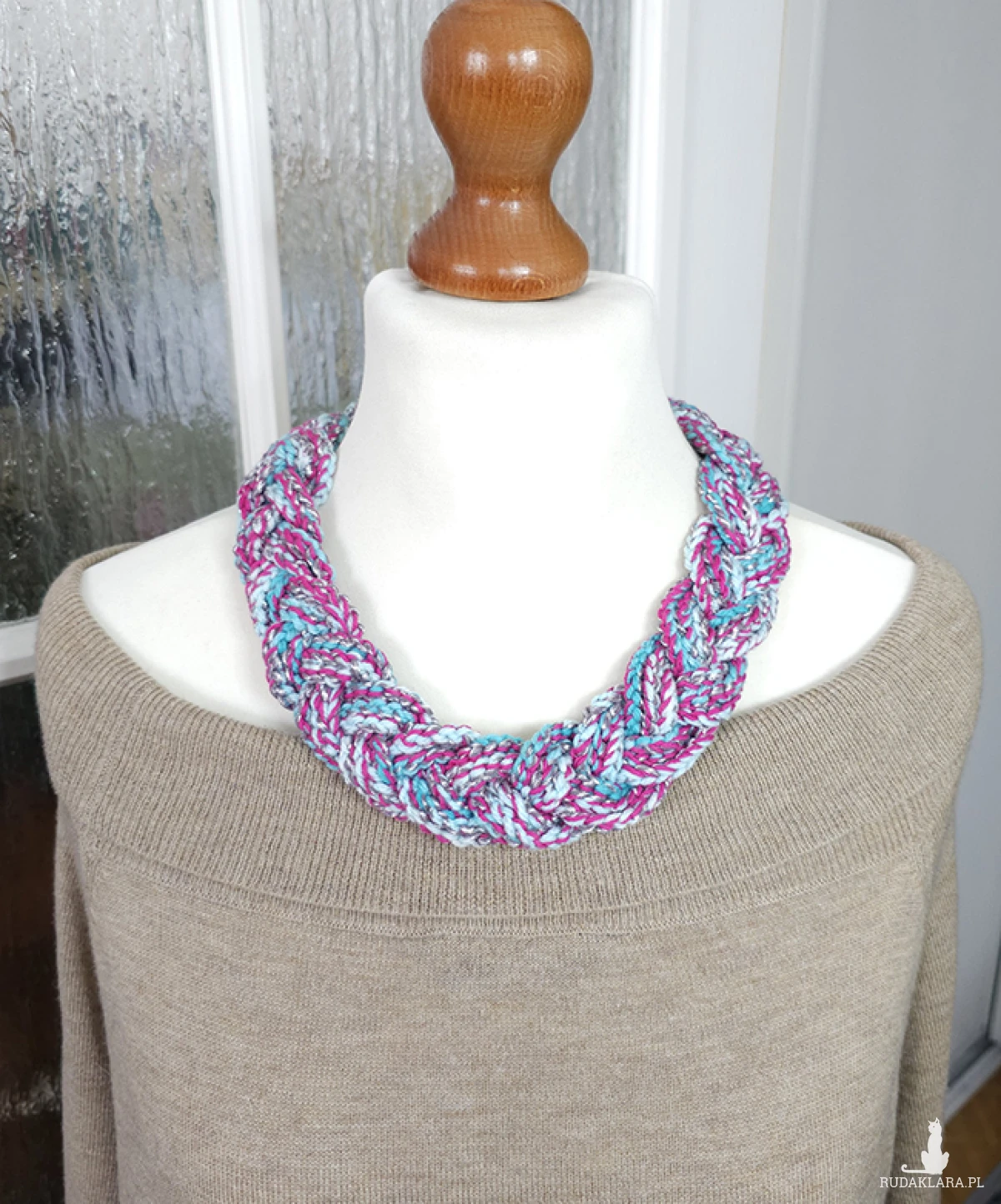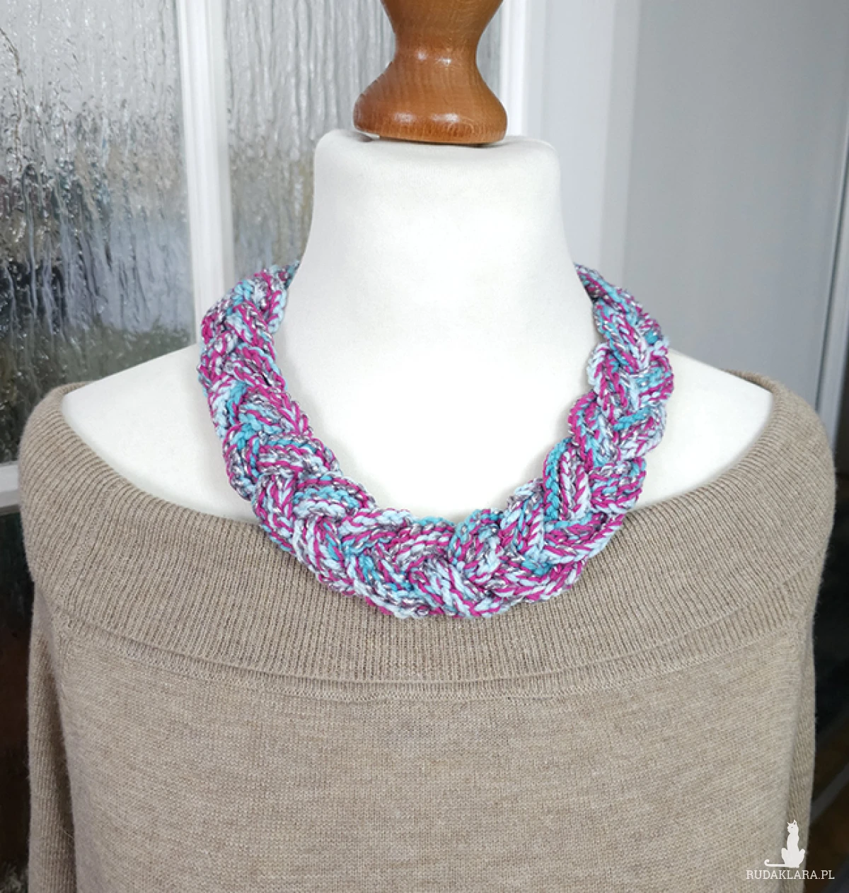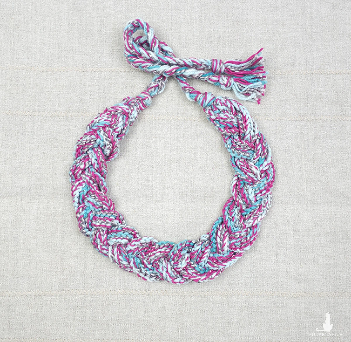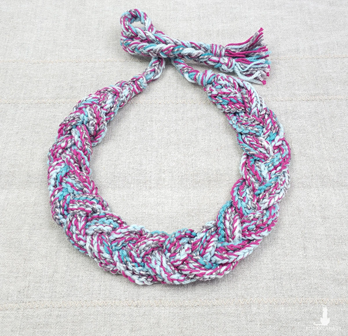 Naszyjnik wykonany z 9 szt. ręcznie plecionych, potrójnych sznurków, splecionych w luźny warkocz.