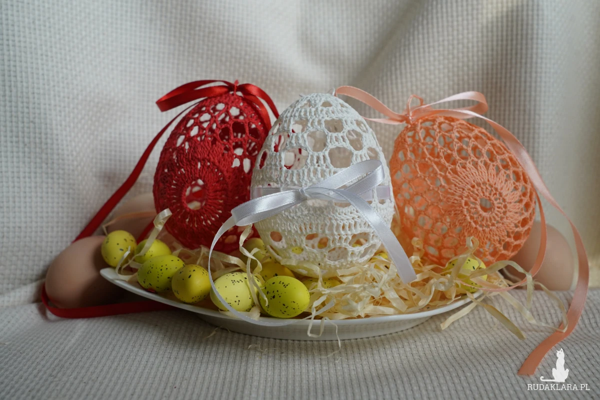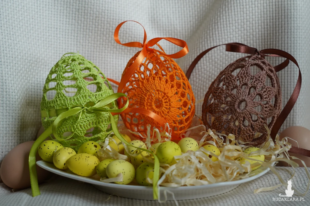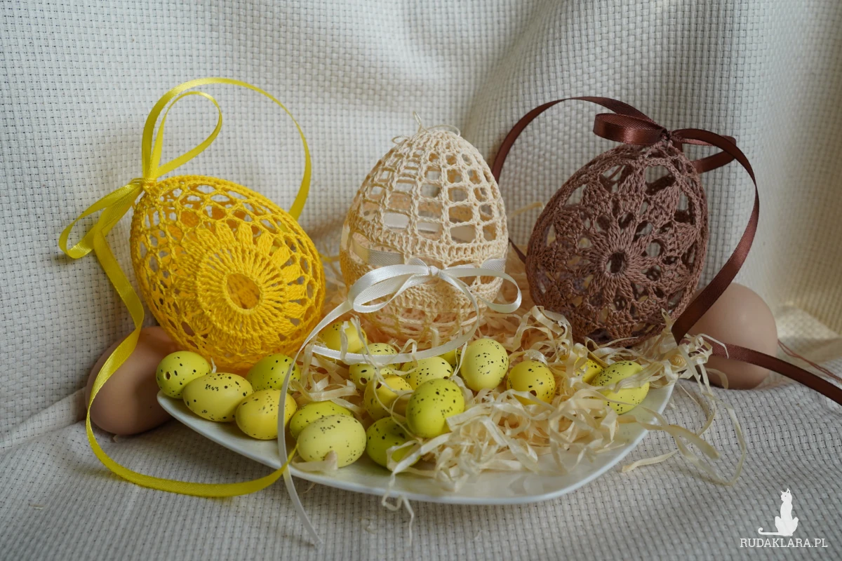Jajko szydełkowe ukrochmalone na sztywno, wysokość 10 cm, w środku bez wypełnienia, 3d😄. Mix kolorów 😄