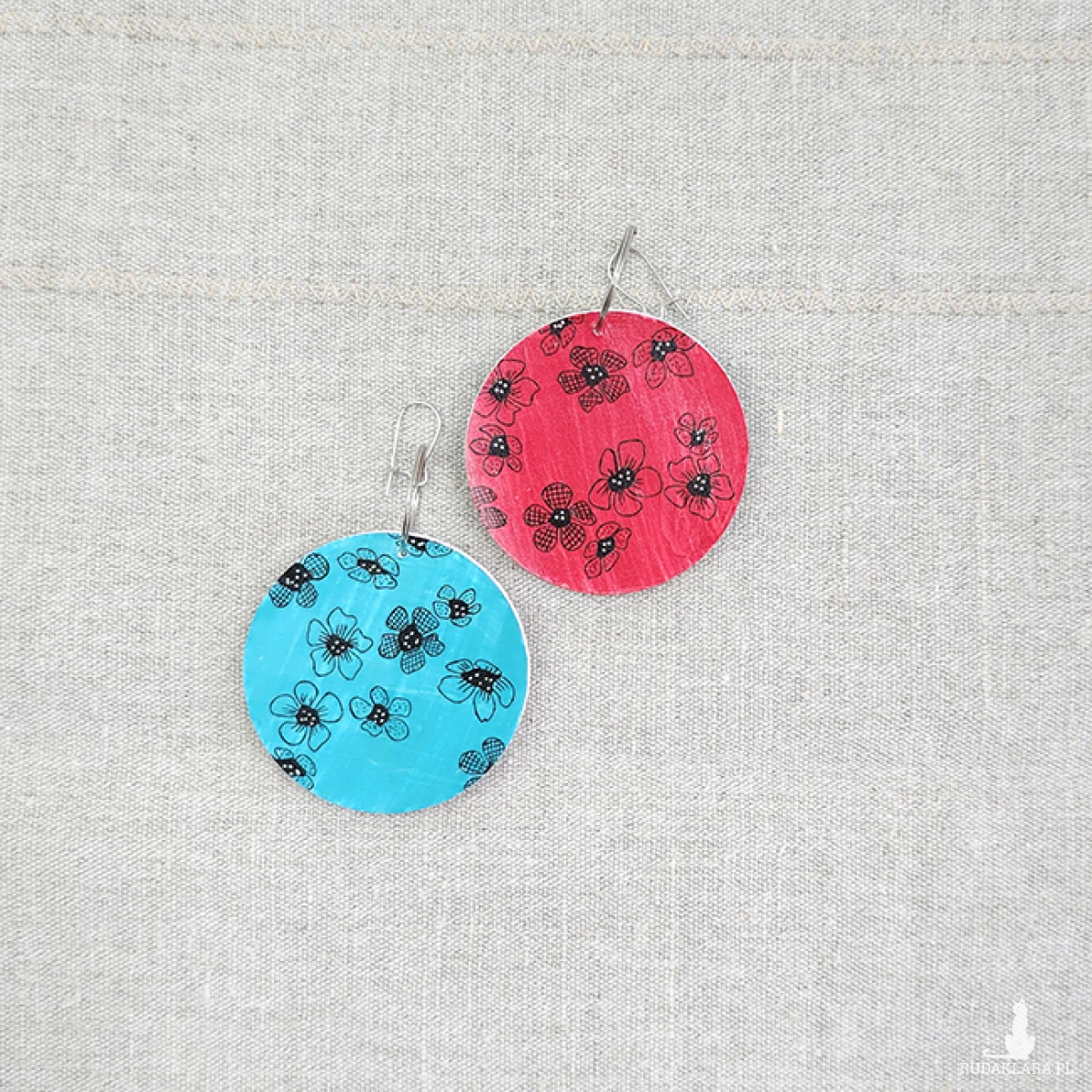6501 czerwone, niebieskie, niepowtarzalne, duże, dwustronne kolczyki; 4 w 1;